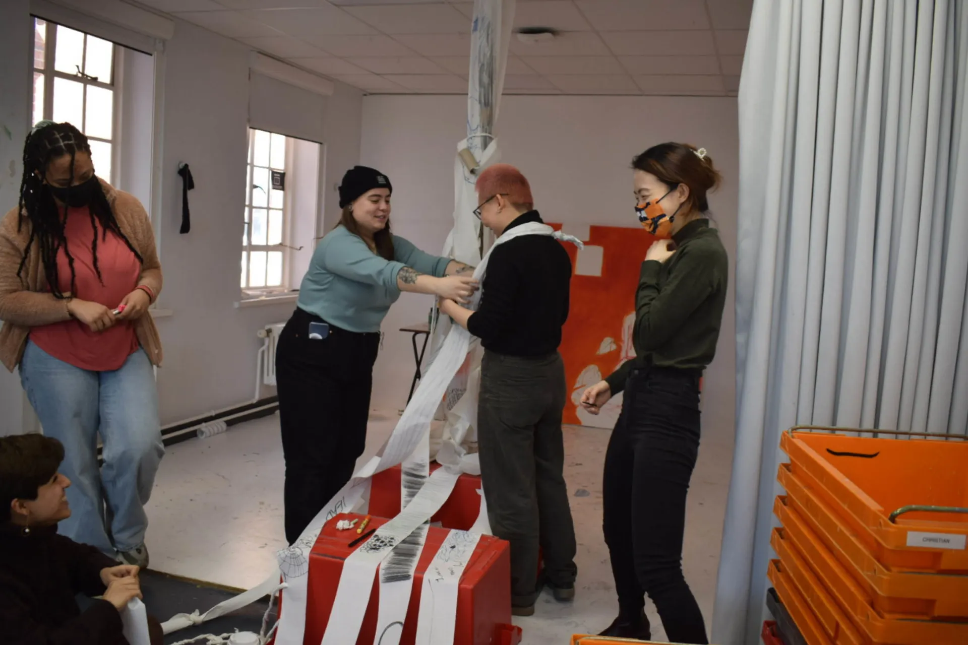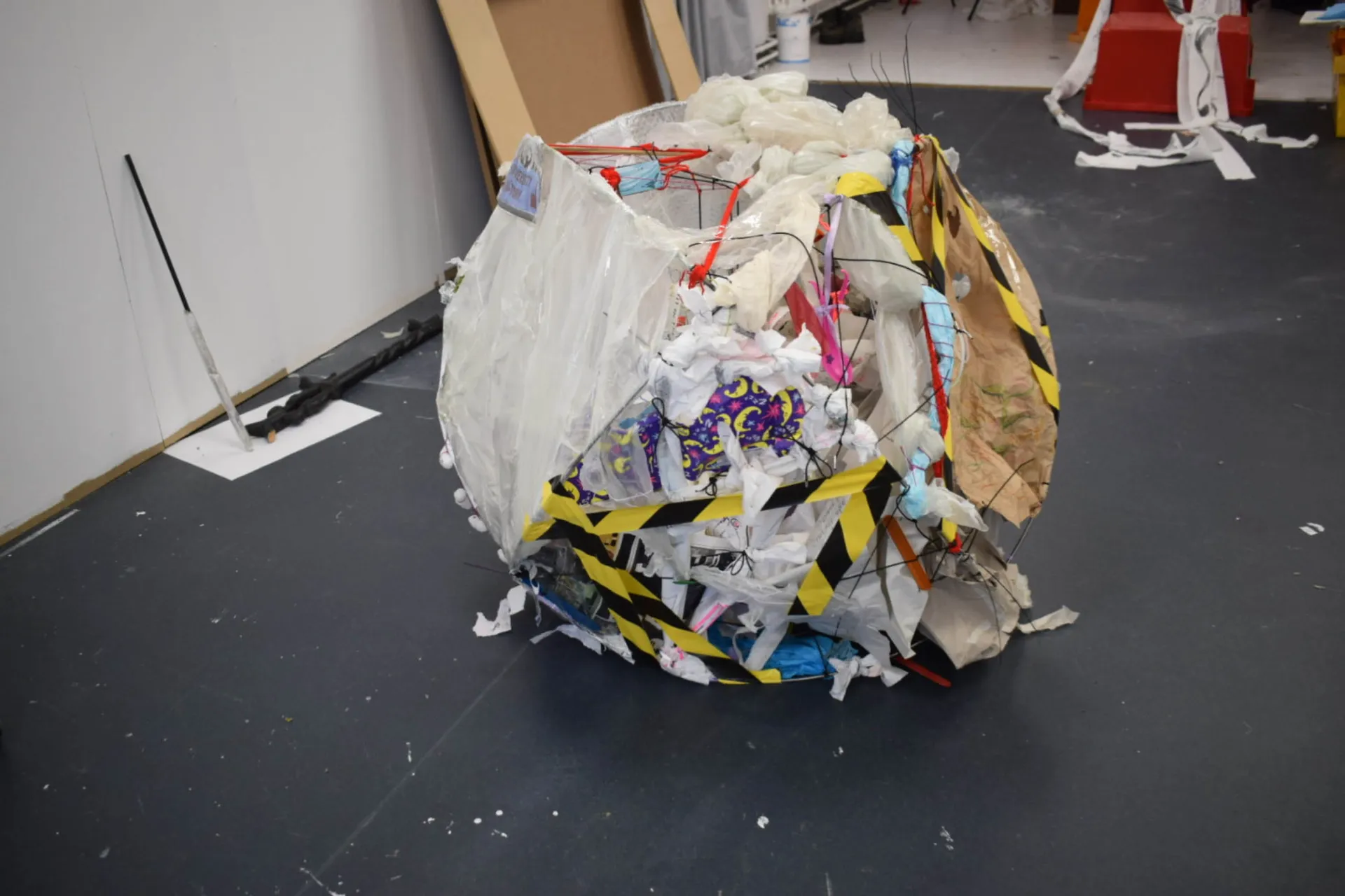 The goal of this project is to develop a new perspective towards collaborative processes and encourage students to experiment with ordinary/unique materials, existing work, or found objects and exploring this understanding by engaging with Metal framework Sphere.