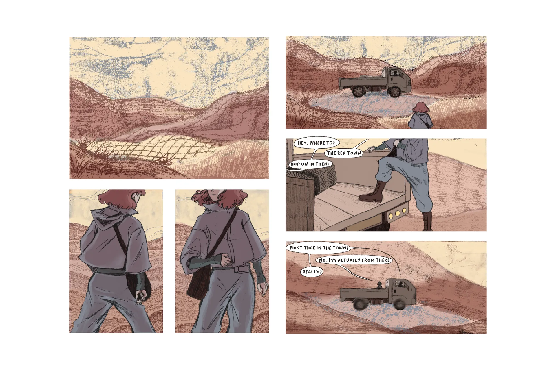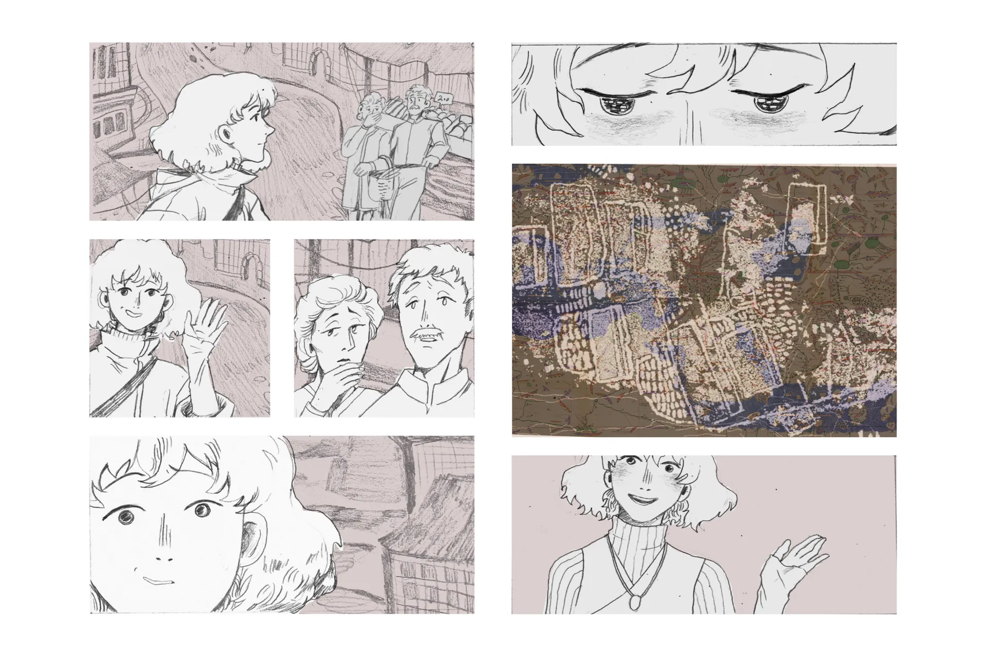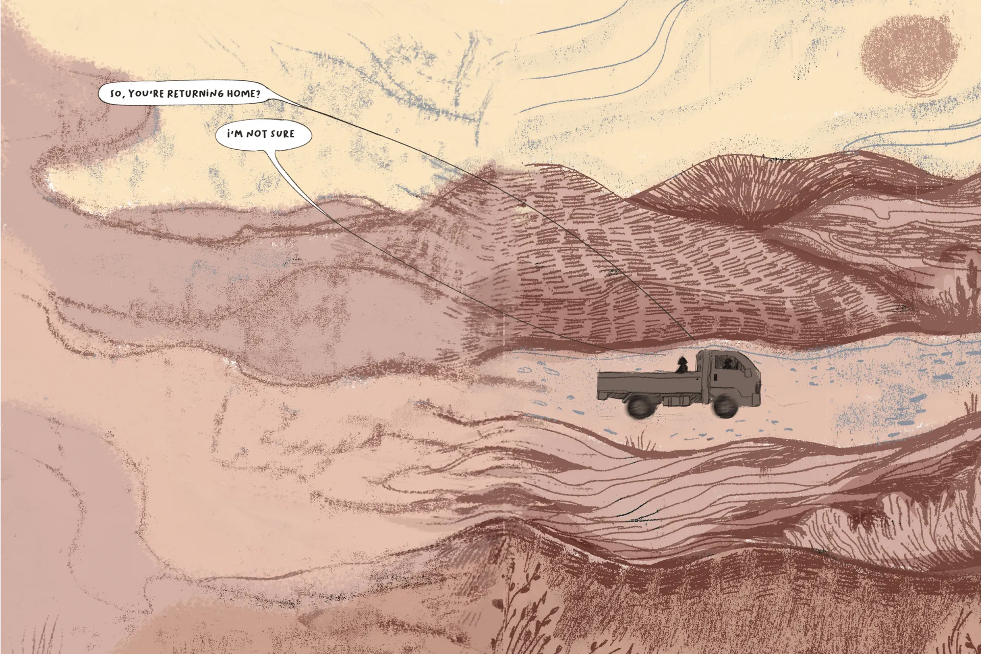 This comic is a collaboration between Xuanmei and Eylül. The narrative follows a cartographer who is returning home. However, upon her return, she has hesitations about where her heart really lies. The comic explores a sense of belonging and how identity changes through travel and experience, reflecting on the journey we all go through as we seek to find ourselves.