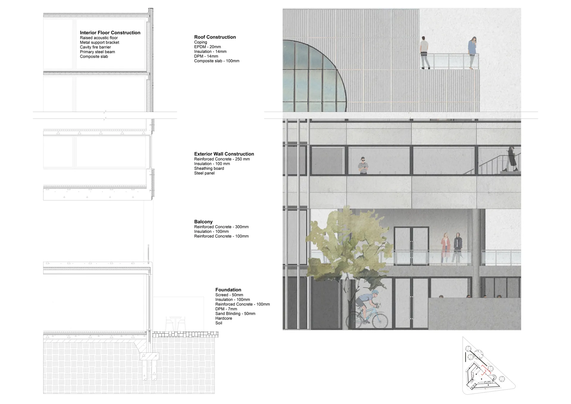 The site is currently in a triangular shape where the long side faces a busy street called Great Eastern Street. Usually, the building consists of a back and front, but I intend to consider the three sides as front access to the building and the first two floors will be heavily focused on finding ways to give that space back to the public. This is a decision I heavily fixate on as I want to bring this cultural community back again and multiple ways of doing that are creating communal areas and cafes. The benefit of this location is that the building is standalone with streets surrounding it. This creates the building to catch people’s eyes as soon as entering the area.