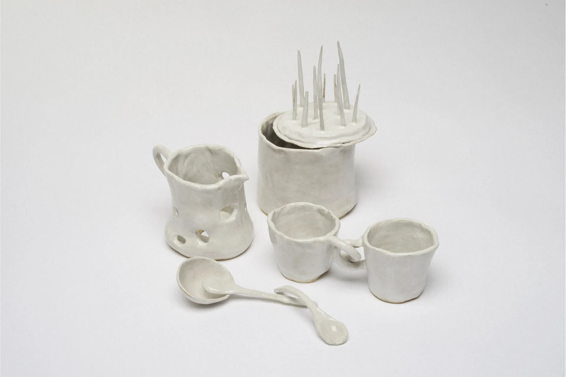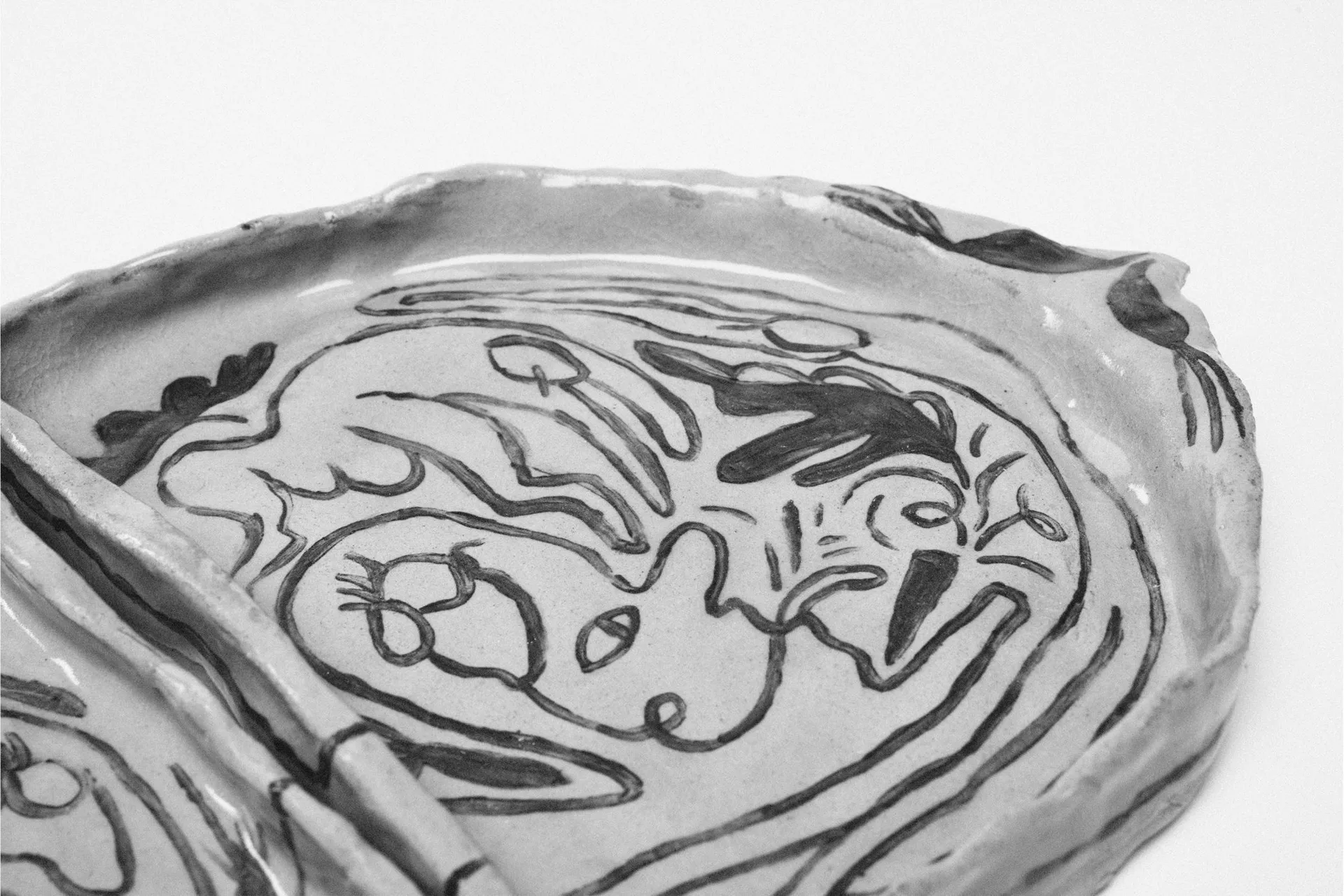 A Dog’s Ear seeks to expand what it means to illustrate the written word, mostly through realising authors’ words, largely through experimental printmaking and ceramics. Culminating in a printed book, various techniques were employed to illustrate the ‘dog’s ears’ of the books read in the previous year. Spanning from intaglio etching to spoon making, textiles to taxidermy, the work seeks to represent reference material in a playful and unexpected way. These associated images show the final outcome, and 10 of the book illustrations.