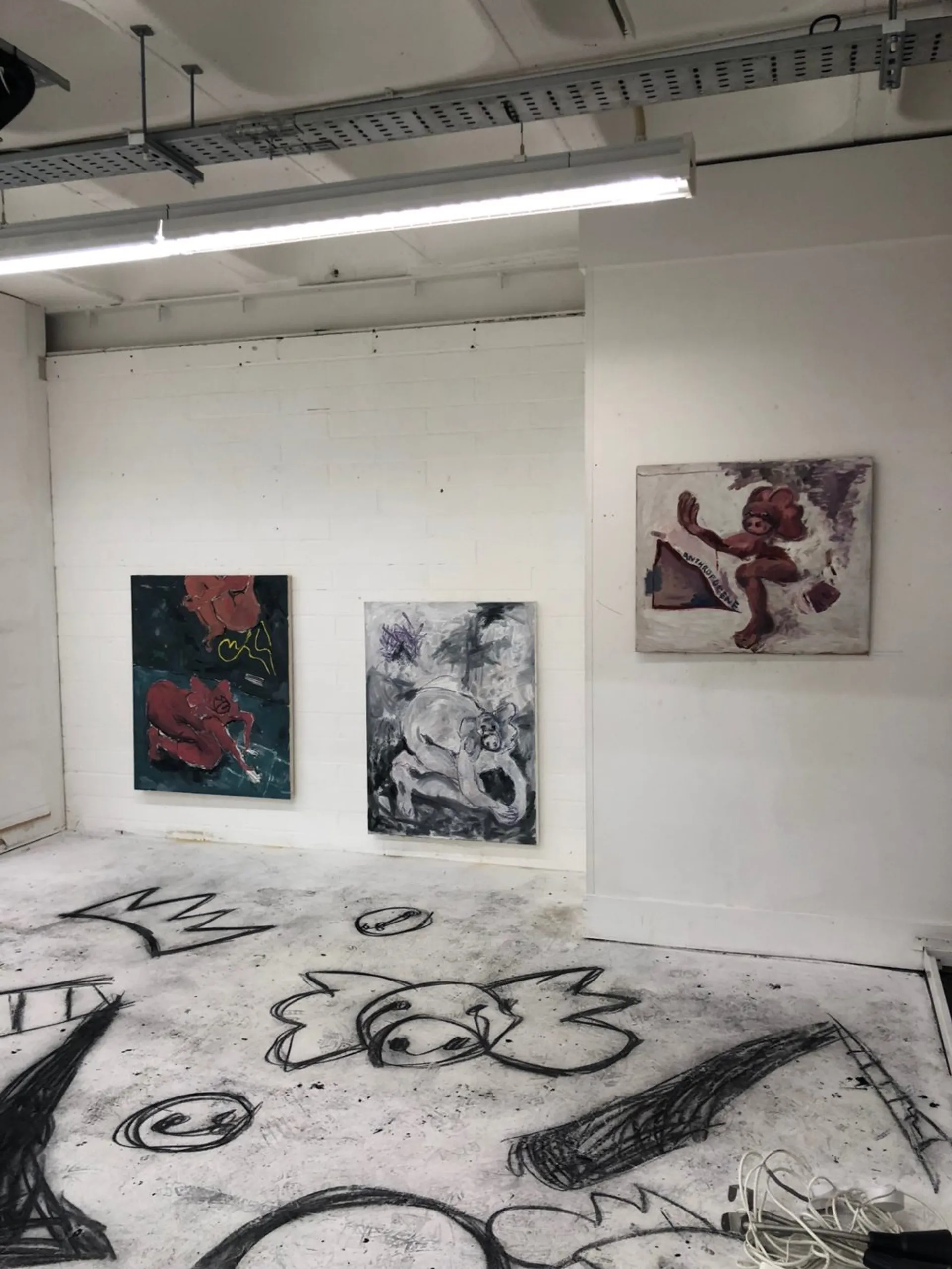 Our habits have allowed an invisible speciesism to feed both our minds and appetite for control. We have redefined the idea of ‘the animal’ which seems to justify our overuses of them, not least as symbols to portray ourselves. My art practice portrays these theories as well as dissecting our anthropocentric gaze. The work puts ideas of discomfort and humanness into question in relation to animality and power. We fear otherness. So, we expand the field of non-human/inhuman/ unhuman to mean almost everything. We push notions of inhumaneness, savageness and deny animals sentience, creating false hierarchies. Meanwhile our overconsumption of animal products is hidden behind benign advertising and cartoons which seem to idealise and falsify farm life.