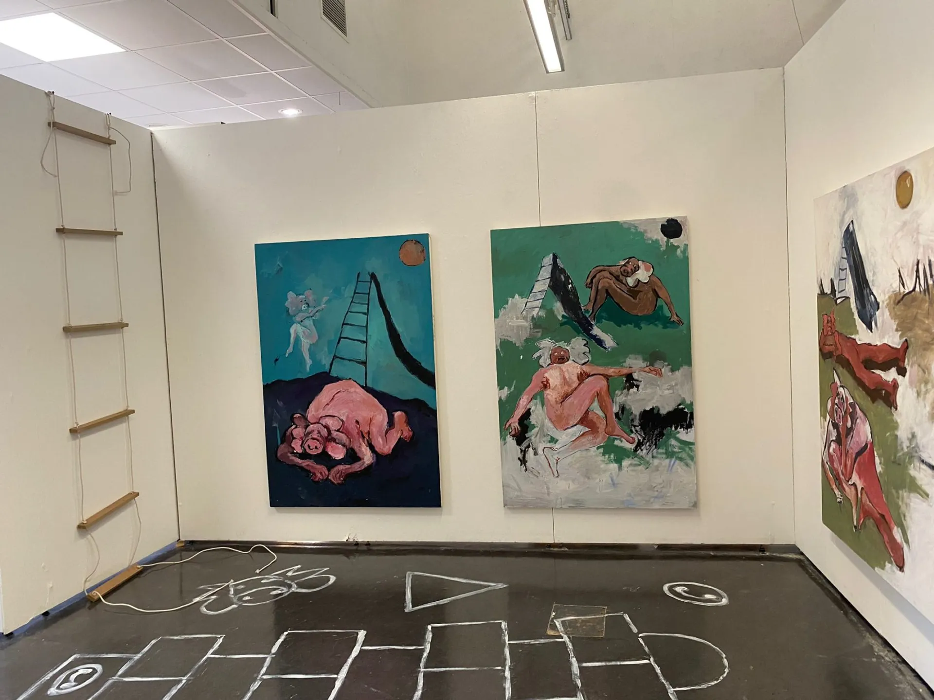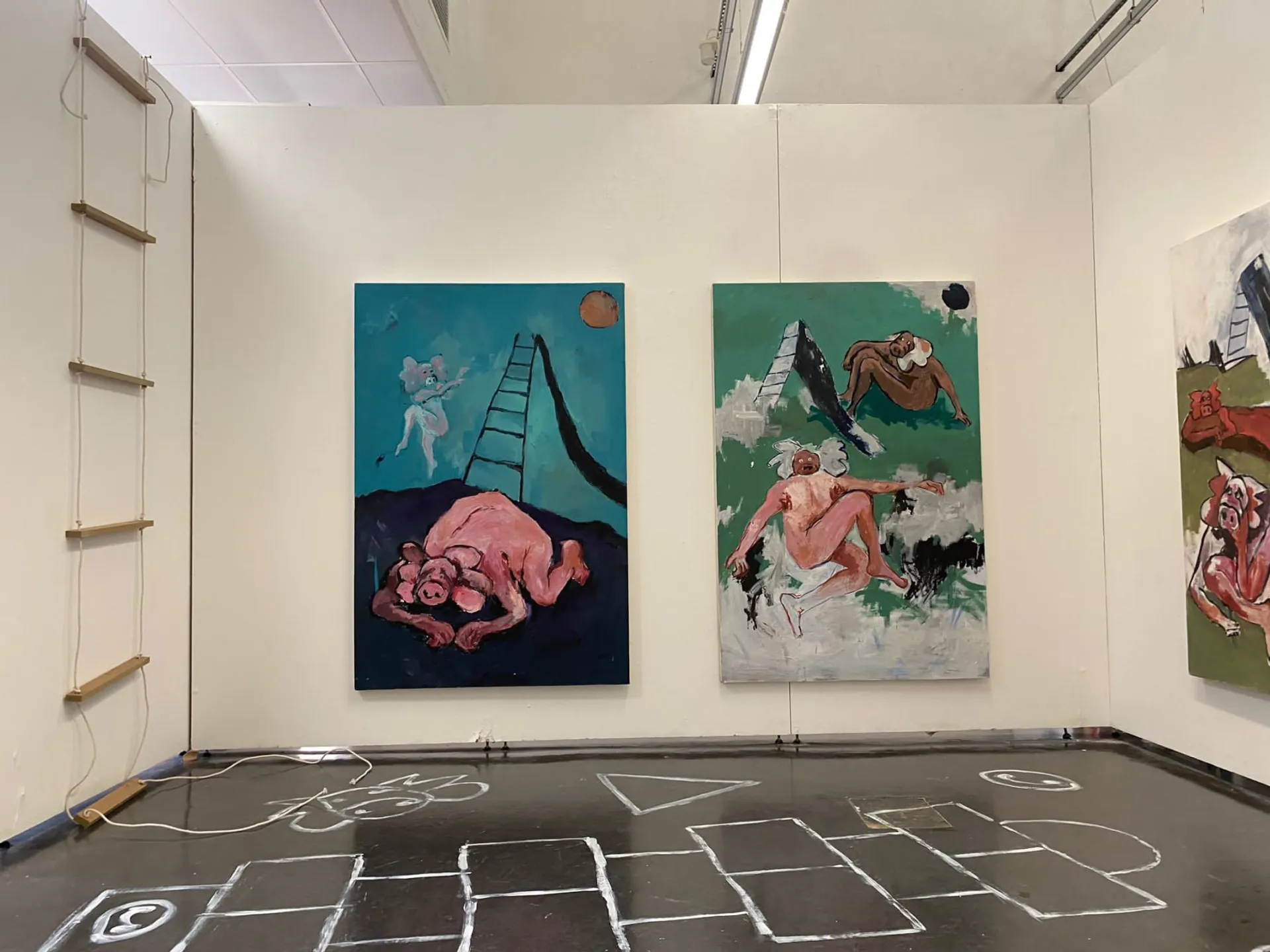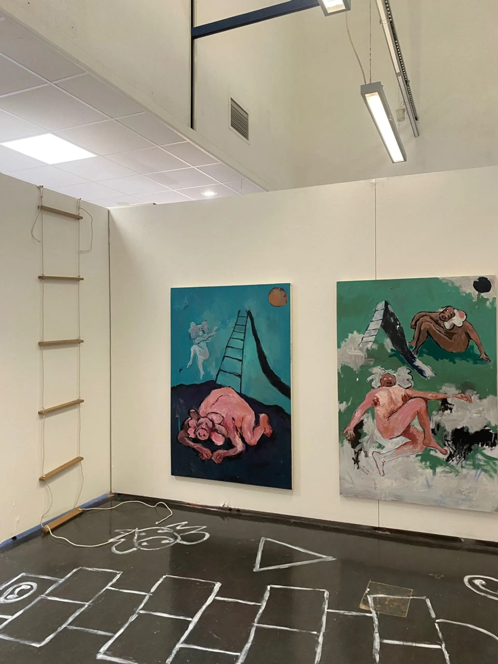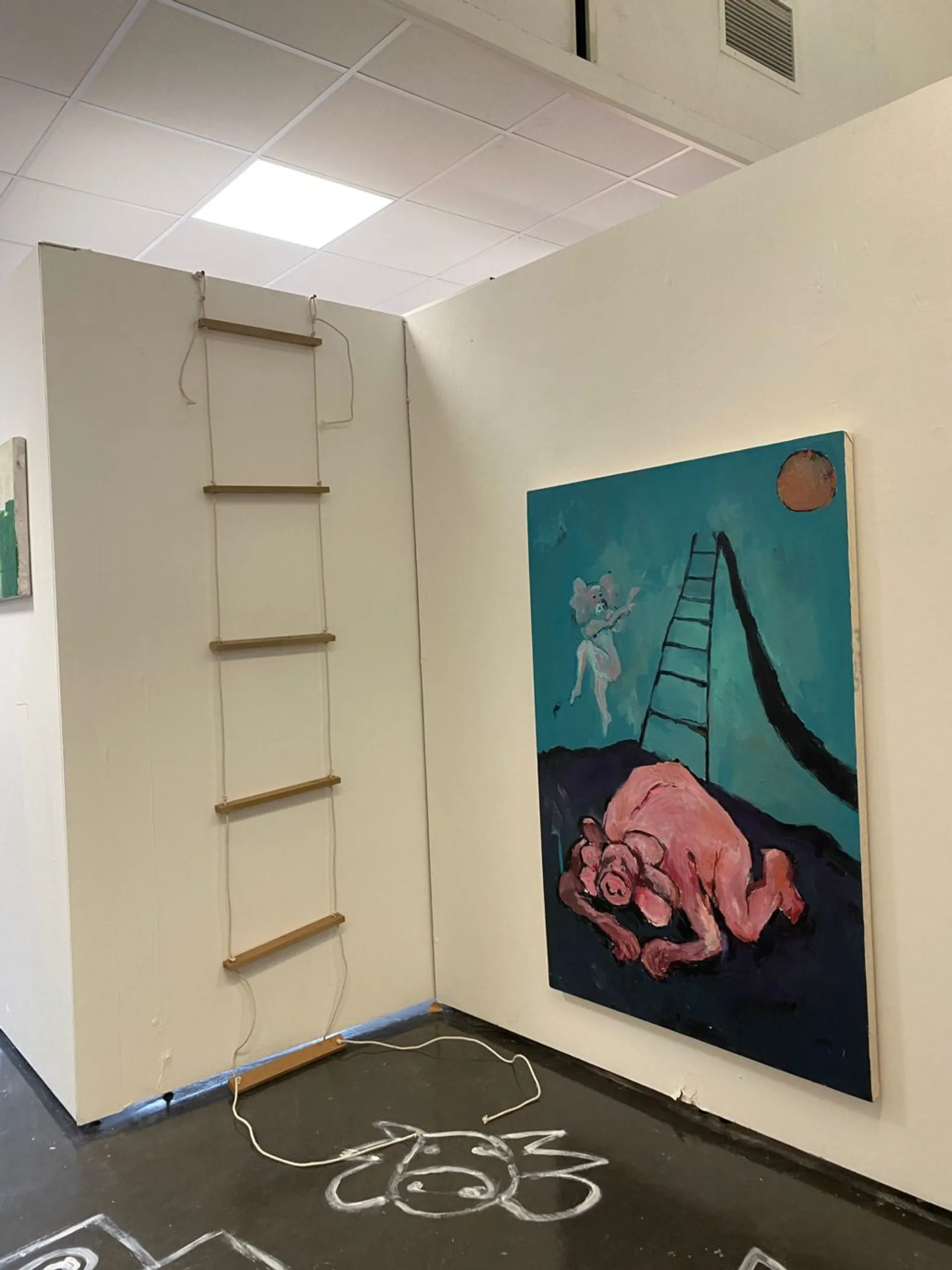 My Pig-man creature has allowed me to explore the emotions, motions, environment, and projection. As well as ideas of nonverbal communication (specifically in children’s play) which has guided my work in the last few months. The symbolism of the slide and ladder communicates the power structures which are overlooked to create a façade of innocence within our treatment and perception of animals.