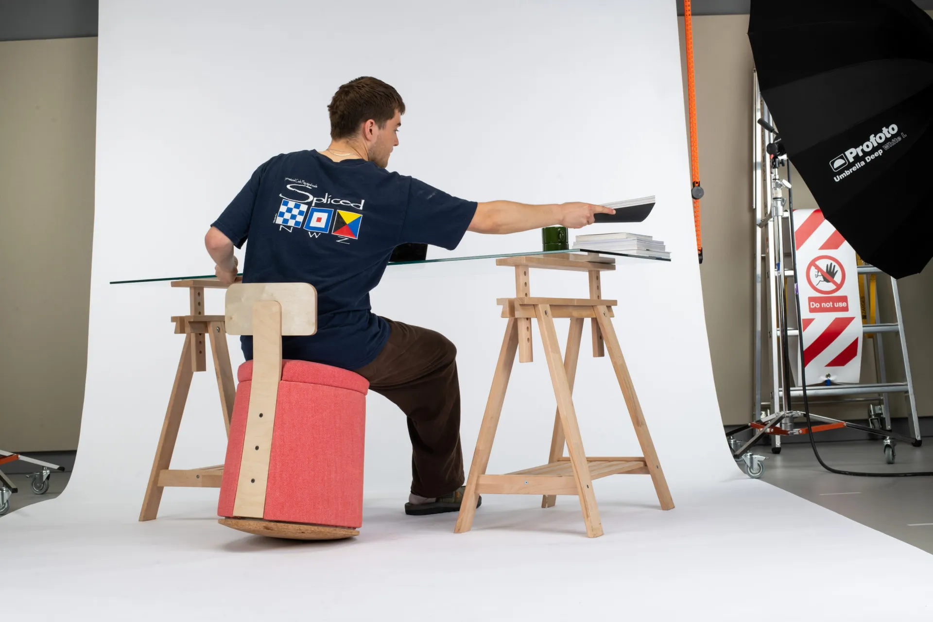 The DTM is a direct response to health concerns associated with sitting at a desk for long periods of time and the recent increase in home working, in response to the recent COVID-19 pandemic. In the office environment fixed adjustment office chairs are often used, however if not set up correctly, health problems can result. When used in the home environment the risk of the chair being set up incorrectly is increased and furthermore they generally do not suit a home environment. This project started with a vision to design an analog adjustment ergonomic chair, however through research this ambition changed. The final design is a task chair which requires no set-up and promotes movement and active sitting, thereby engendering positive health and productivity benefits. Its upholstered base and gentle form suits a home environment and allows it to blend in with existing furniture unlike utilitarian and industrial office furniture.