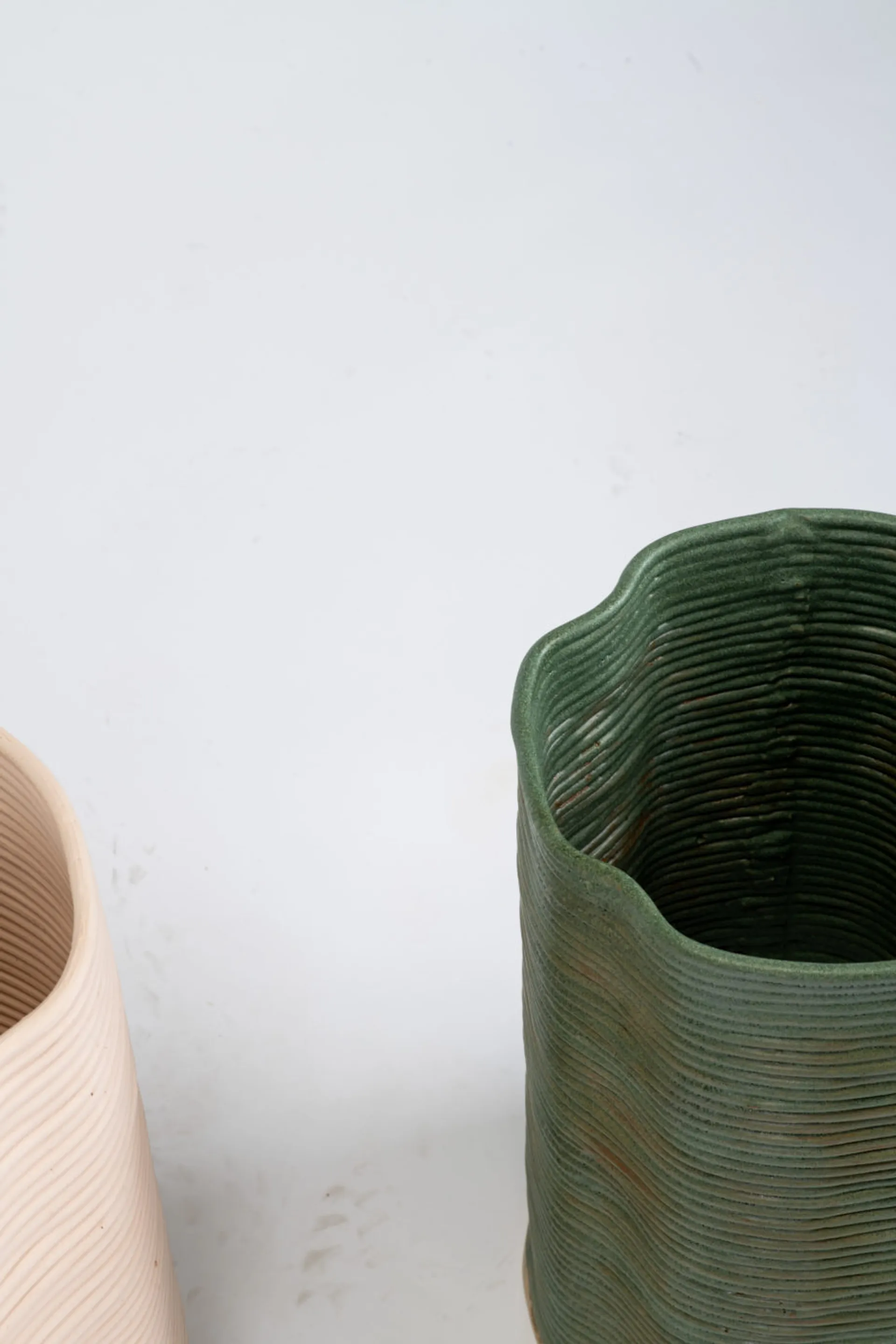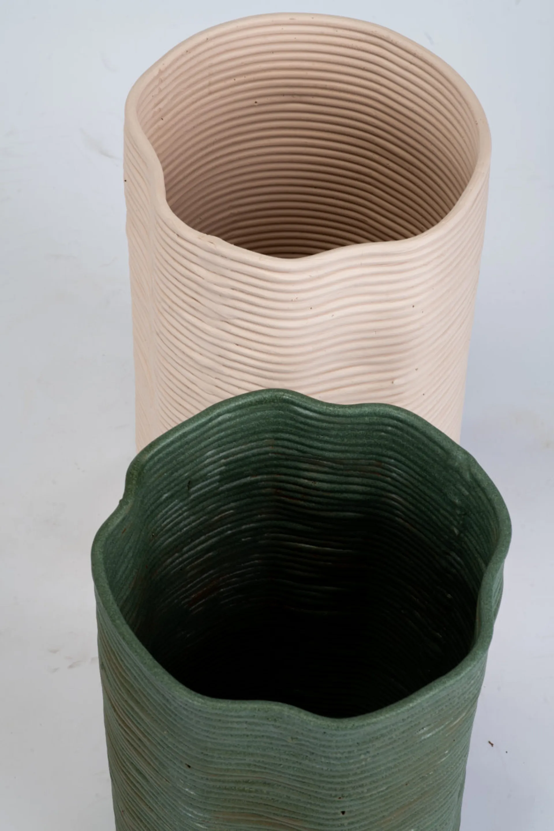 Coiling is a pottery technique which has been around for over two thousand years. I started this project with no experience of working with clay and was introduced to this technique and the process of extruding cylinders to coil with. Traditionally when using the technique of coiling the outside surface is blended together to create a smooth surface. This project is about leaving these coils in there raw form and highlighting the hidden structure that many ceramic pieces have.