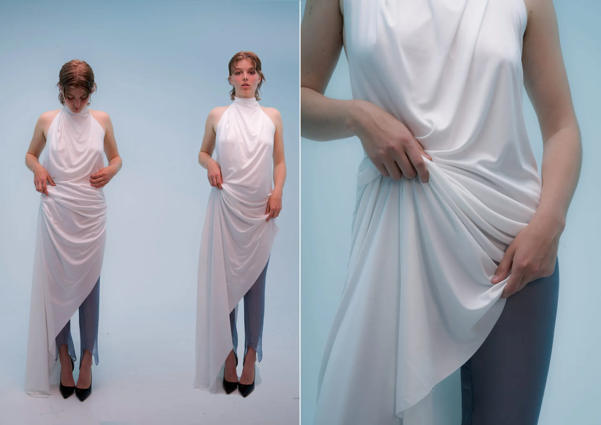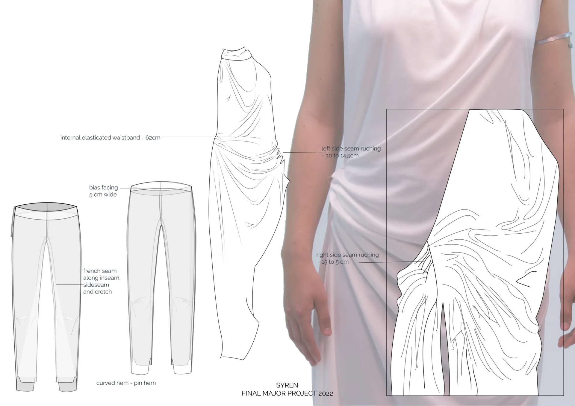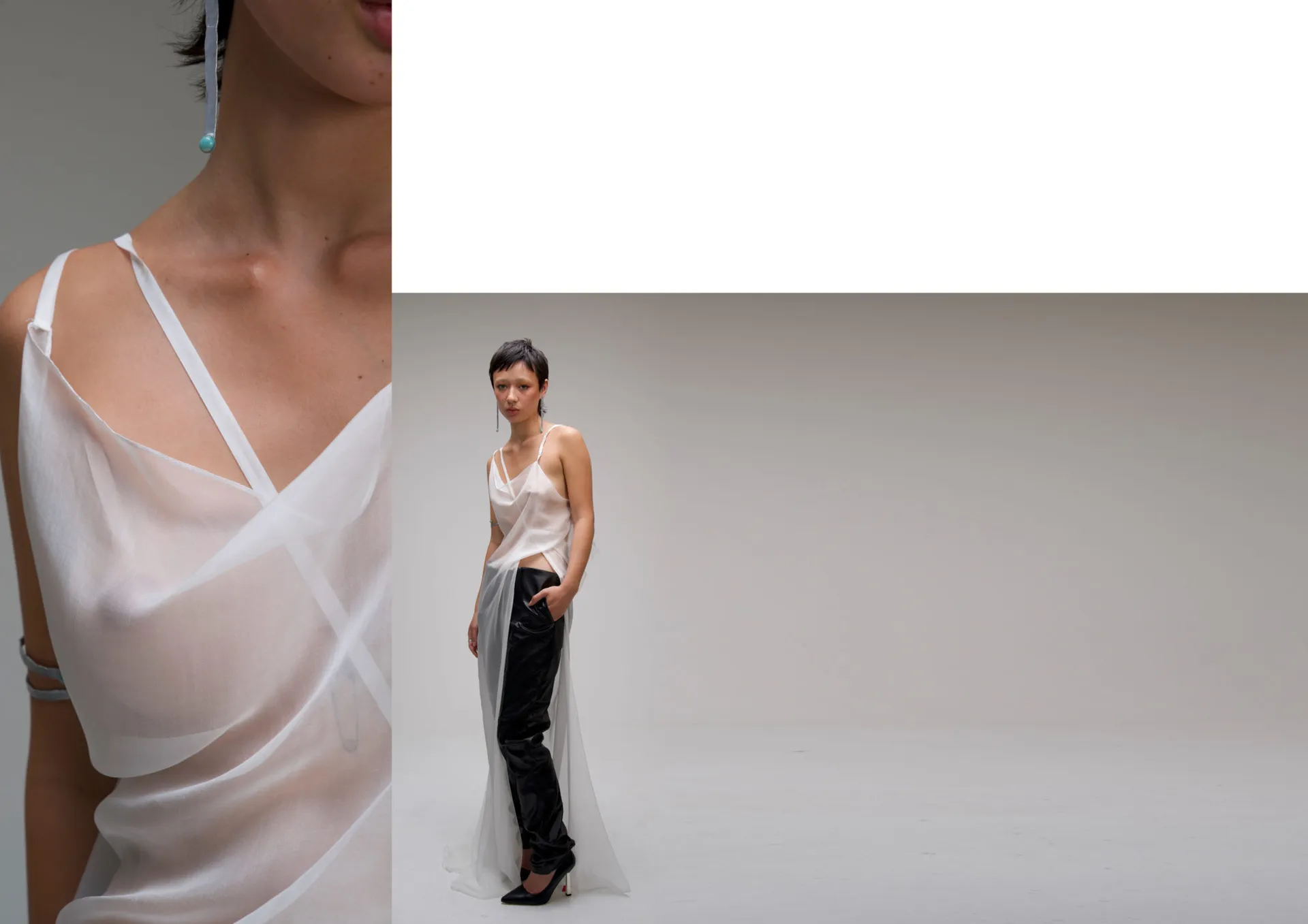 This collection is an ode to the unparalelled archetype that is the femme fatale. Inspired by Hollywood dress codes of the same character in the 30s and 90s, Syren explores the effortless characteristics that make the character so alluring – be it an upturned sleeve, a trouser that bunches up or a corner of a dress that’s caught and pulled.. Infused with this very tactility, this collection celebrates these features, and interprets this archetype in in the contemporary age.