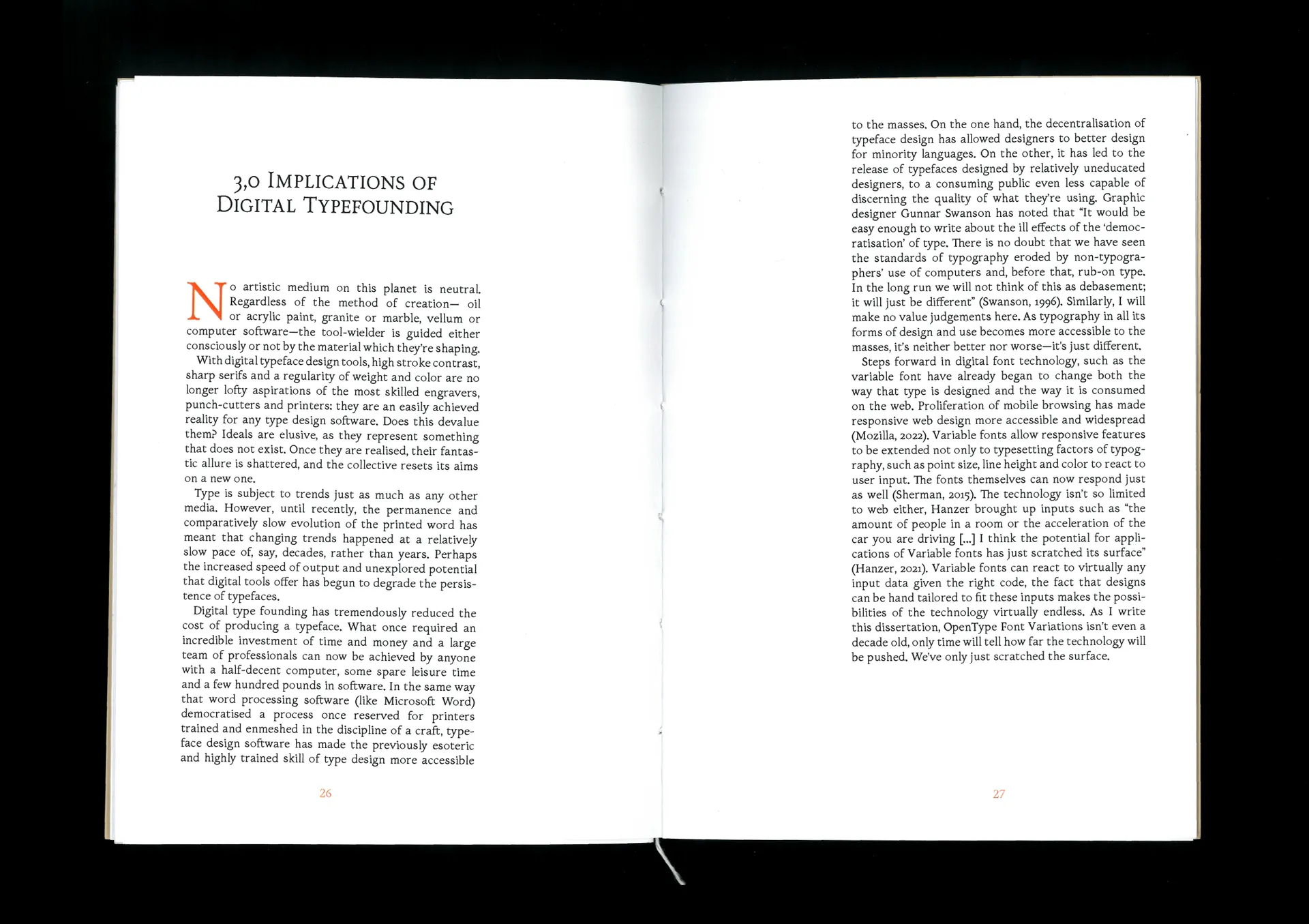 The Diminishing Marginal Value of Aesthetics, A6 saddle stitched copy of Toby Shorin’s 2018 blogpost of the same name. The article explores the value of art and aesthetics in the digital age. Handwritten in an upright italic, spaced using a dot matrix font.