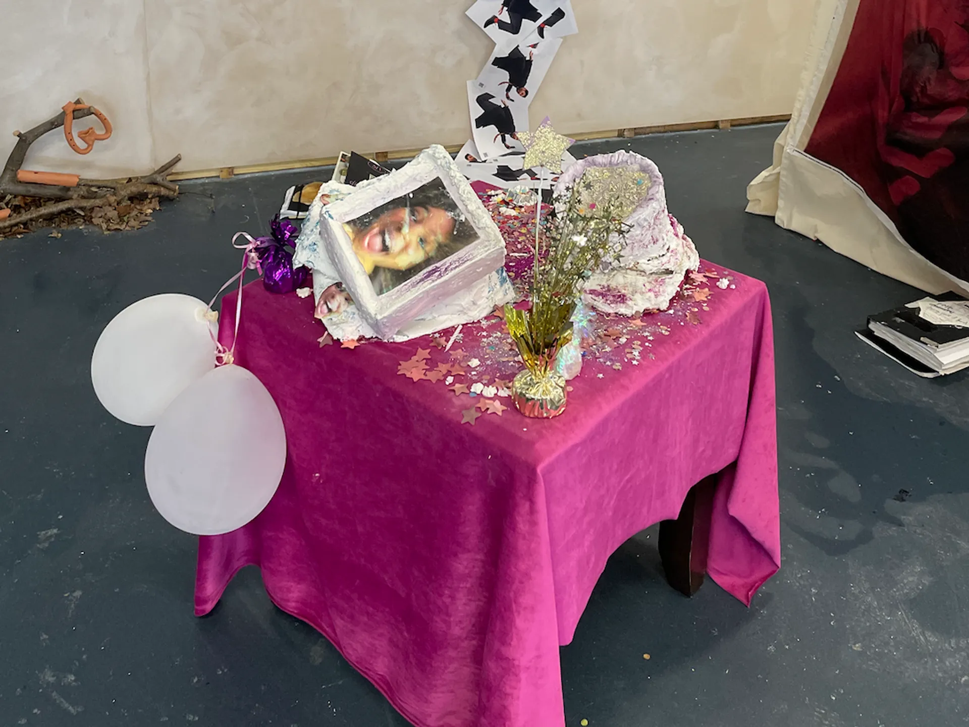 I have created this post-birthday party installation; I have conceptualised a weird birthday dream through the utilisation of the themes of surrealism. I wanted to create this consensus of being involved in a celebration, however the audience is not able to interact, only observe. I have adapted western ideologies of dreams through this interpretation of my own dream that I have allowed to exist in a space.