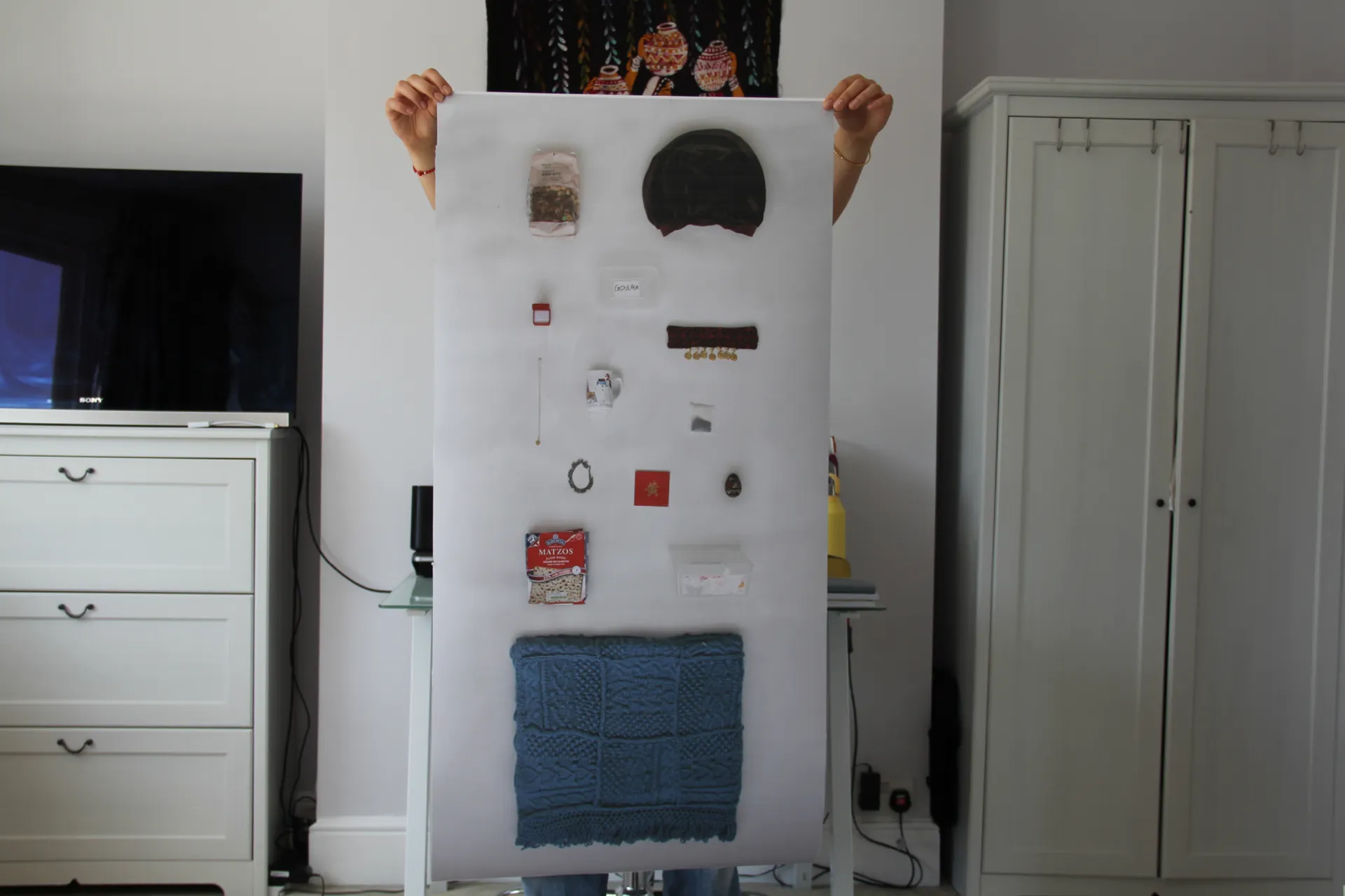 I began more interviews and reaching out to old friends, family and strangers. I wanted a more physical way for us all to be brought together, so I asked everyone to bring in an object to their interview that symbolised their heritage – just like my Tupperware box did for me.