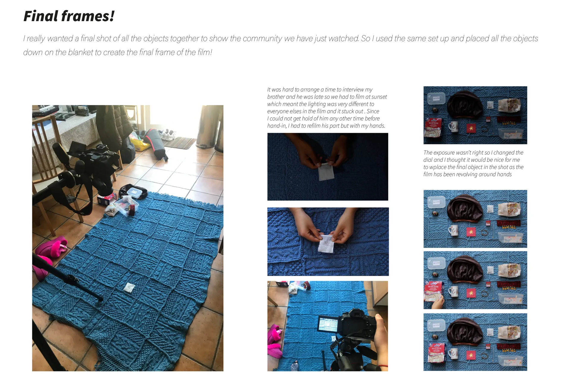 After some amazing conversations and connections with these people, I created a film using the interviews and a poster and series of photographs using the objects.