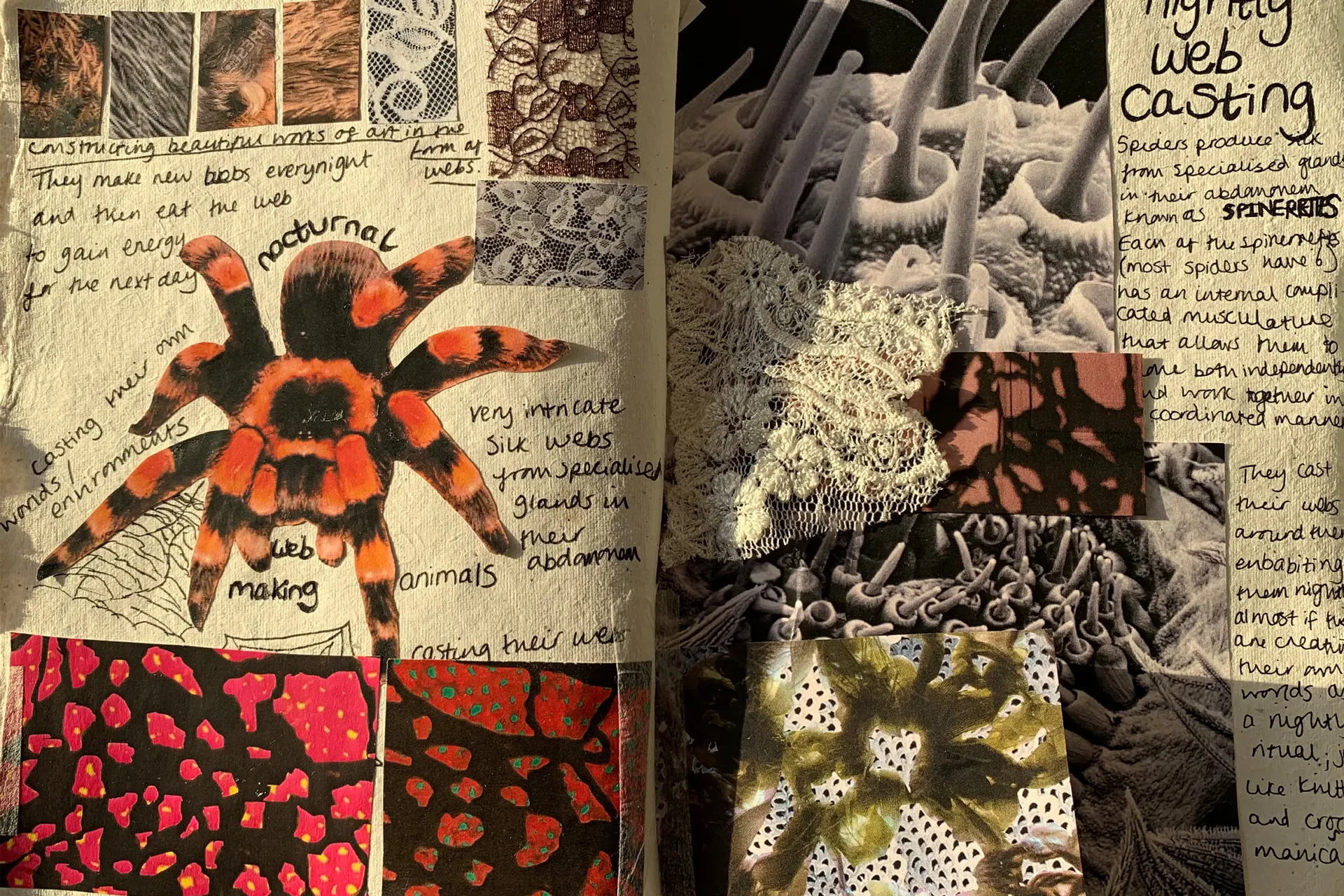 I became interested in nocturnal animals and found out spiders are in fact nocturnal and spin a new web every night….much like me. From this I developed a character who spins a new crochet web nightly which takes them on a new adventure every night as they follow the patterns of their web. Another aspect of my work was looking into the strong anger and frustration one can feel when suffering from insomnia, and how pent up energy and anger can inhibit rest. I wanted to create a ritual character whom would embrace being awake and express their anger through dance.