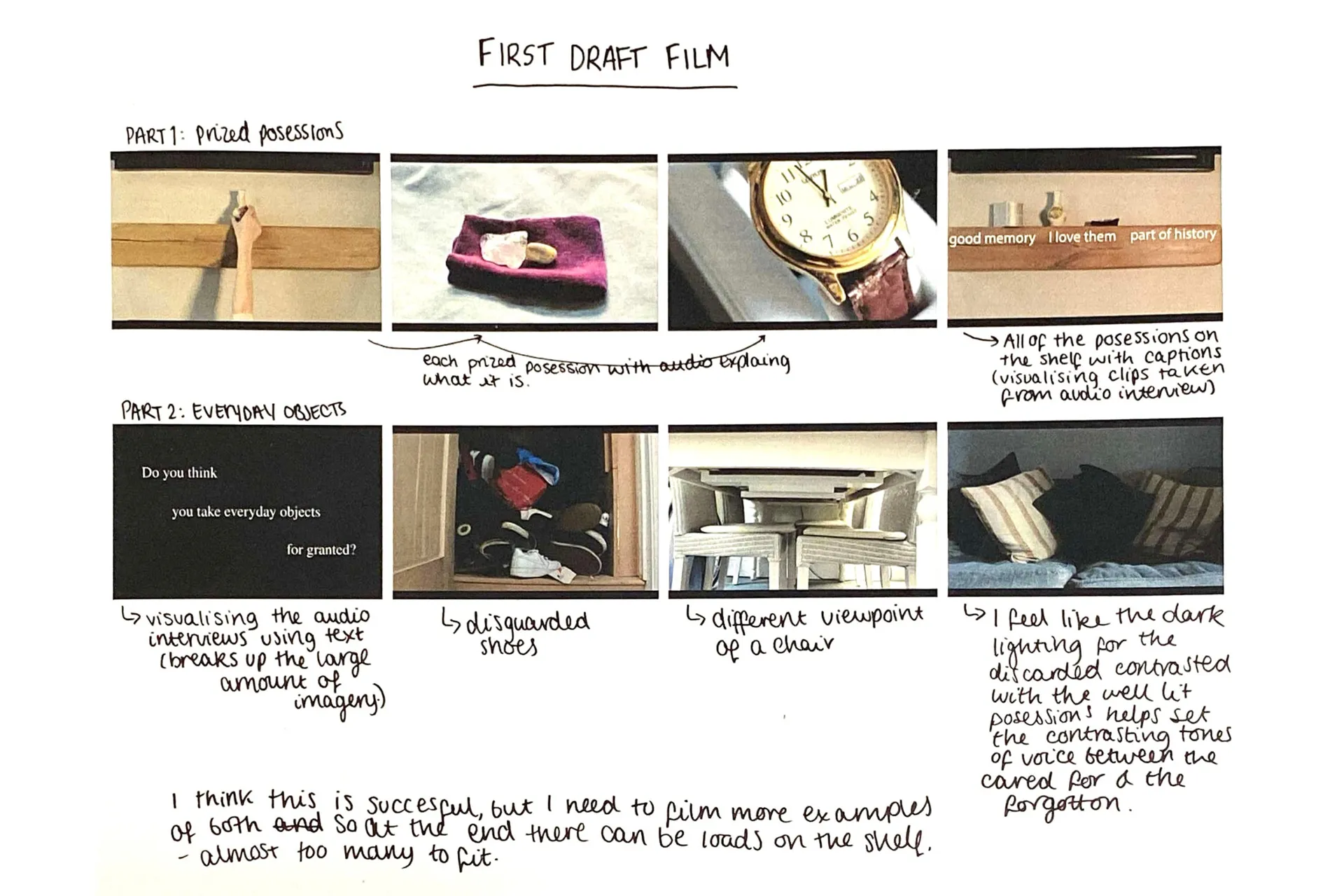 What defines value? Sentimentality, rarity, or practicality and usefulness? I have found that all objects have value, from a great grandfathers watch to the chair we sit in everyday. I’ve created a short film where I have presented this family of, some would say, ‘random’ objects that all actually have sentimental, practical or historical value. Placed all on the same shelf , and we should learn to appreciate all objects instead of valuing the expensive over the mass-produced.