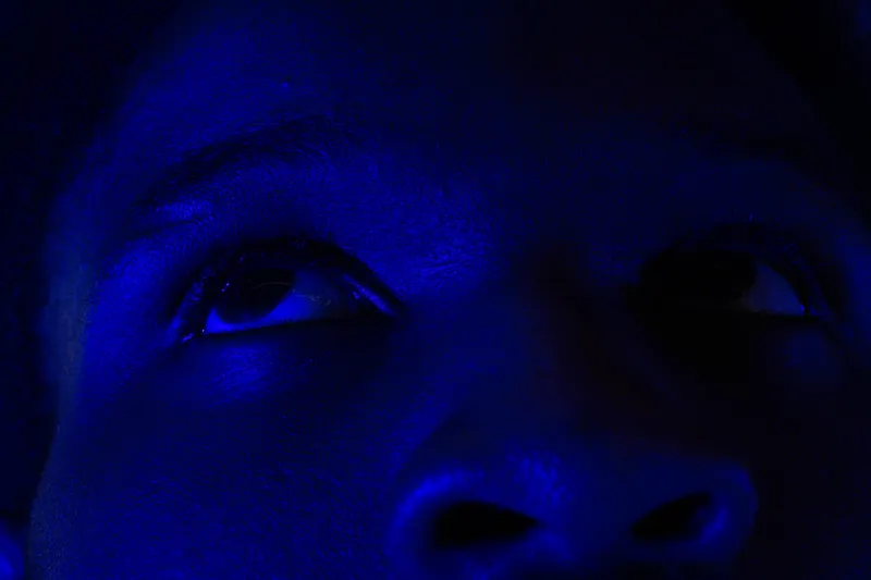 ‘Boys in Blue’ is a collection of intimate portraits challenging notions of masculinity where the illumination of ‘Blue’ allows for black men to liberate themselves from the ‘cool-posed’ performance, freely embracing their vulnerabilities as they renegotiate their masculine identity. ‘Cool masculinity’ or ‘cool pose’ coined by Dr. Richard Majors, is a performative mask worn by black men to hide their anxieties and weakness as a method of surviving in a restrictive society, successfully executing the role as the “man”.