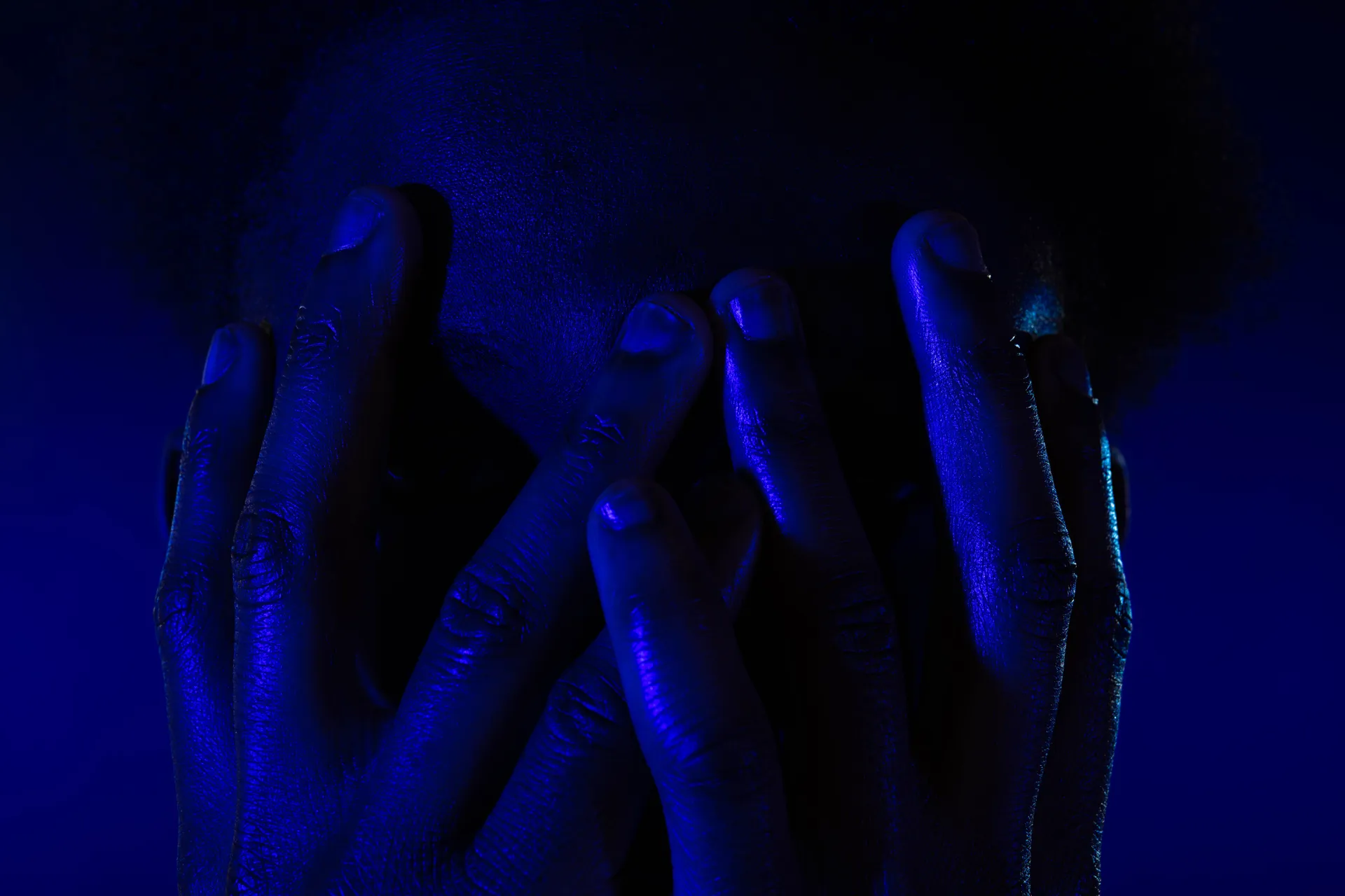 ‘Boys in Blue’ is a collection of intimate portraits challenging notions of masculinity where the illumination of ‘Blue’ allows for black men to liberate themselves from the ‘cool-posed’ performance, freely embracing their vulnerabilities as they renegotiate their masculine identity. ‘Cool masculinity’ or ‘cool pose’ coined by Dr. Richard Majors, is a performative mask worn by black men to hide their anxieties and weakness as a method of surviving in a restrictive society, successfully executing the role as the “man”.