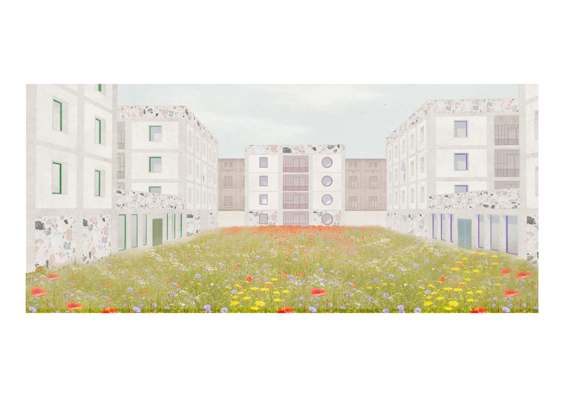 17 community hubs, situated beneath low-rise towers and surrounding public squares, are offered as a replacement to the current proposal of luxury high-rise flats. The permeable site incorporates community assets and adaptable spaces that can change with the community needs, including a nursery, bicycle repair workshop, café and gym. With ground floors opening into courtyards, the thresholds are removed to encourage the outside to flow freely inside and vice versa. In this way, the site organically generates increased social interaction thereby engendering authentic community relationships. The spacial relationship between the buildings create a tapestry of green spaces; the Hortus conclusus.