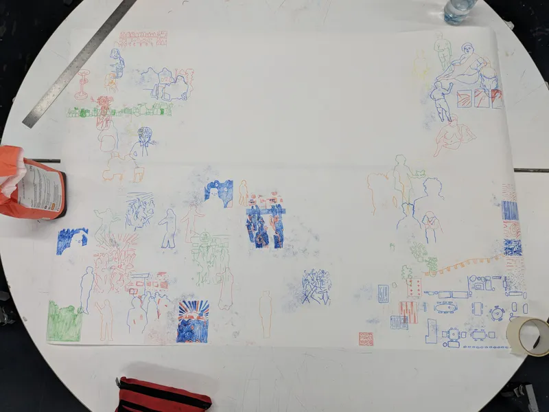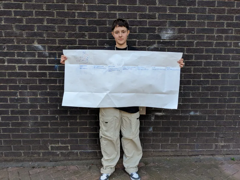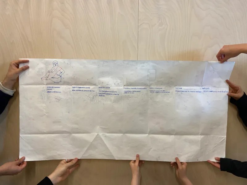 For my outcome I created an accordion pocket book that unfolds into a mono-printed map, revealing the queer safe spaces I found throughout my project. My piece is a celebration of the places I found and the people and environments within them. I created this pocket book as a way of advertising these spaces to individuals within the queer community, but simultaneously hiding the information from people that may invade them. It’s a timeline of my journey to finding accepting spaces with a sense of community; its a pocket that contains my own individual experience of safety, depicted through colour and illustration. Overall creating this piece became more of a realisation that safety is a very personal, individual experience that cant be replicated.