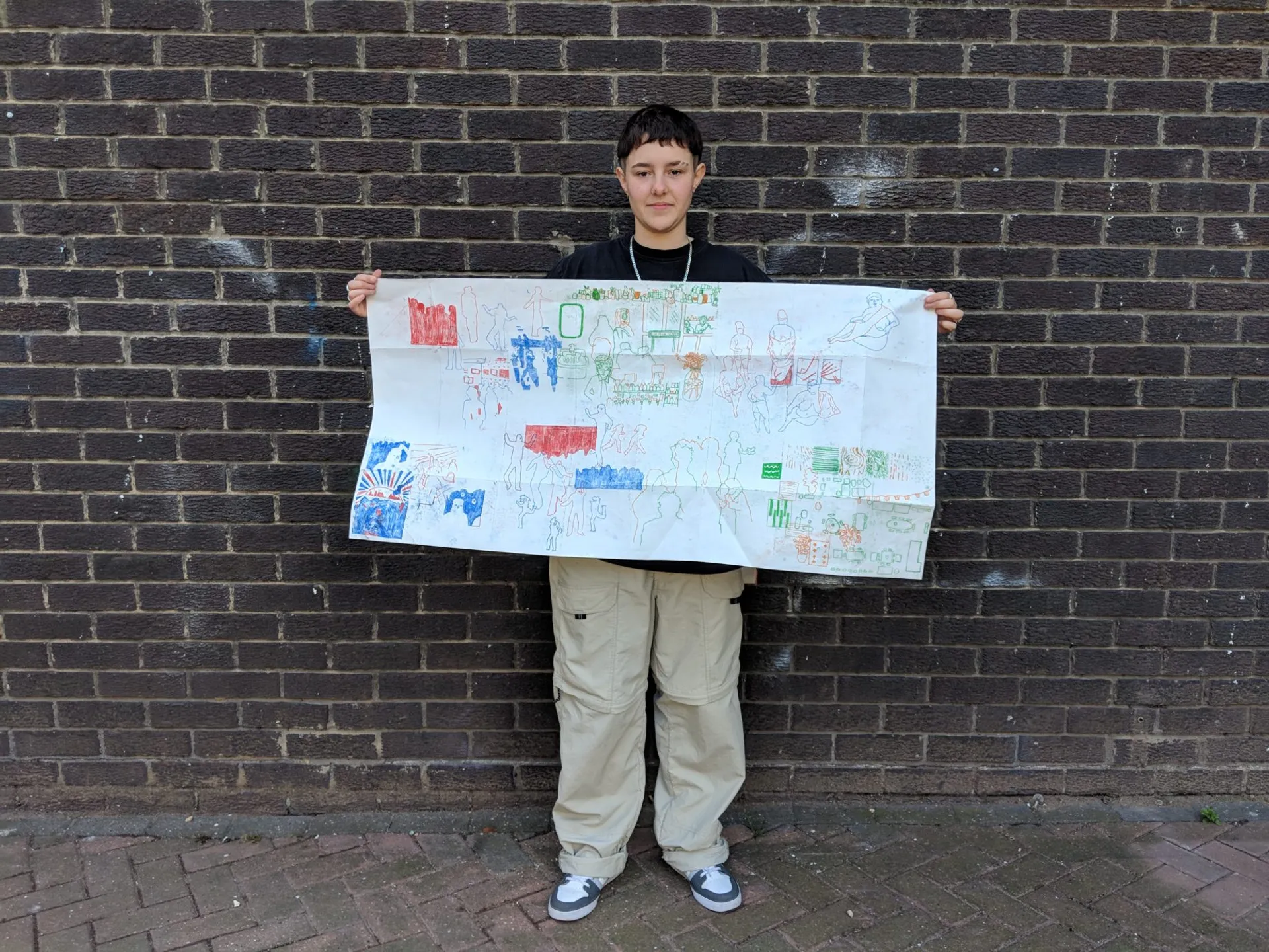 For my outcome I created an accordion pocket book that unfolds into a mono-printed map, revealing the queer safe spaces I found throughout my project. My piece is a celebration of the places I found and the people and environments within them. I created this pocket book as a way of advertising these spaces to individuals within the queer community, but simultaneously hiding the information from people that may invade them. It’s a timeline of my journey to finding accepting spaces with a sense of community; its a pocket that contains my own individual experience of safety, depicted through colour and illustration. Overall creating this piece became more of a realisation that safety is a very personal, individual experience that cant be replicated.