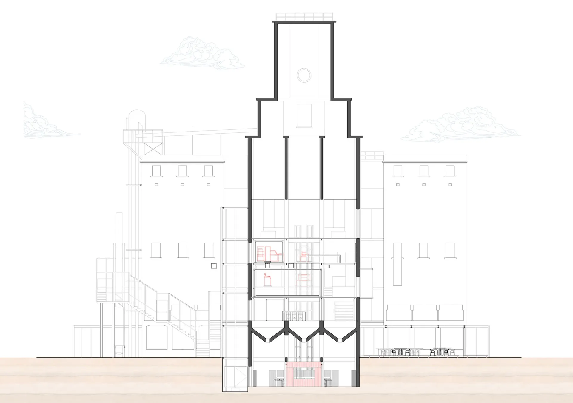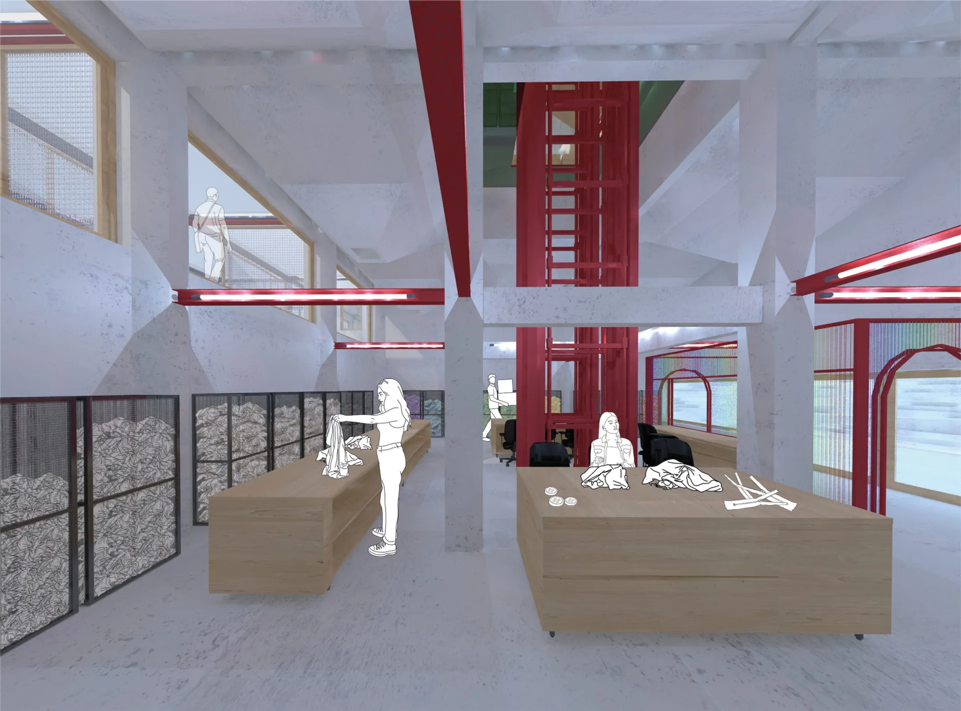 The Silo D proposal focuses on the shared economy through the idea of the scheme operating like a builders merchants. This means none of the material is owned by one person or company.