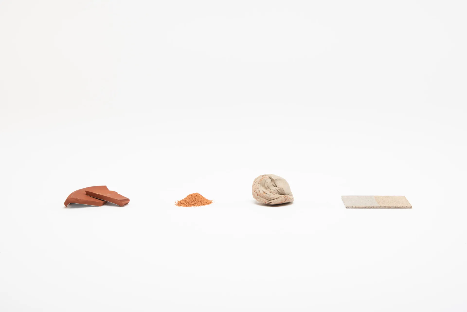 This project has explored utilising various types of ceramic waste as grog instead, revealing the rich variety of colour and texture that can be achieved when using recycled material. This is showcased in the Grog Side Table, which is coloured differently on each side through the addition of an individual type of waste – from the white of bone china seconds to the brown of demolished bricks.
