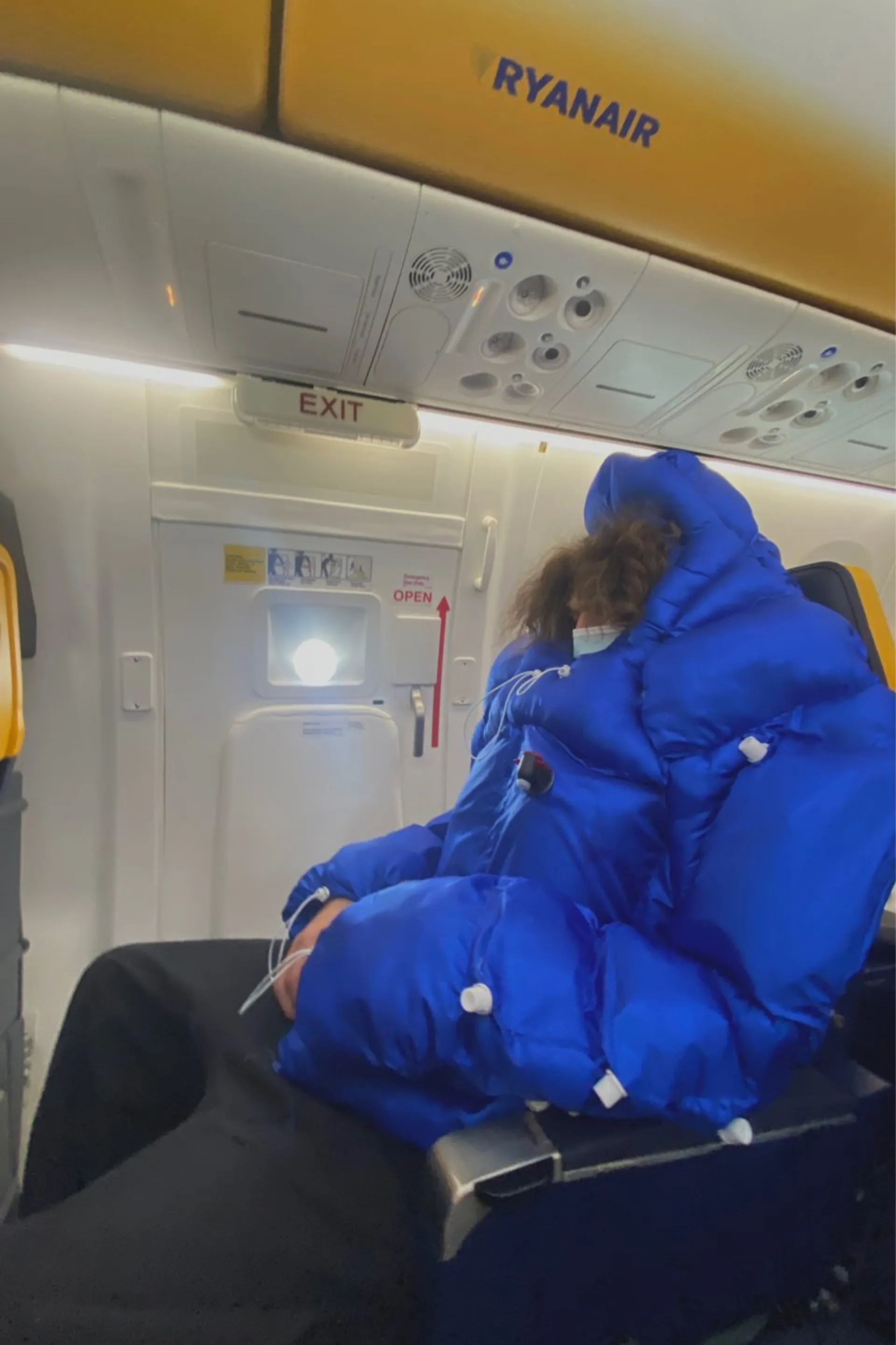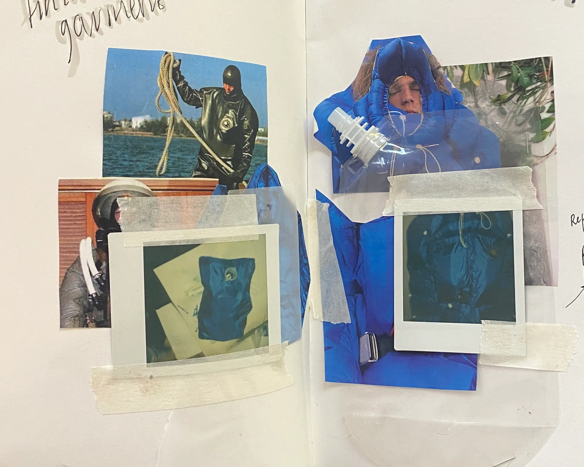 I wanted to create the experience of a bath in a garment.During this finial project I explored the way in which people bathe and the purpose and meaning behind it for them- wether it be spiritual ,holistic or purely sanitation.As someone who’s bath is part of their daily routine I had little knowledge on why other people love or hate them or any experience outside of my own routine in different types of bathing.When I did my interviews I found that many people saw having a bath as a very unique experience that was hard to emulate with anything else.It is a time where you can ‘think clearly because when your head is under water you can’t hear anything expect your own thoughts’.Relating to this experience that many people seemed to have I wonderer if there was actually I way I could produce this effect .That coupled with the fact that many people said they wanted to have a bath but they didn’t have space where they lived or didn’t have time inspired me to create a garment where you were able to have the experience but in the park or on the plane anytime you wanted.
