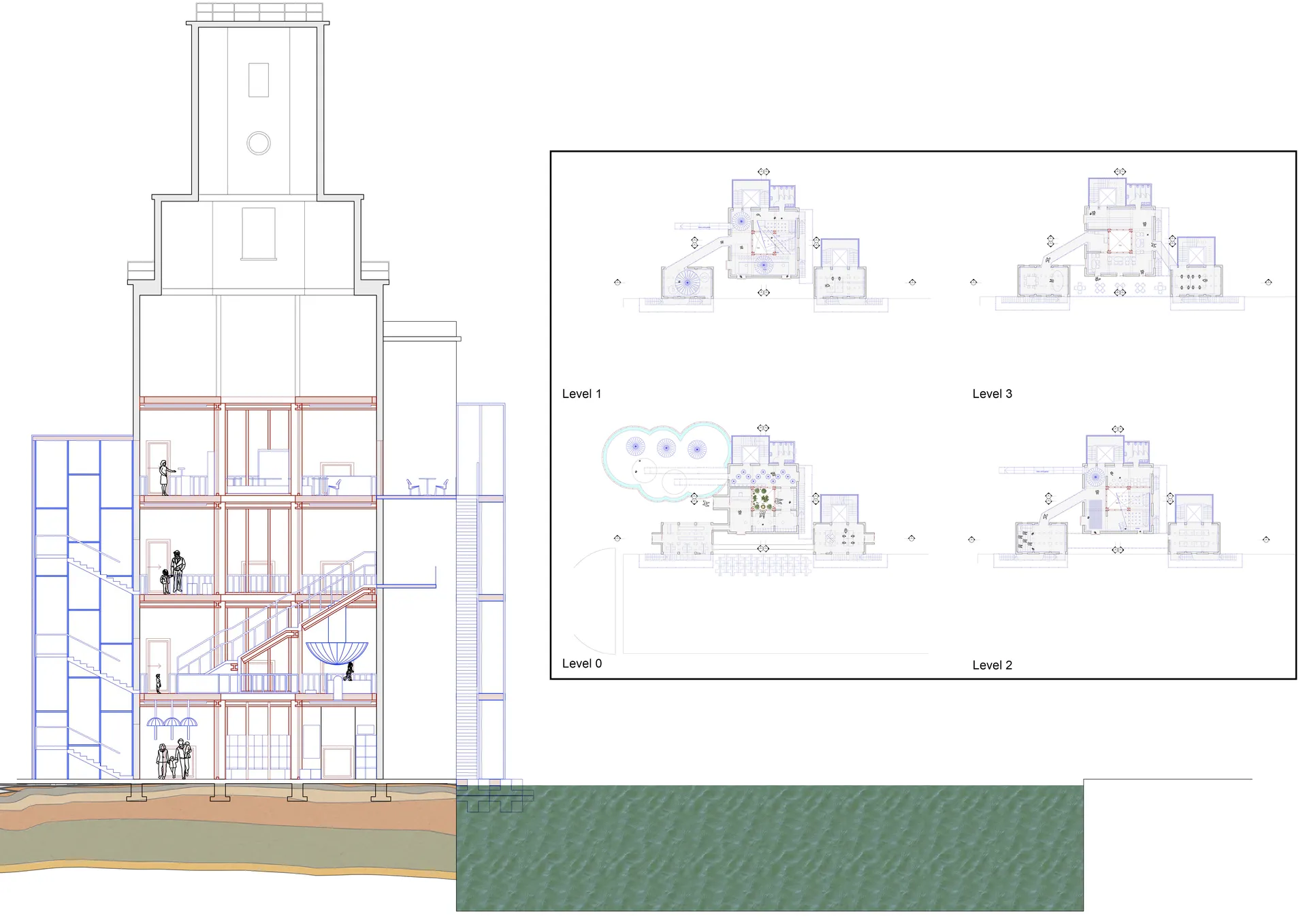 My Final Major Project was to adapt and repurpose Silo D. Silo D is a listed concrete silo, located at Millennium Mills, Royal Victoria docks. I had to develop a use that enhanced the facilities currently in the community that also incorporates circular economy. I chose to develop Playscape due to the development of residential buildings with limited activates in the community for families.