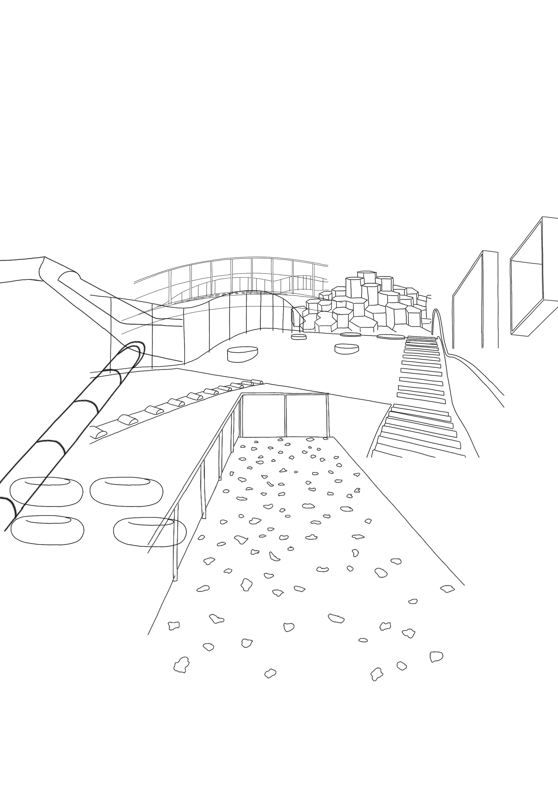 Playscape is a four-story space where primary school aged children can learn through play, developing their group interaction, risk assessment, discovery, and imagination skills. My proposal was inspired by The Playscape in Beijing which is focused around the same concept and The Health and Children’s Centre in Japan which is a play zone for children but also a health and childcare support centre for families.