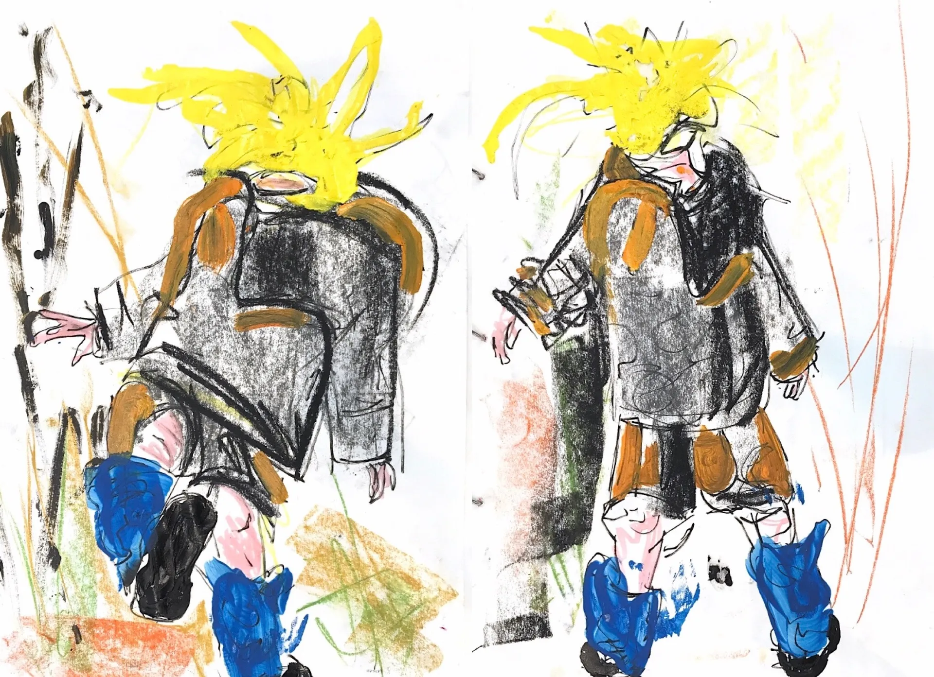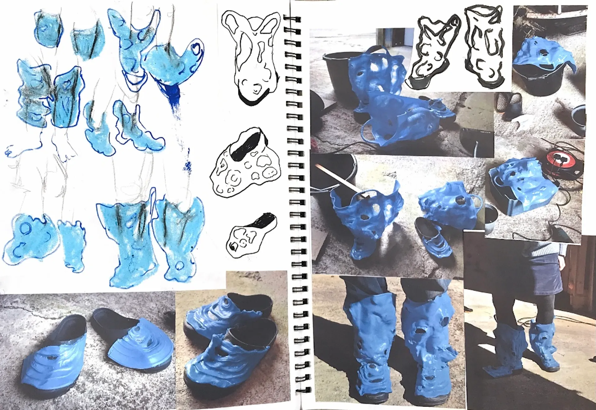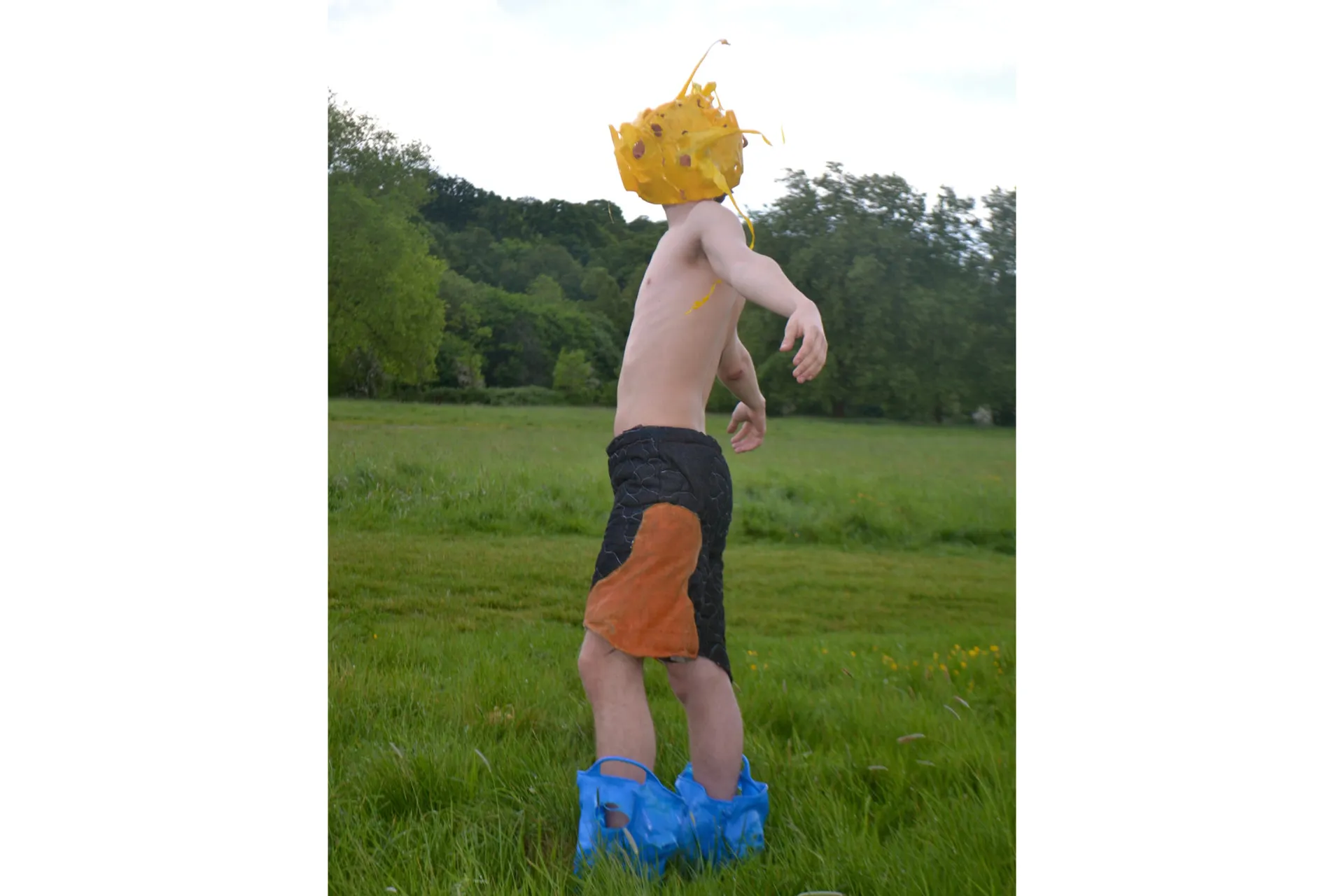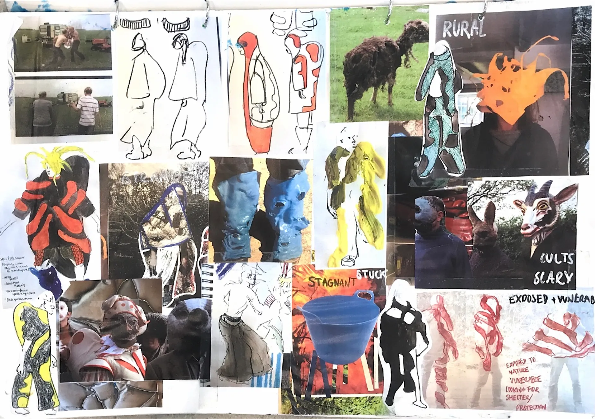 I am interested in how rural people play into “pastoral identities” and respond to the roles placed upon them. Originally my focus was on subverting people’s perceptions, but as my project has developed I have become more interested in the freedom people can find by adopting characters and celebrating the bizarre nature of folk horror and “Englishness”. My project is rooted in old English rituals around life and death, exploring burning natural materials ie. straw doll rituals, the Wicker Man etc. I have worked with melting plastic Flexi-tubs as a current reflection of these customs, to explore how a modern folk figure might exist.