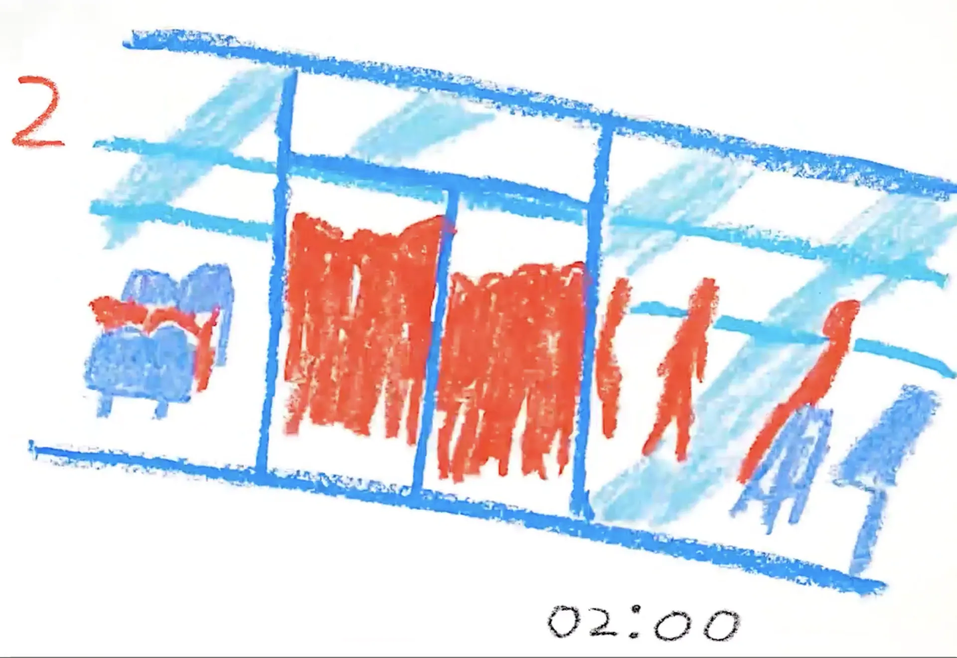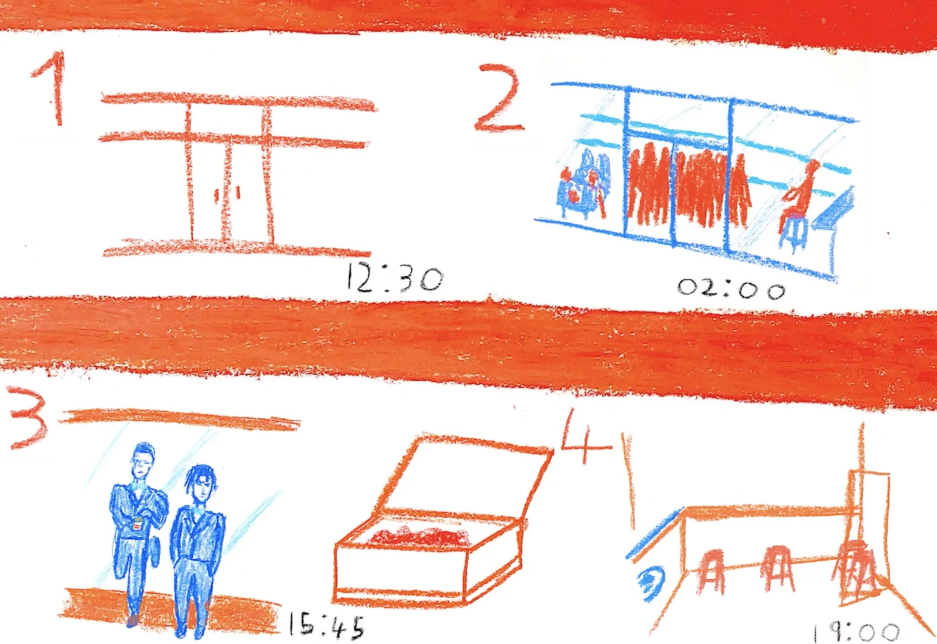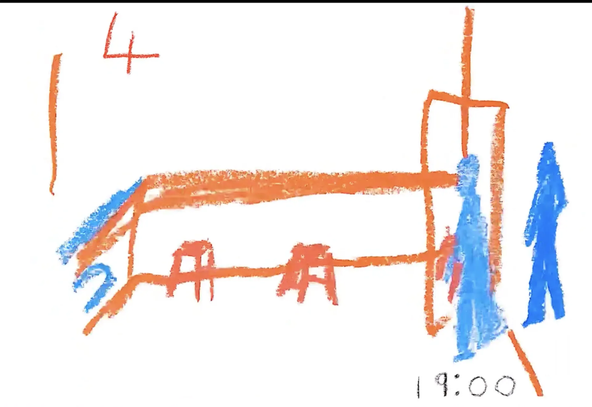 This is an animation about the events that happen inside a chicken shop at different times of the day.
