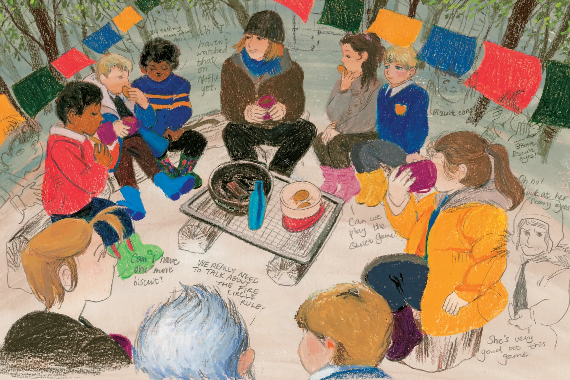 Her recent project, There’s no such thing as bad weather, only unsuitable clothing unveils and celebrates untold stories behind the fences of St. John’s Forest School in Kingston. The school provides a safe space for students with social, emotional and mental health needs. Created through site visits and drawings in location, the book explains the value of forest school for these students, and more importantly, conveys the message that they are children before they are “special needs children”.