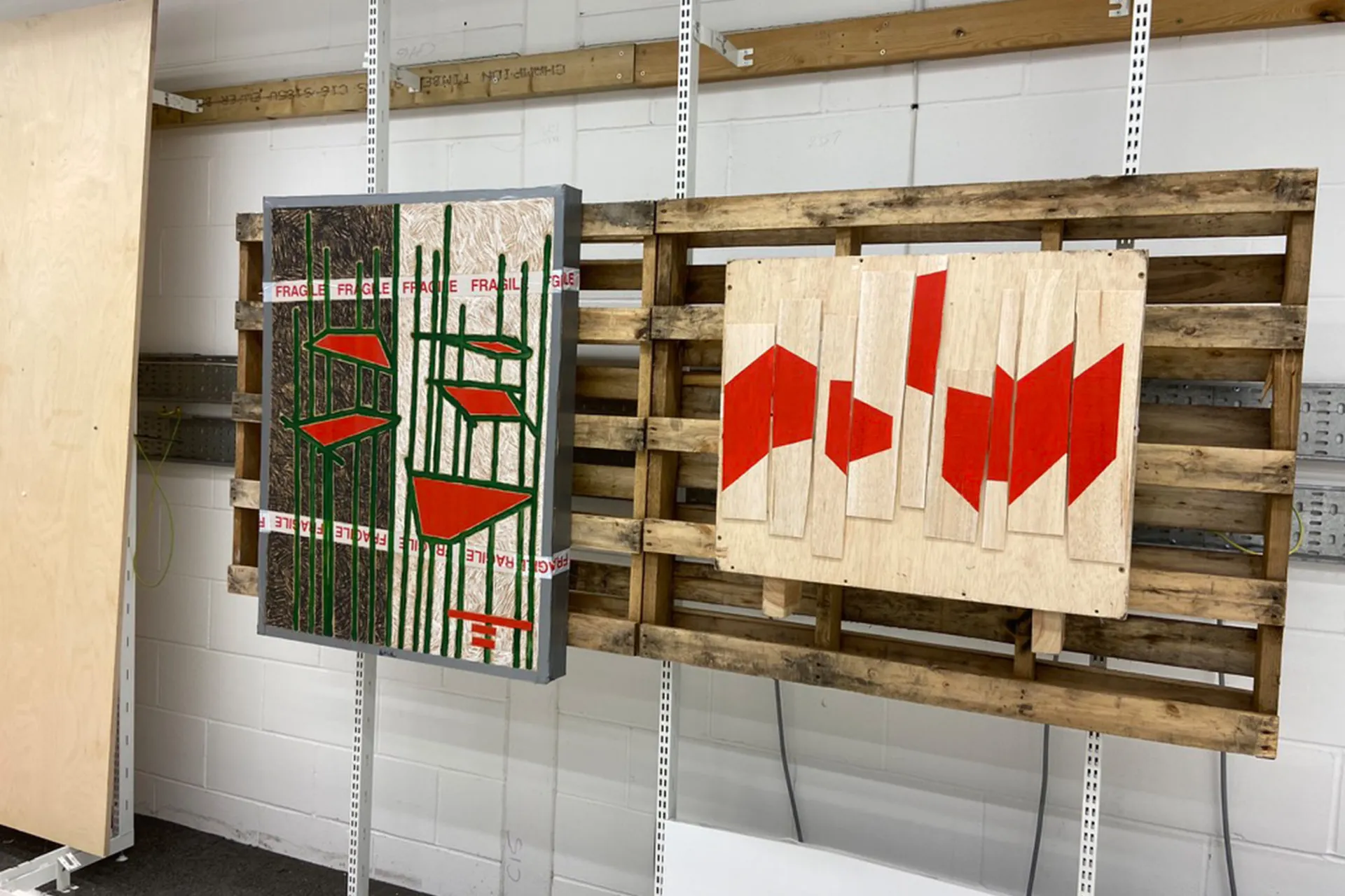 ‘My practice engages with the spaces that artwork occupies from conception to display. Through the course of the pandemic, as creative institutions faced closures, I was concerned with the forced versatility of the home which had at once become a studio, library, university, gallery and sanctuary. Now, as we return to a fragile sense of normality, I turn to the interstitial and intermediate spaces of contemporary art institutions, questioning notions of the ‘white-cube’, art-world labour, and the environmental implications of gallery practices.’