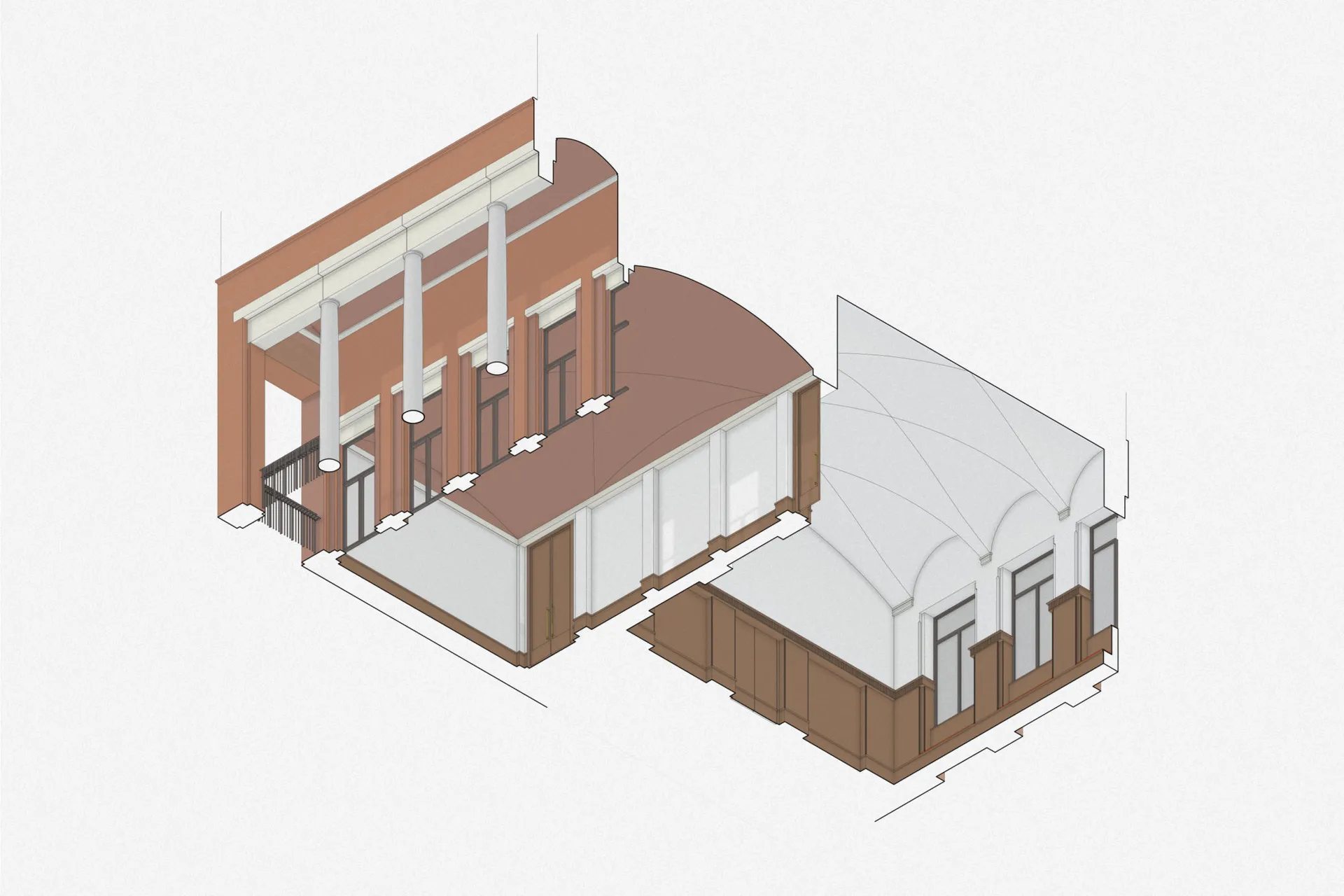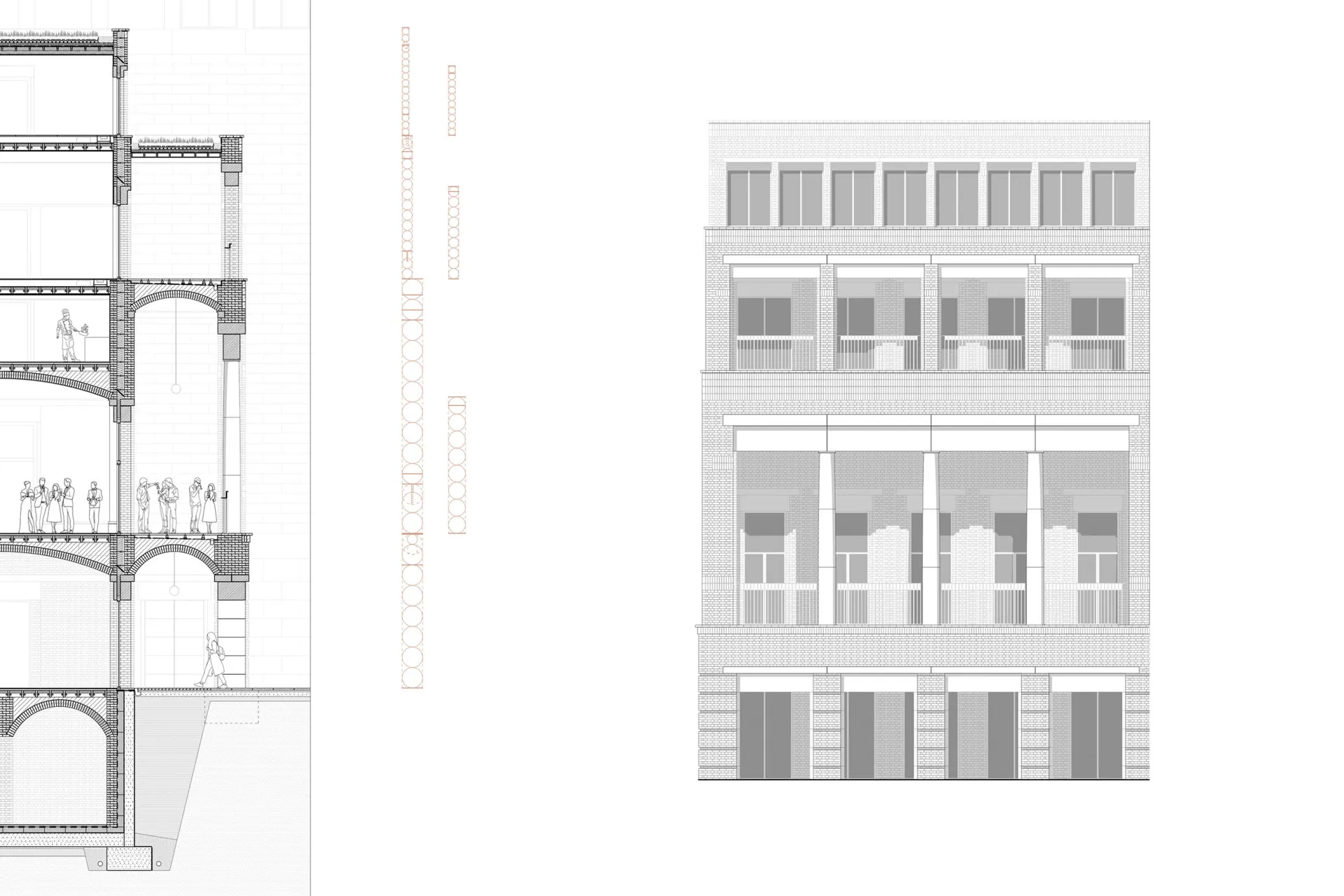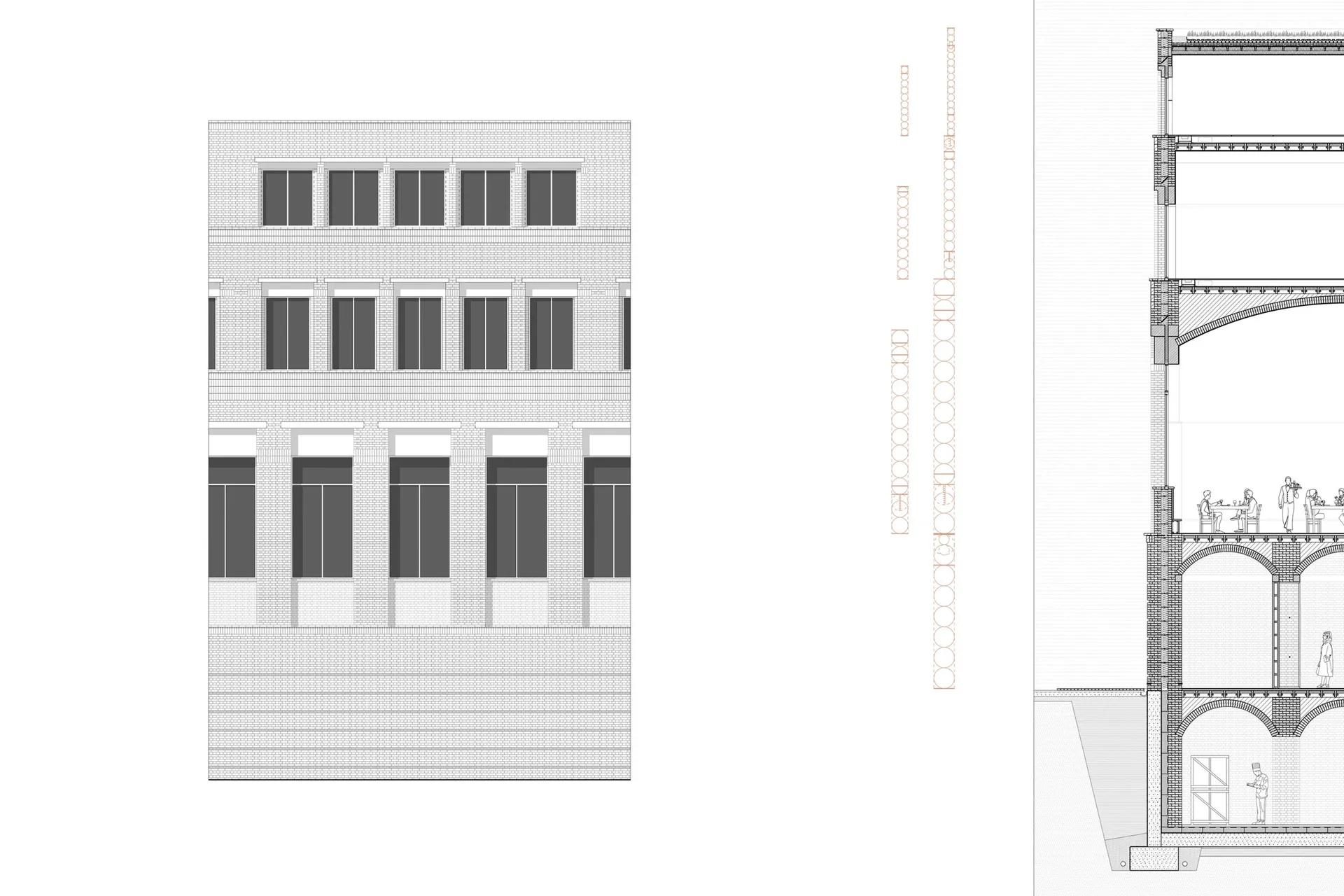 Lintels, voussoirs, arches, vaults, piers; all components of traditional masonry construction.The project employs a multitude of traditional masonry construction techniques to estalbish an architecture which is rooted in a history of construction with a modern day sensibility towards detail and ornamentation.