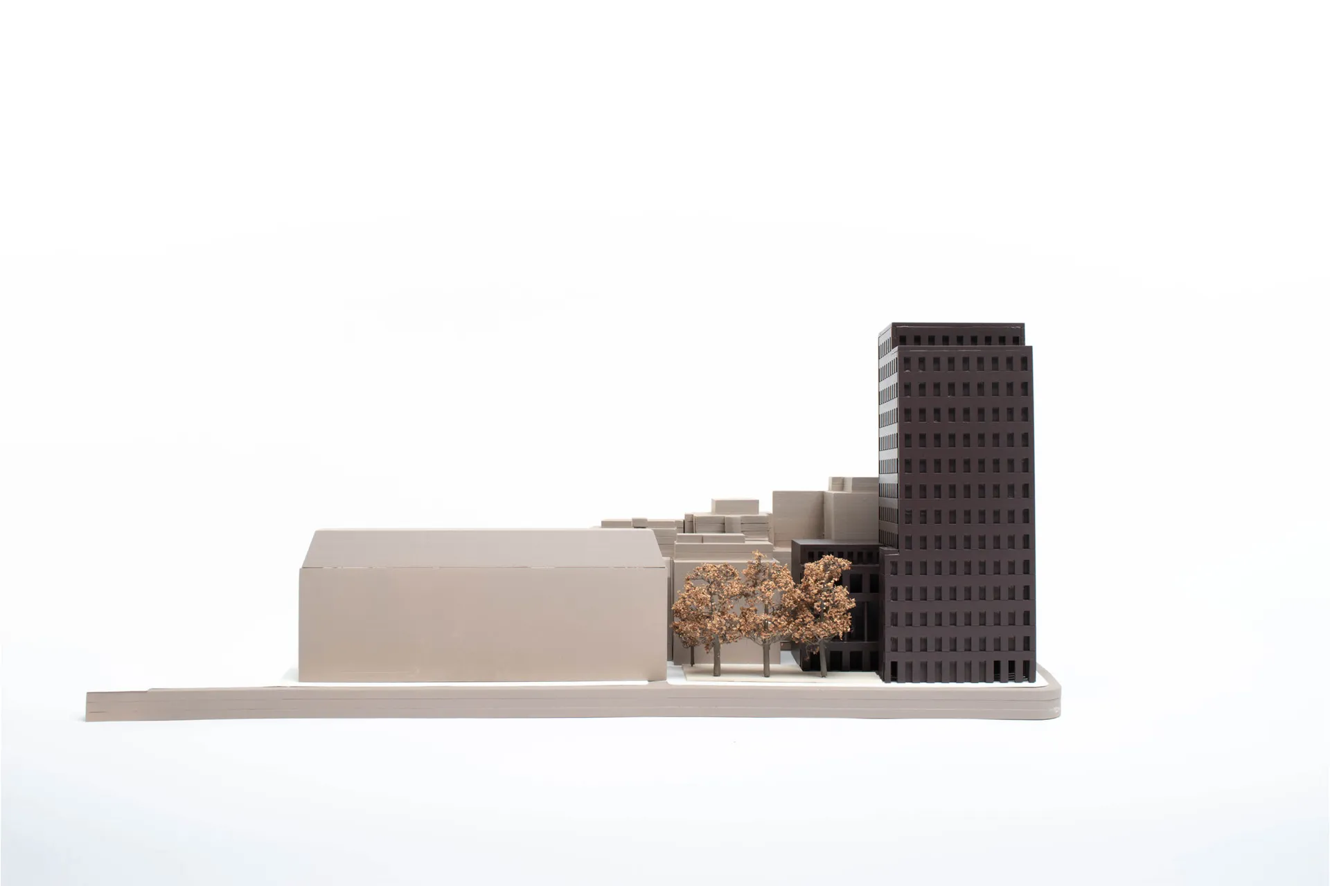 Referencing Aldo Rossi’s idea of the natural evolution of the city. The Livery Hall steps down to address the garden and tree line, brining a human scale that references the Wren churches of the City. The Public House references the scale of a traditional vernacular building, completing the line of the street.