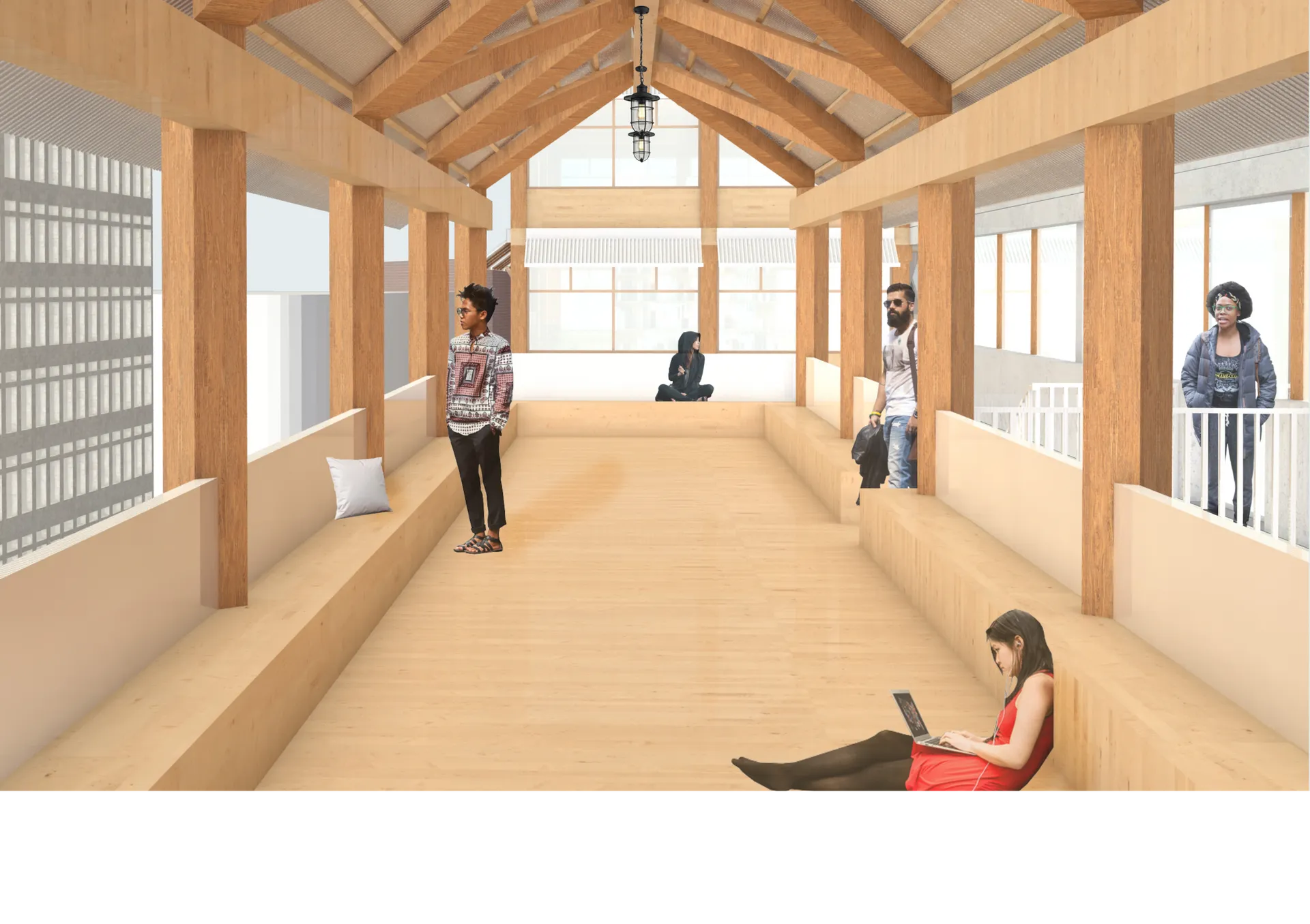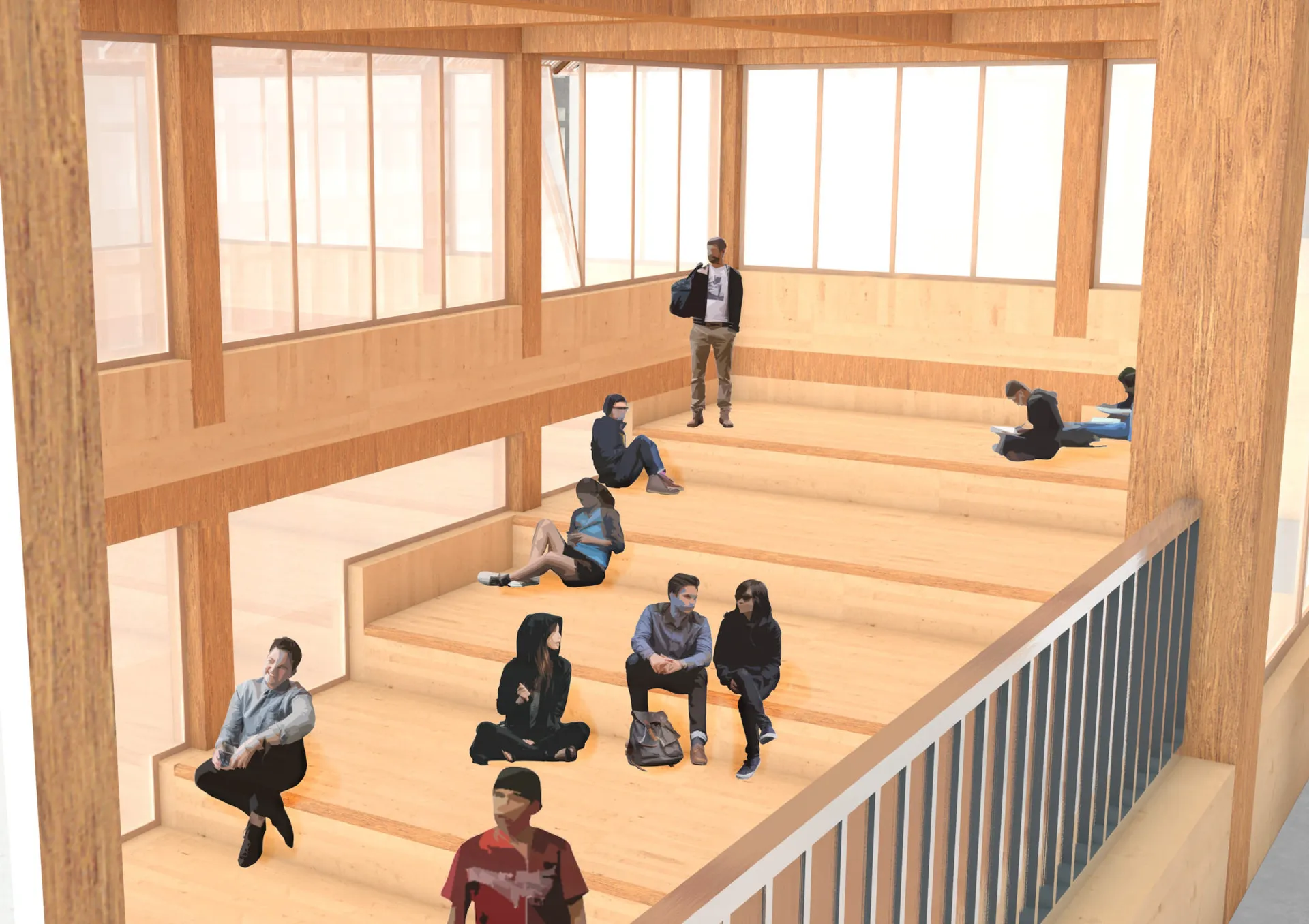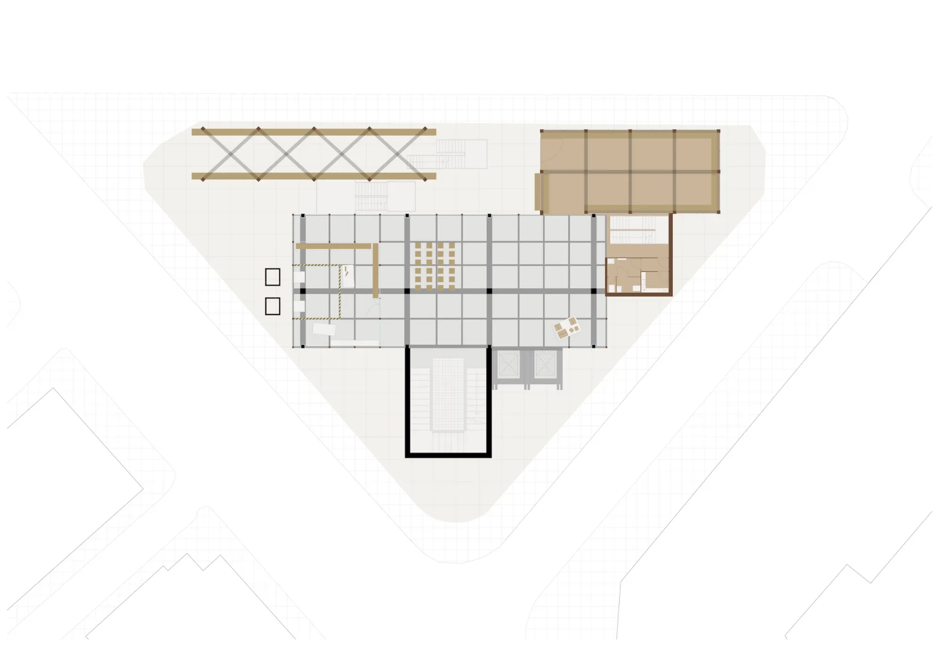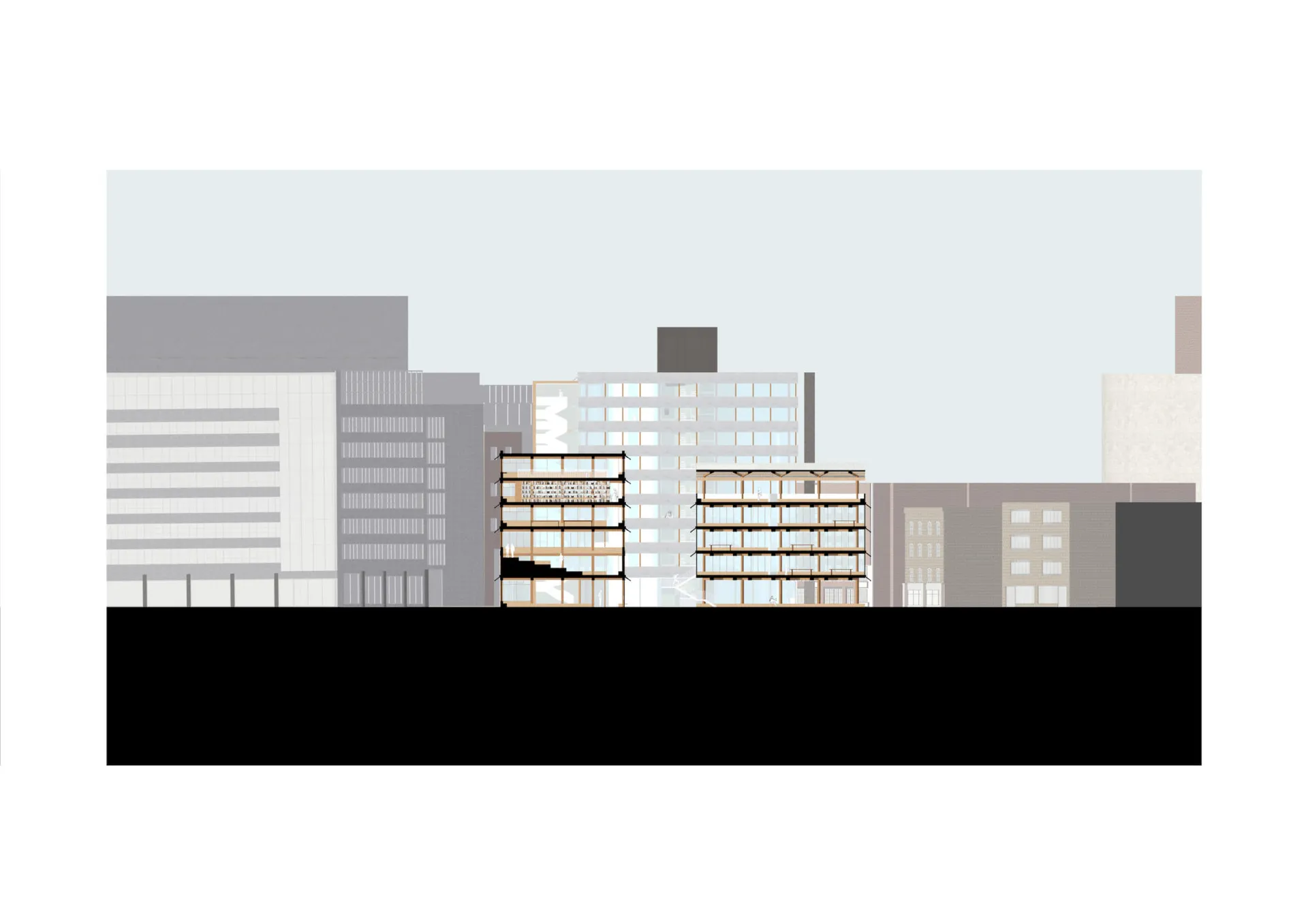 This project avoids hiding the existing structure with new materials. I chose to express the juxtaposition between old and new, cold and warm, hard and soft. This is done by the clear distinction between concrete and timber.