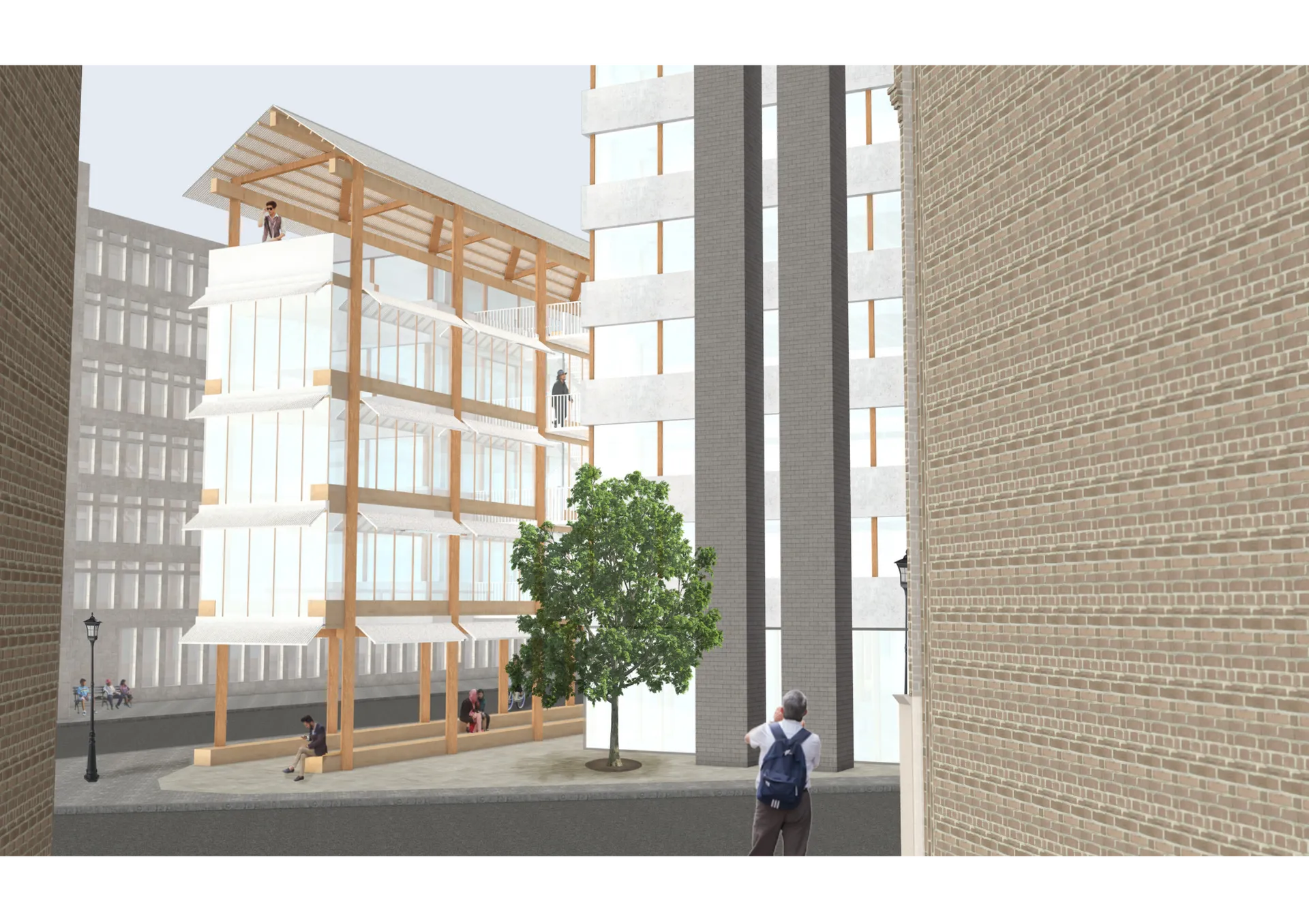 This proposal works with multiple materials and adopts different personas across the building.