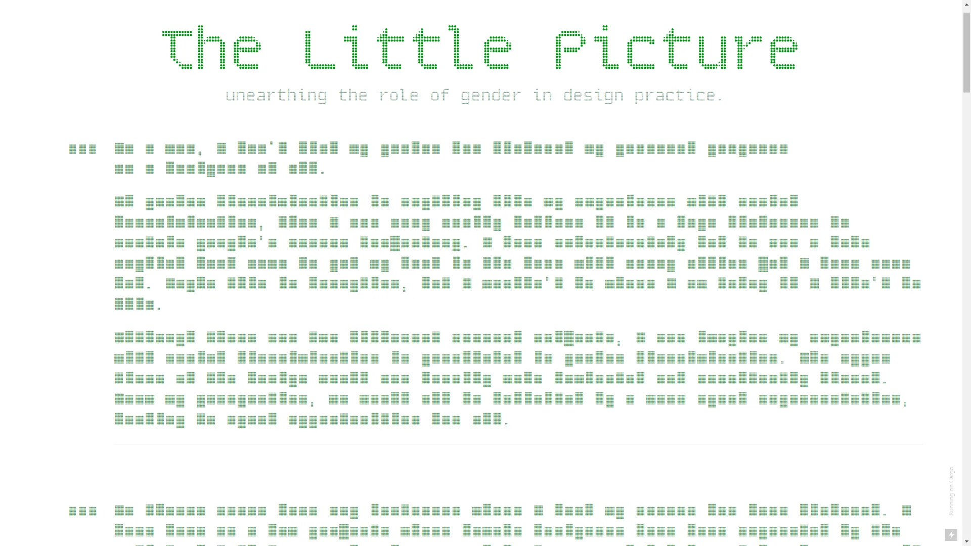 [4] The Little Picture — a website which reveals and documents the lived experiences of designers answering questions relating to their gender identity.