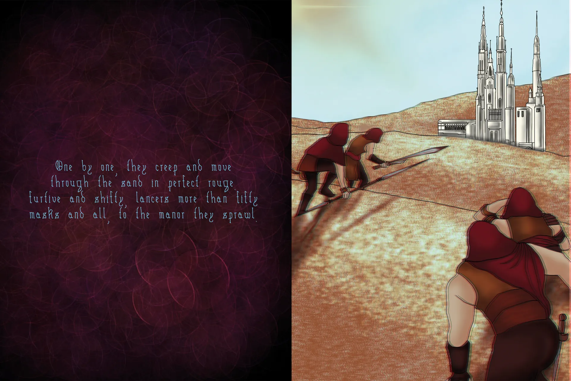 The inspiration for this project comes from an underlying desire to go to the movies during the pandemic. The concept was to create a book that brings in the experience of cinema through it’s pages. To create an anglyphic book, with 3D illustration narrating the story that can be read using 3D glasses.