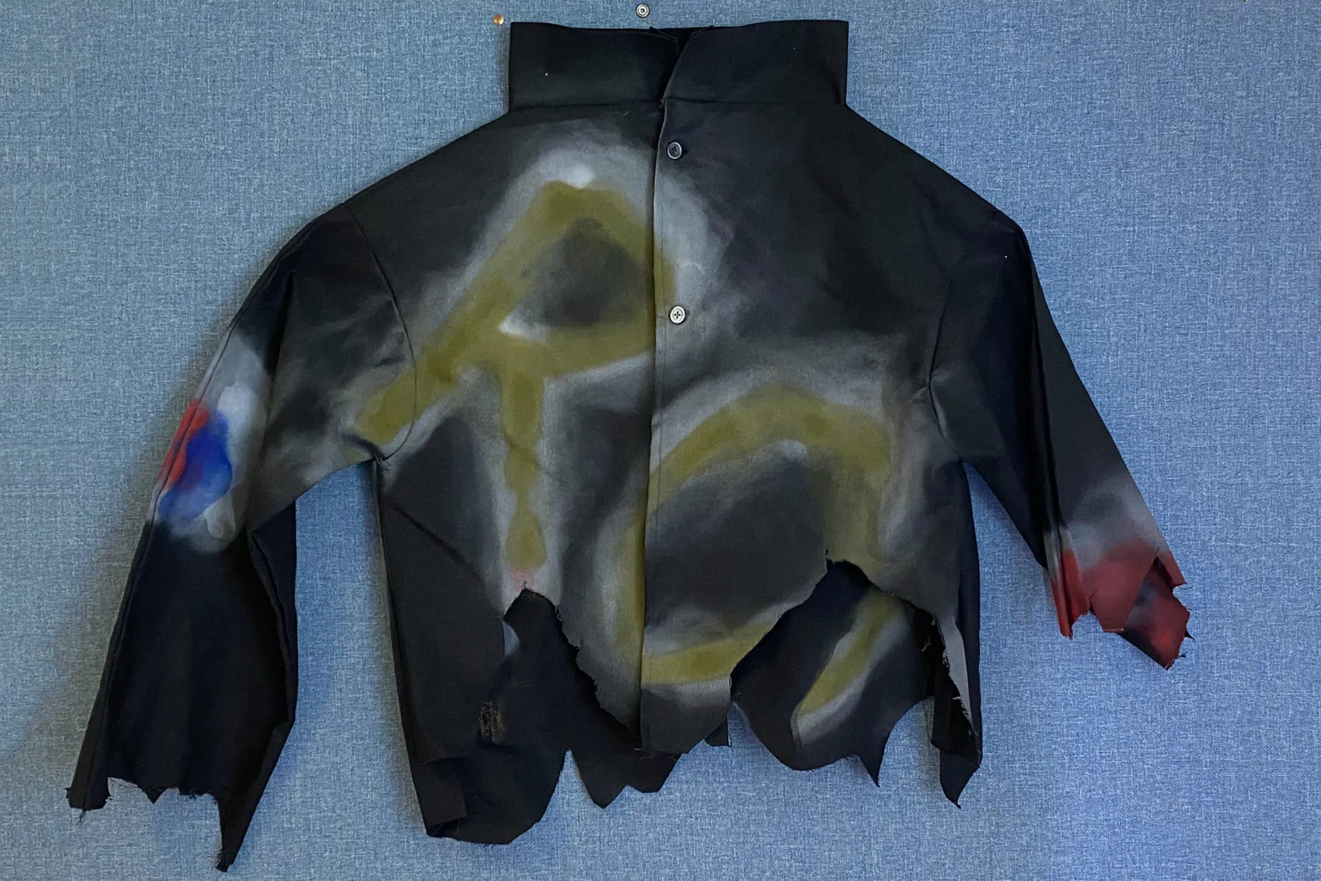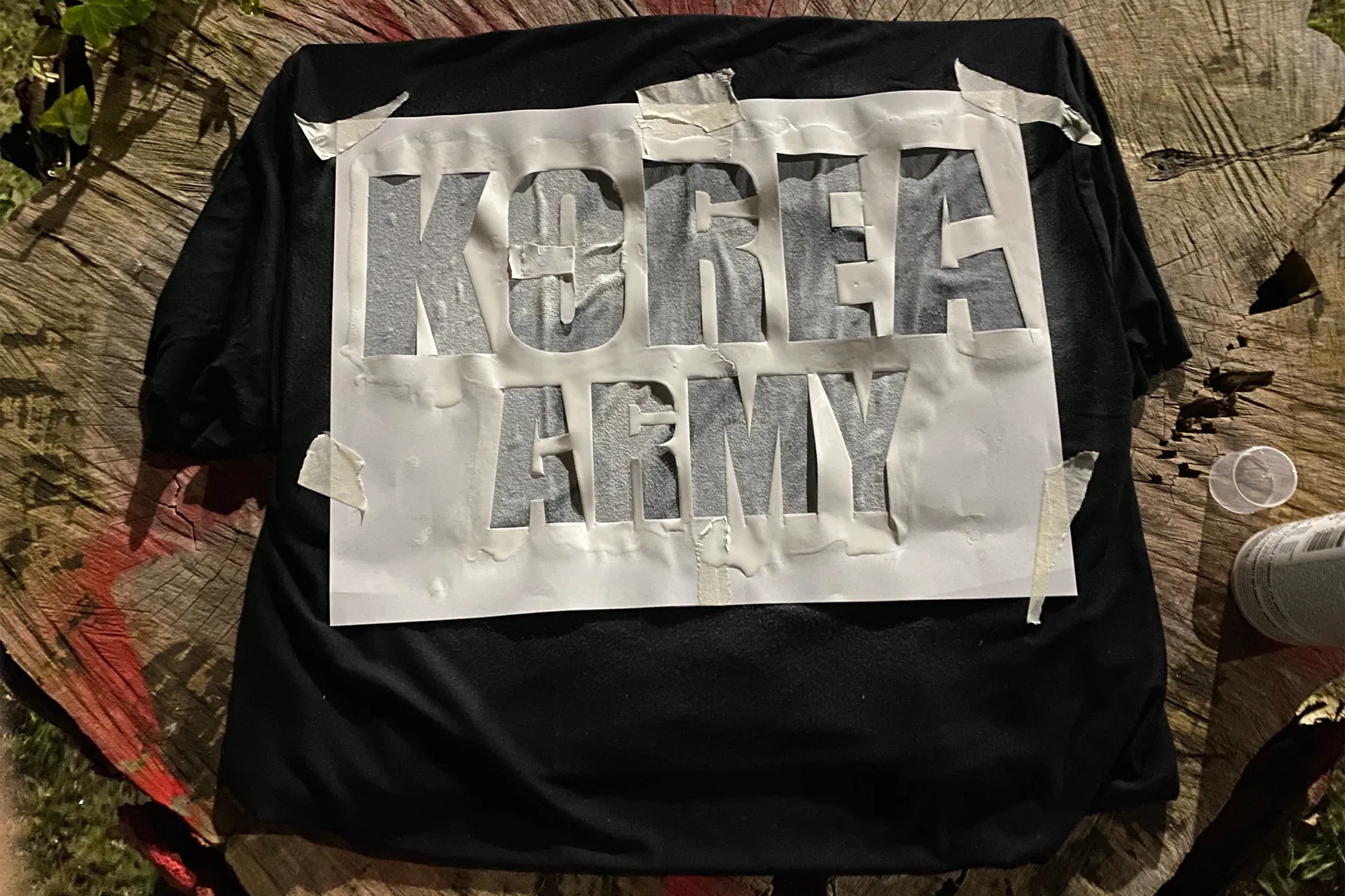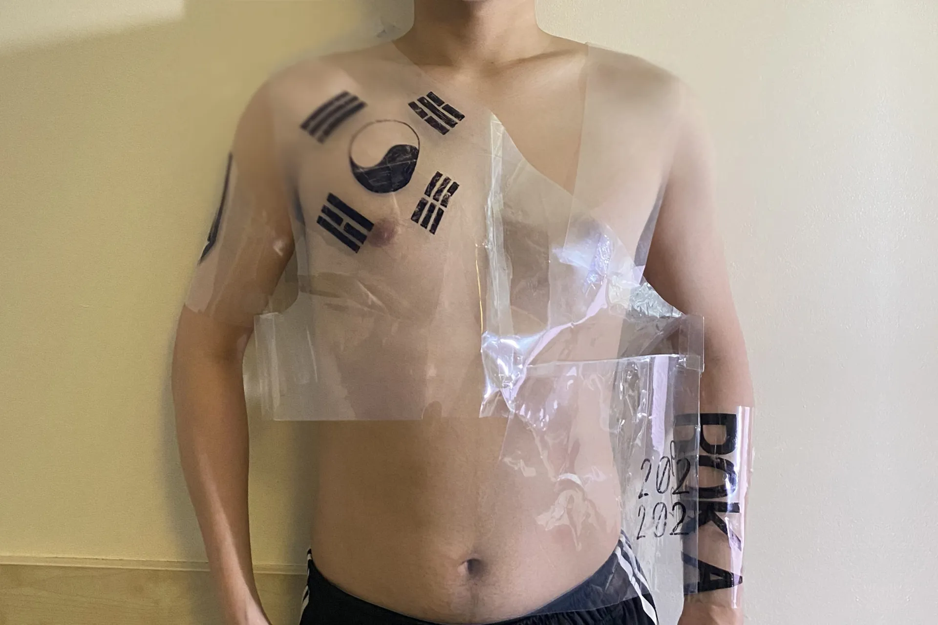 Final outcome is consisted in to four layers. Tattoo layers, ROKA t shirt, Uniform and pockets. T shirt is for proud feelings being in military, doing something for my nations, on the other hand tattoo layer which is the most inner layer is about bad memories and traumas people get while they are in military. In my opinion, tattoo is graffiti on the body but graffiti that can’t easily removed like the bad memory in our head so that we can’t run away from that moment. I drew symbolic mark, national flag, ROKA and the date I join and retire. By cutting and ripping the edge of the uniform, I tried to show some tough conditions because I thought while the hard training, the fabric get easily damaged and worn out. Also I painted the edge of one side of the arm in to red to talk about injury. When I saw the photo of my friends lying down on a bed in hospital with his broken leg and heard the news that another friend on mine retired earlier because of the medical issue, I was a shocked and that was the unforgettable moment to me. Lastly, with the pocket layer which is the most outer layer among the all the pieces, that layer means people in military is holding heavy burden every second not only physically but also mentally that bothers and make people tired. Spending couple years away from home, family, friends and everything I want, regardless of my will and the worries about after completing the military service.