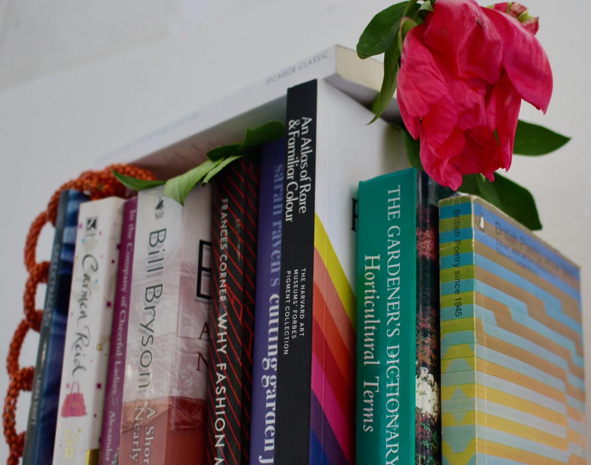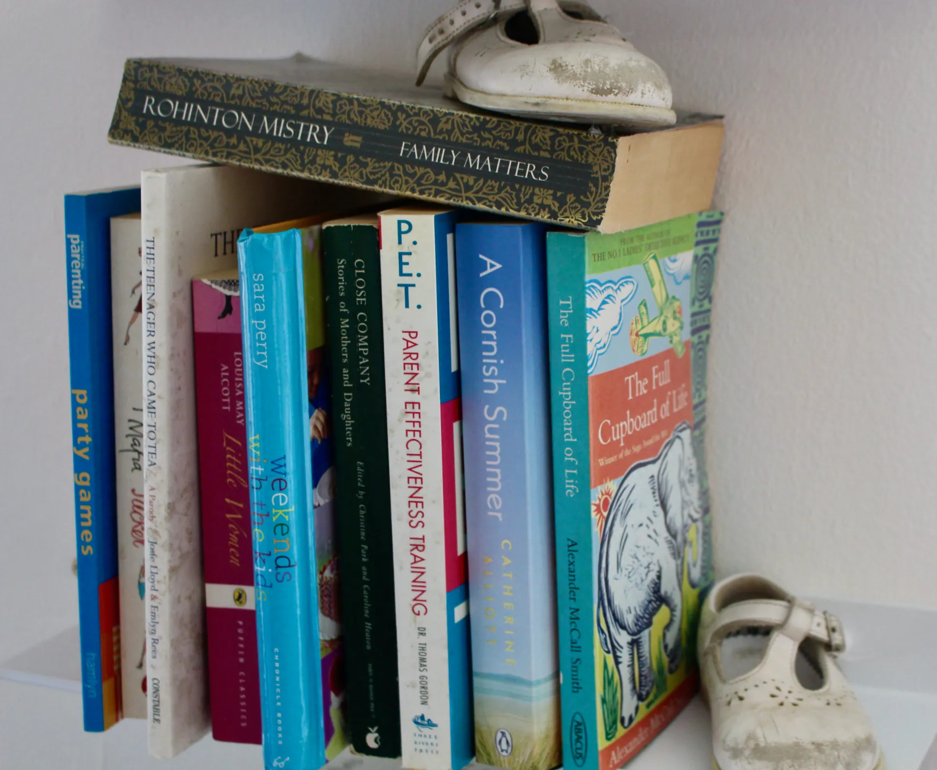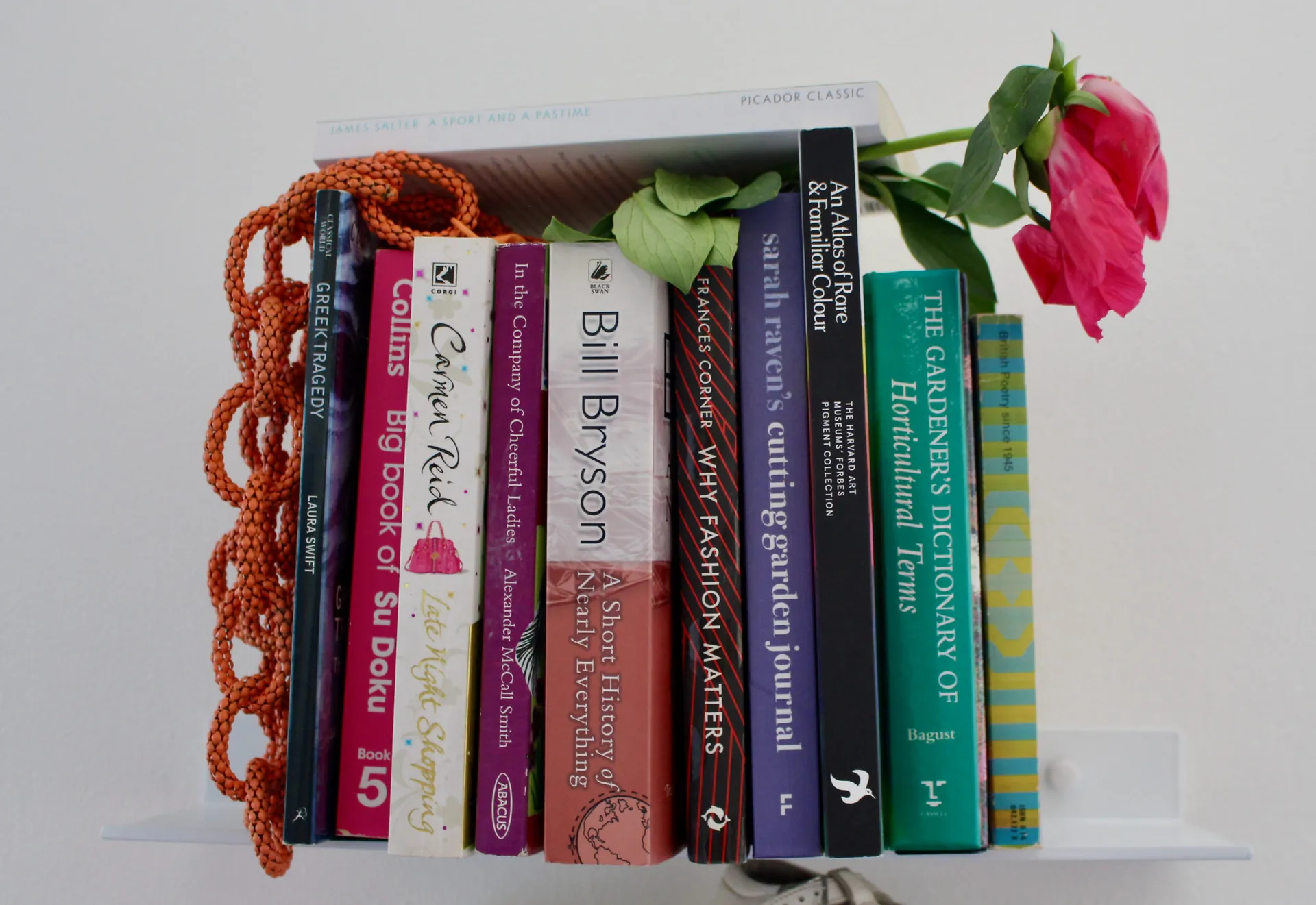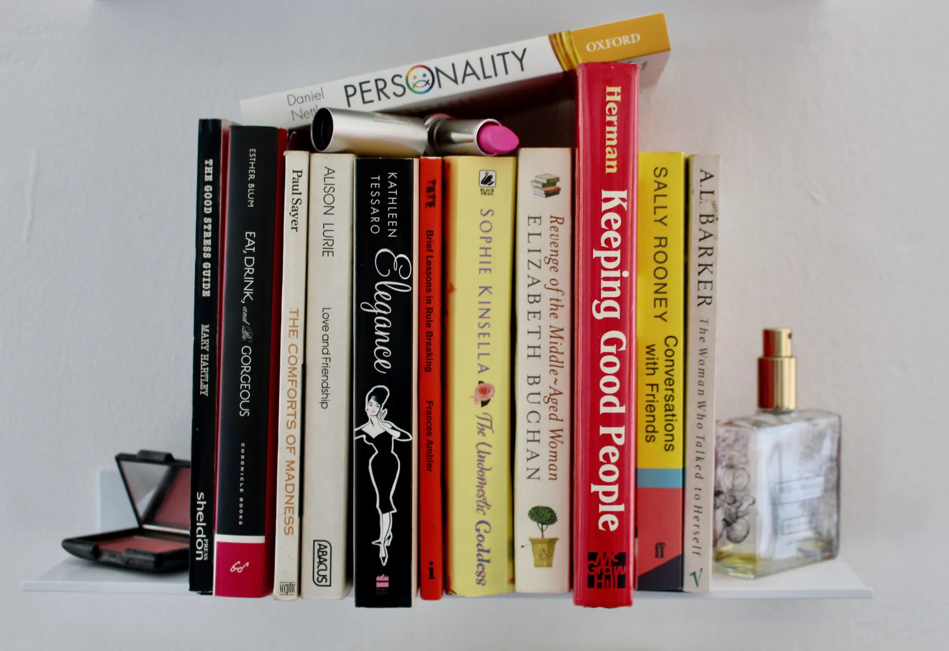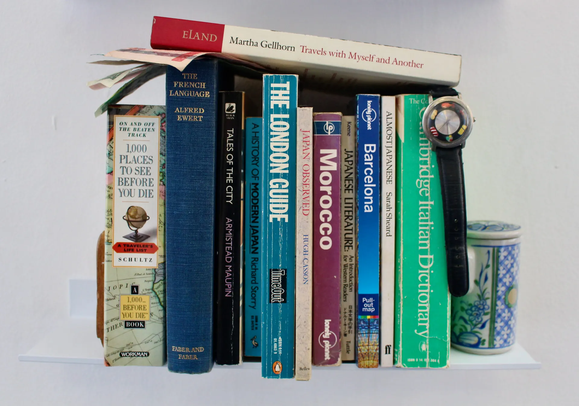 The book titles compliment the personal items, shedding light on many of the significant themes in her life.