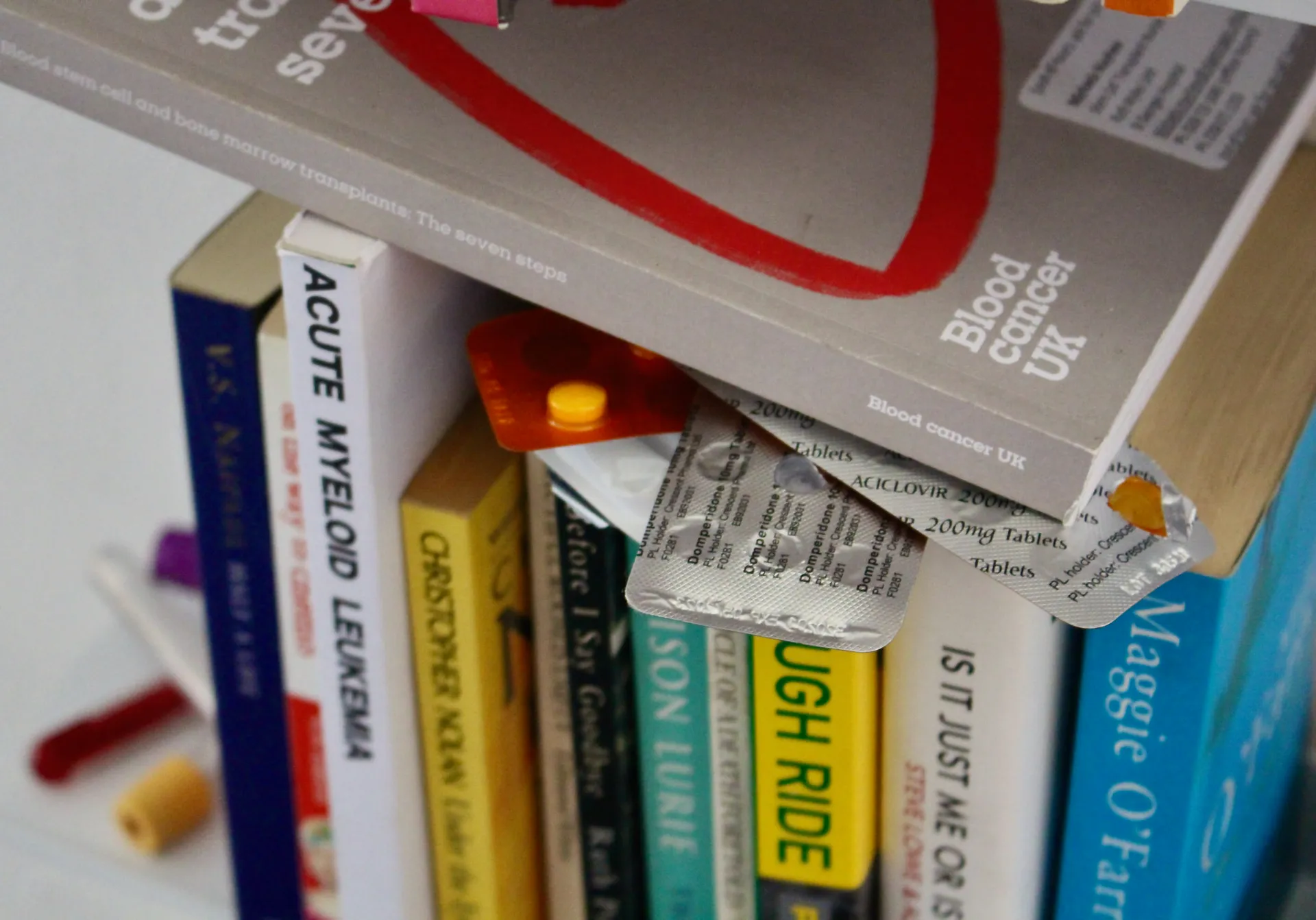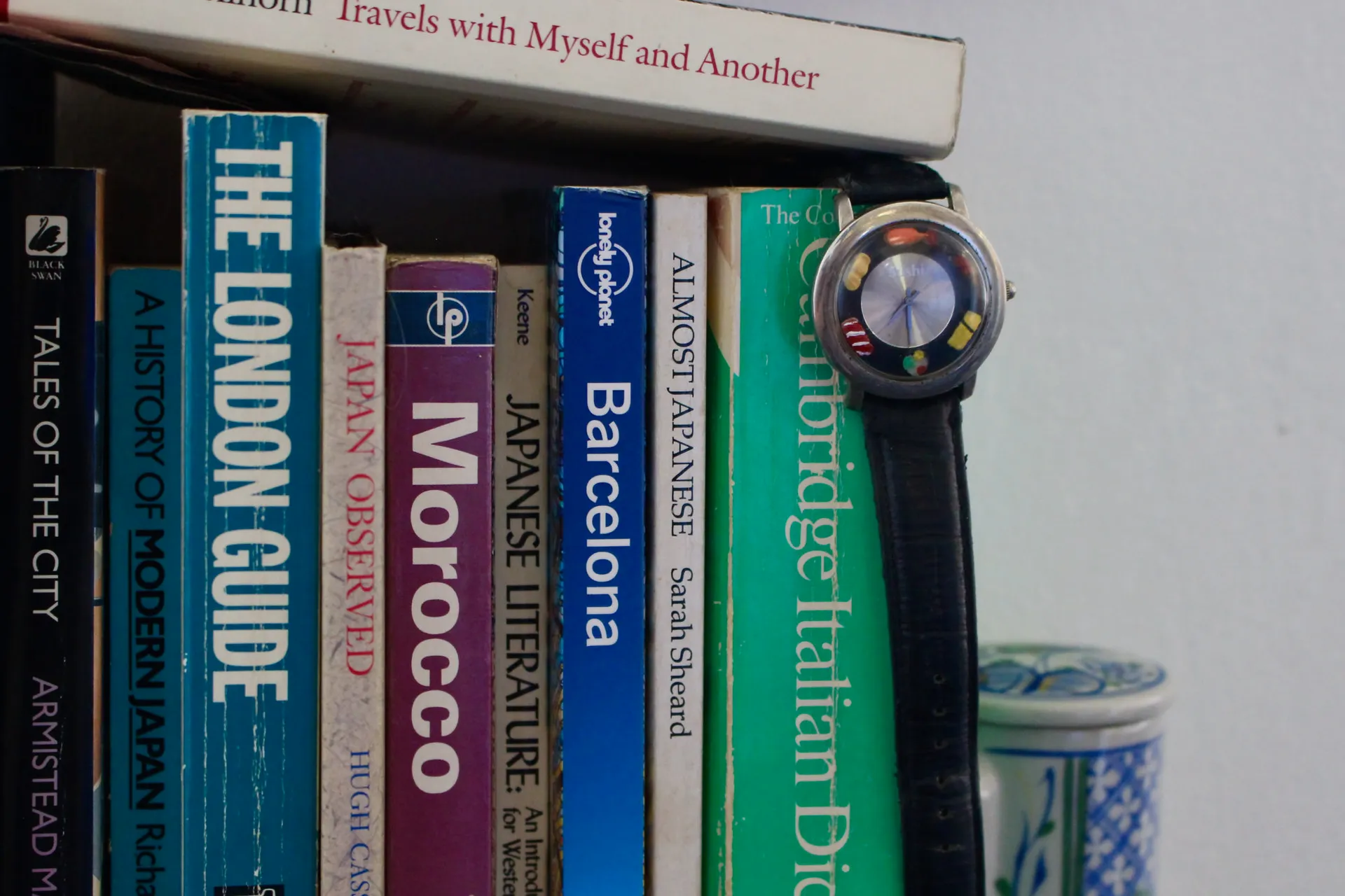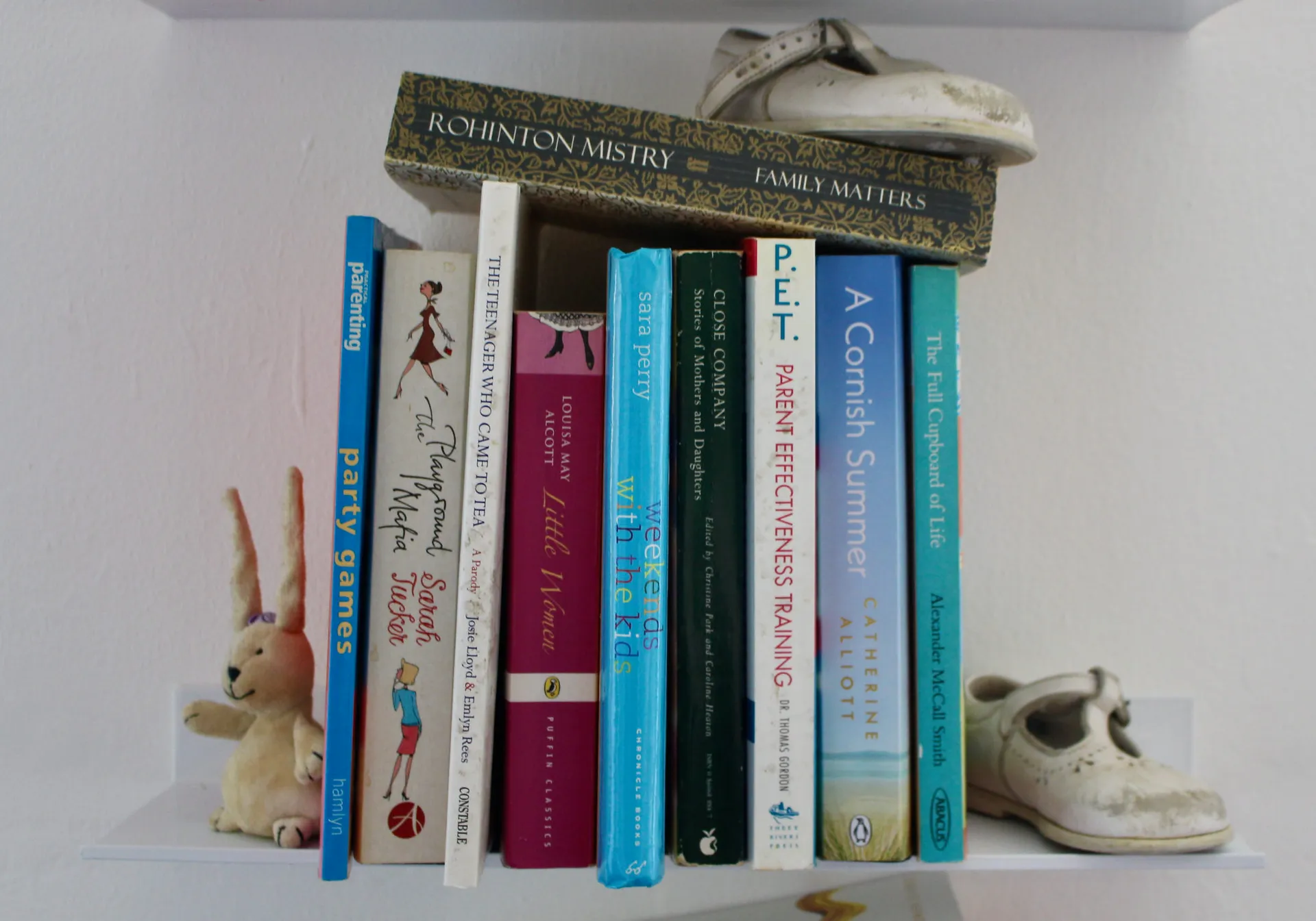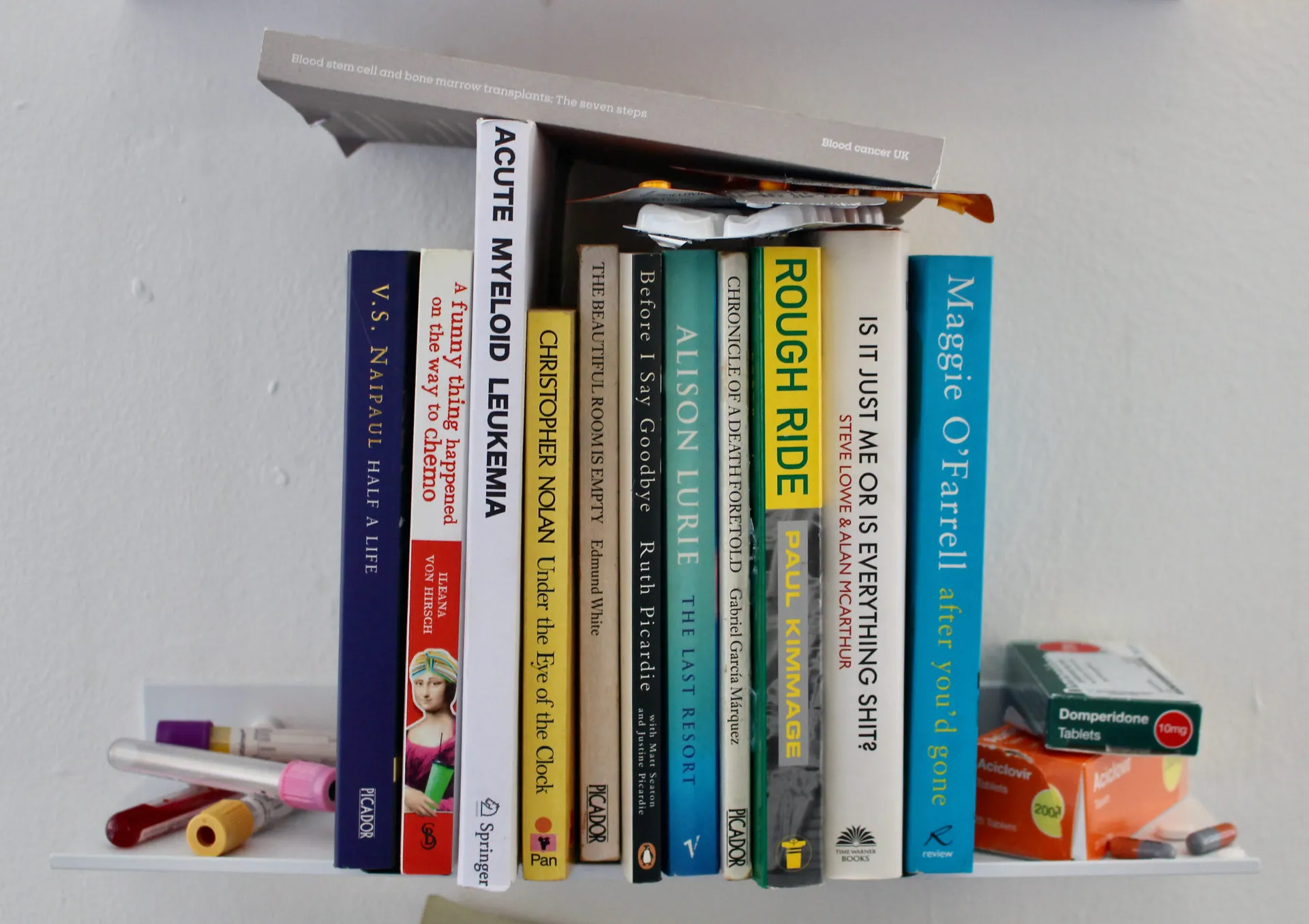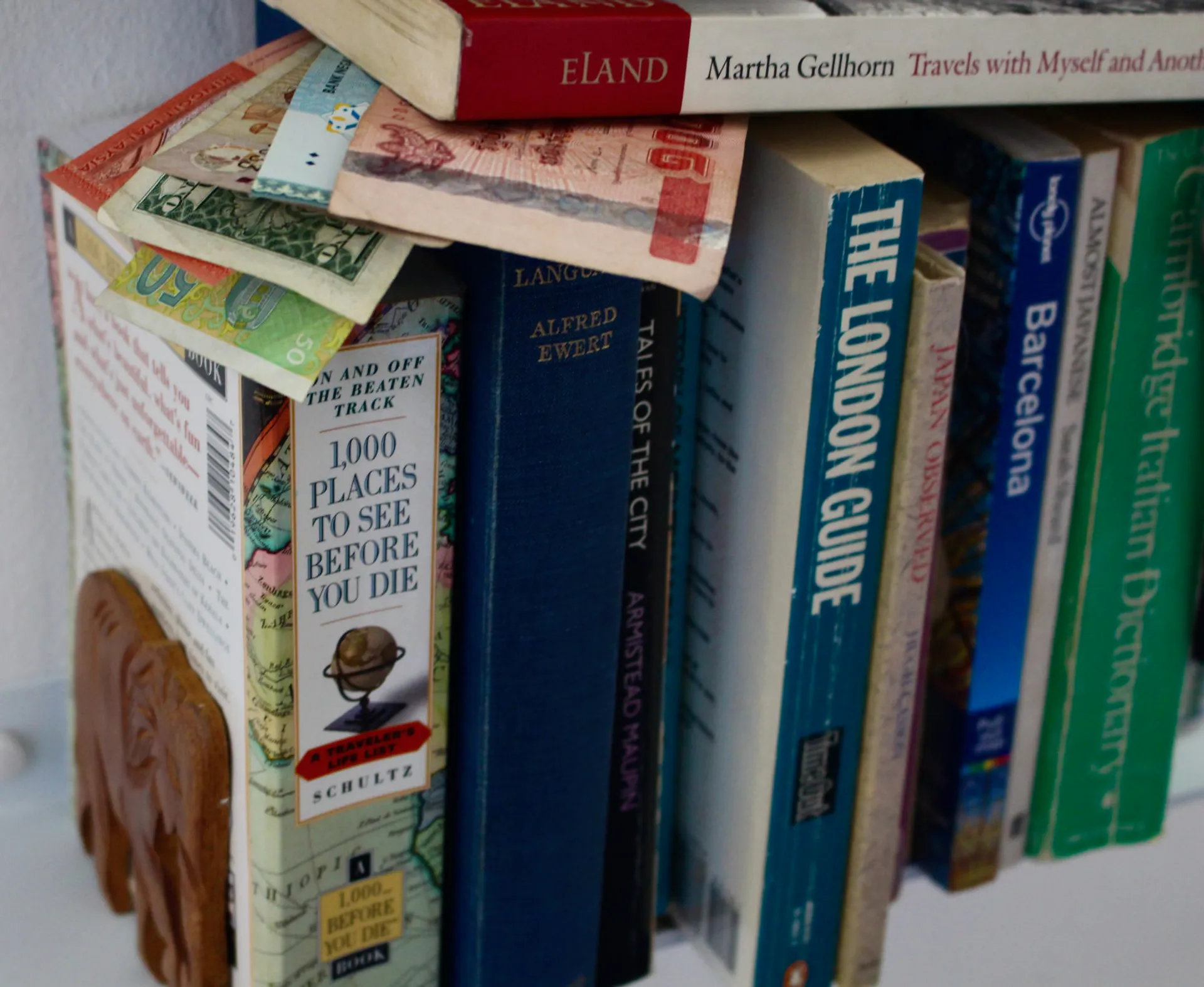 The book titles compliment the personal items, shedding light on many of the significant themes in her life.