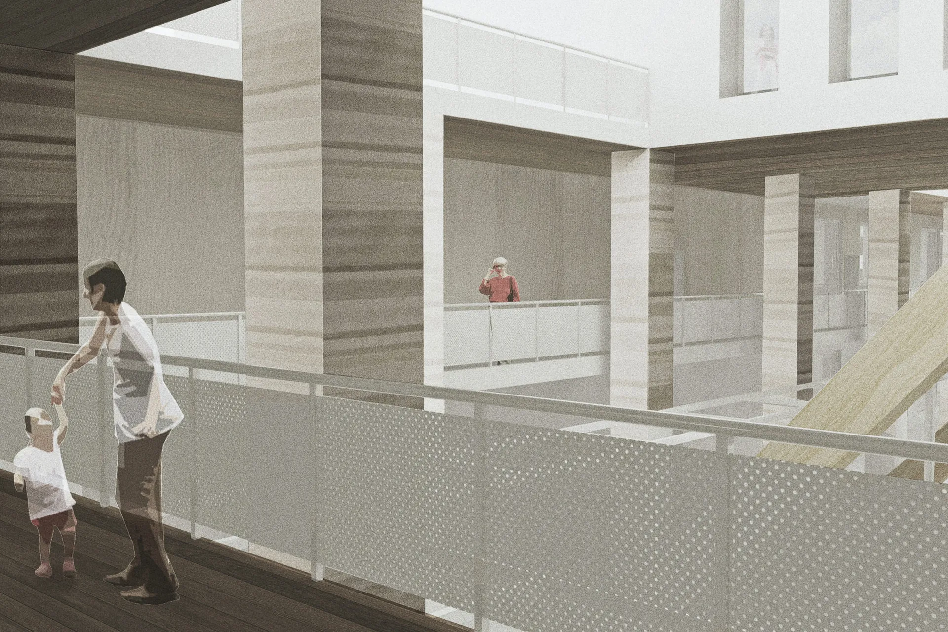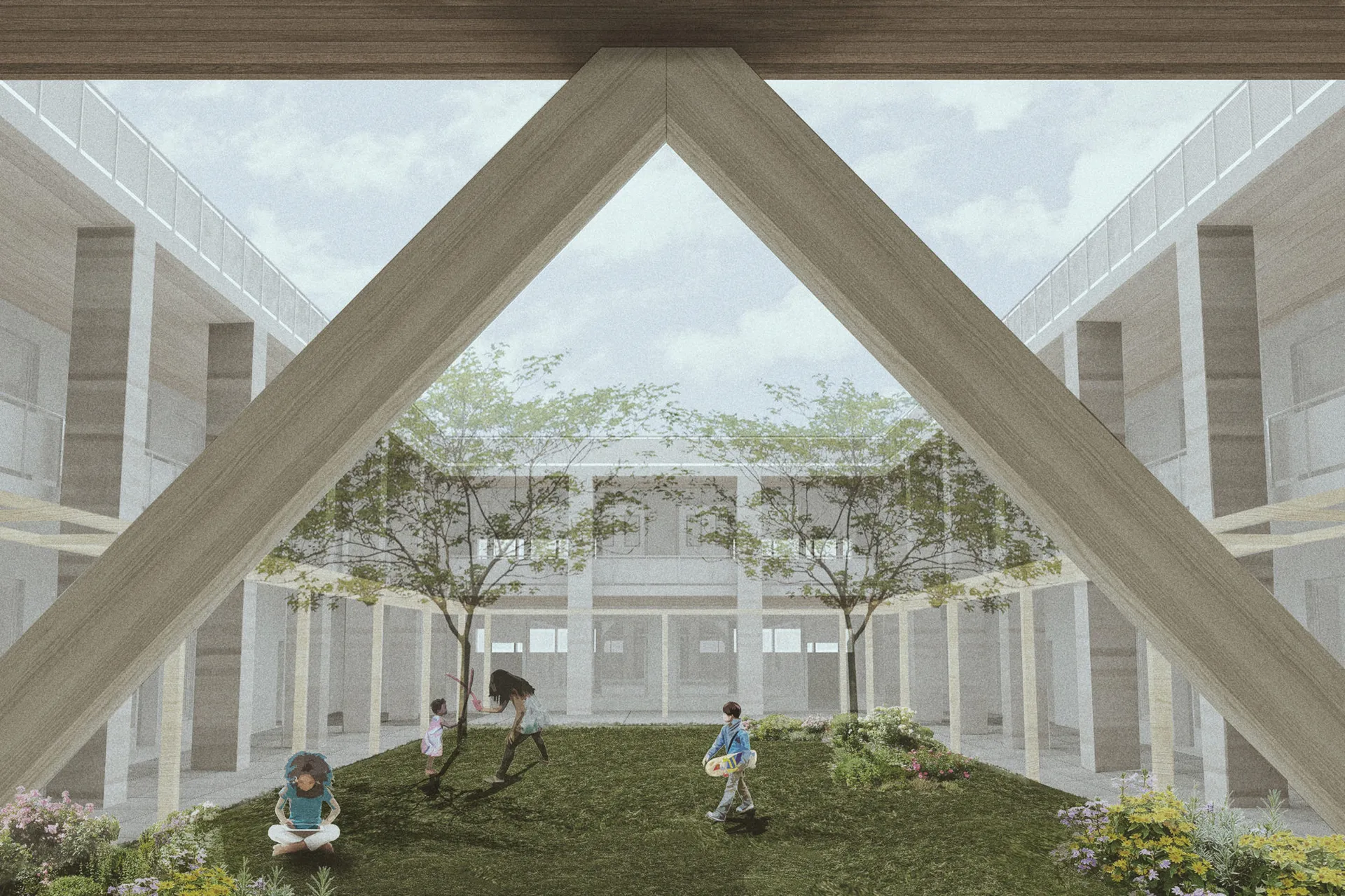 The proposal houses an enclosed garden also known as a “Hortus Conclusus”. This not only provides privacy for the children but allows them increasingly rare space to think freely in open air, isolated from the busyness of the city.