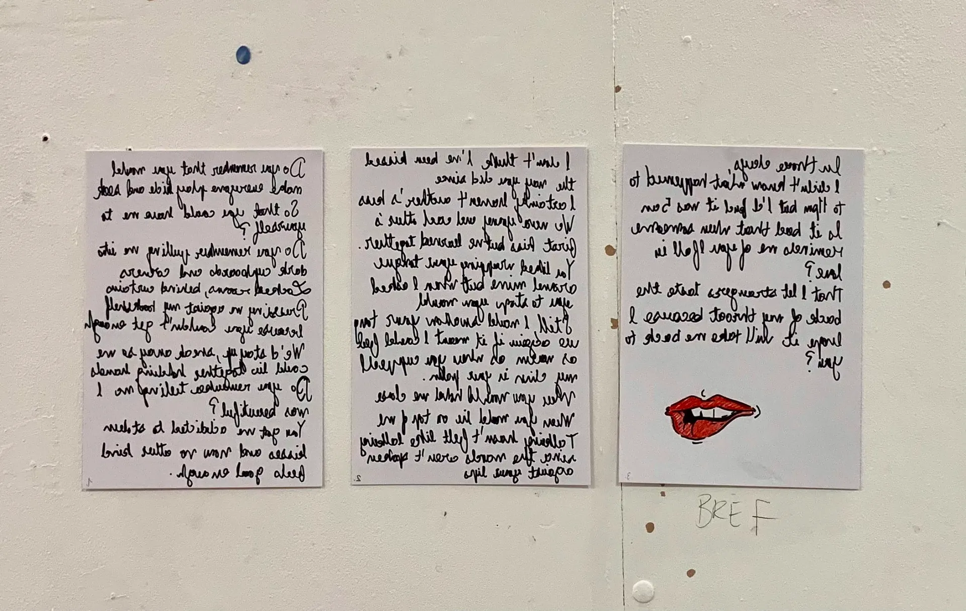 Her artwork is created with the intention of communicating in the most confusing way possible. She uses texture and snippets of stories to convey subliminally what she wants you to take away from the work.