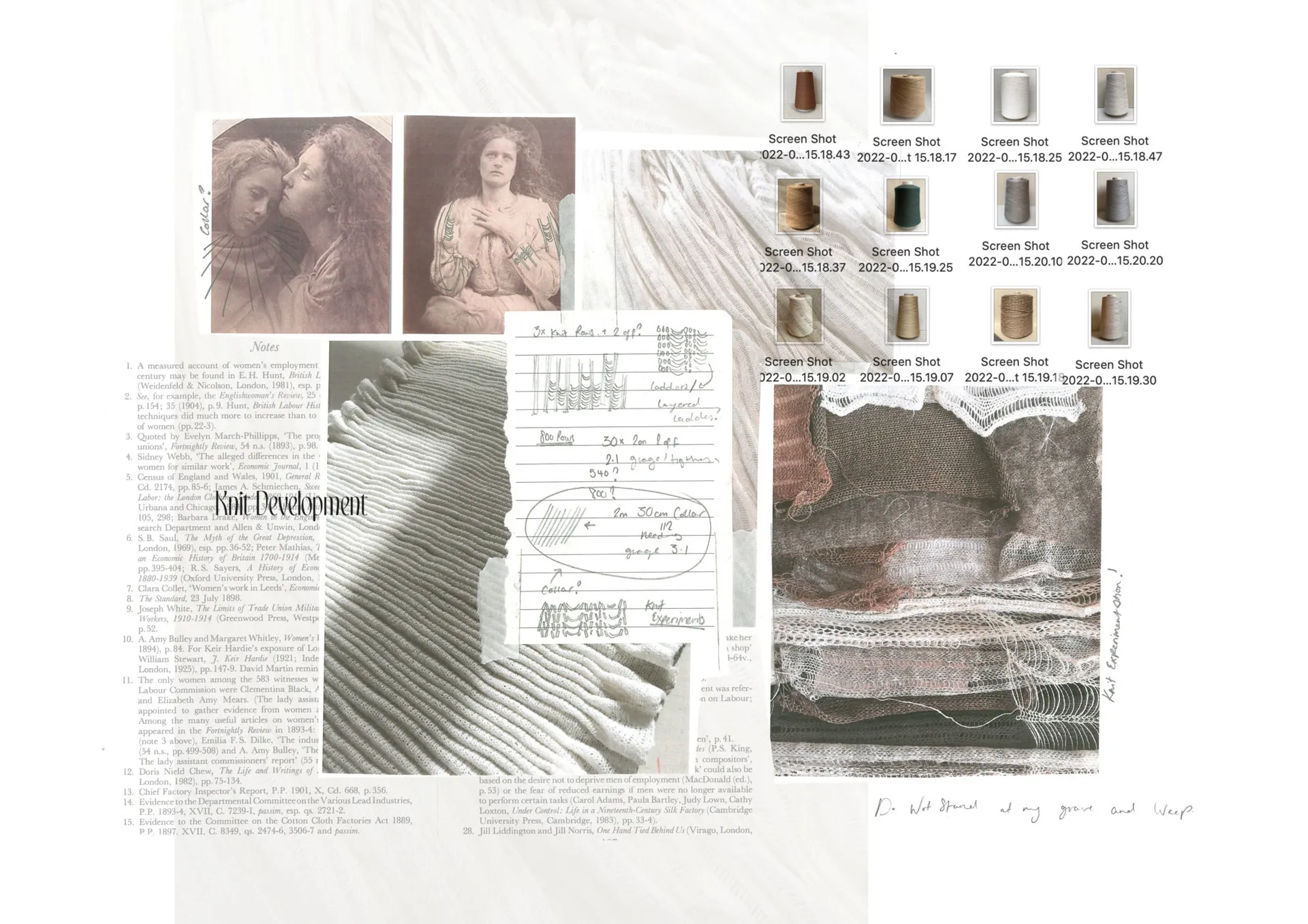 Delicate domestic machine knit and vintage lace features heavily in the environmentally-conscious garments, alongside natural wools and cotton, and deadstock linings. This was vital to the integrity of the collection as it takes heavy inspiration from the beauty of the natural world, both now and in the late 1800s. These delicate, sheer fabrics were also essential in portraying a ghostly and melancholy feeling throughout.