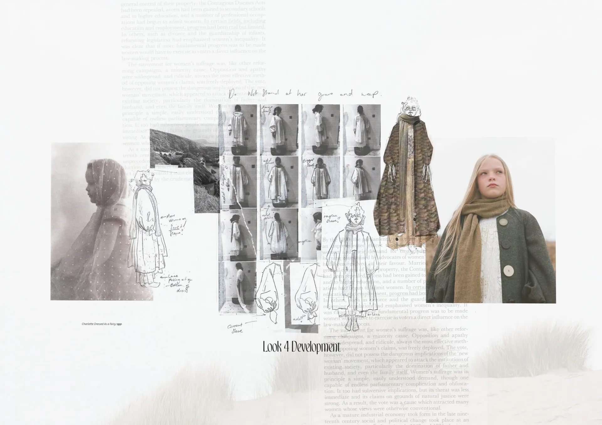 Inspired by the photography of Julia Margaret Cameron, The garments were photographed on the beach with members of my own family and have been carefully crafted into not only a lookbook, but a Film Poster and Stills. Immersing the viewer in the world of ‘The Family’ – a concept film which would take a close look into the complexities of feminine relationships throughout generations. Set in the 1880s, it draws similarities with today’s patriarchal society and relies heavily on sensitive visuals and semiotic costumes.