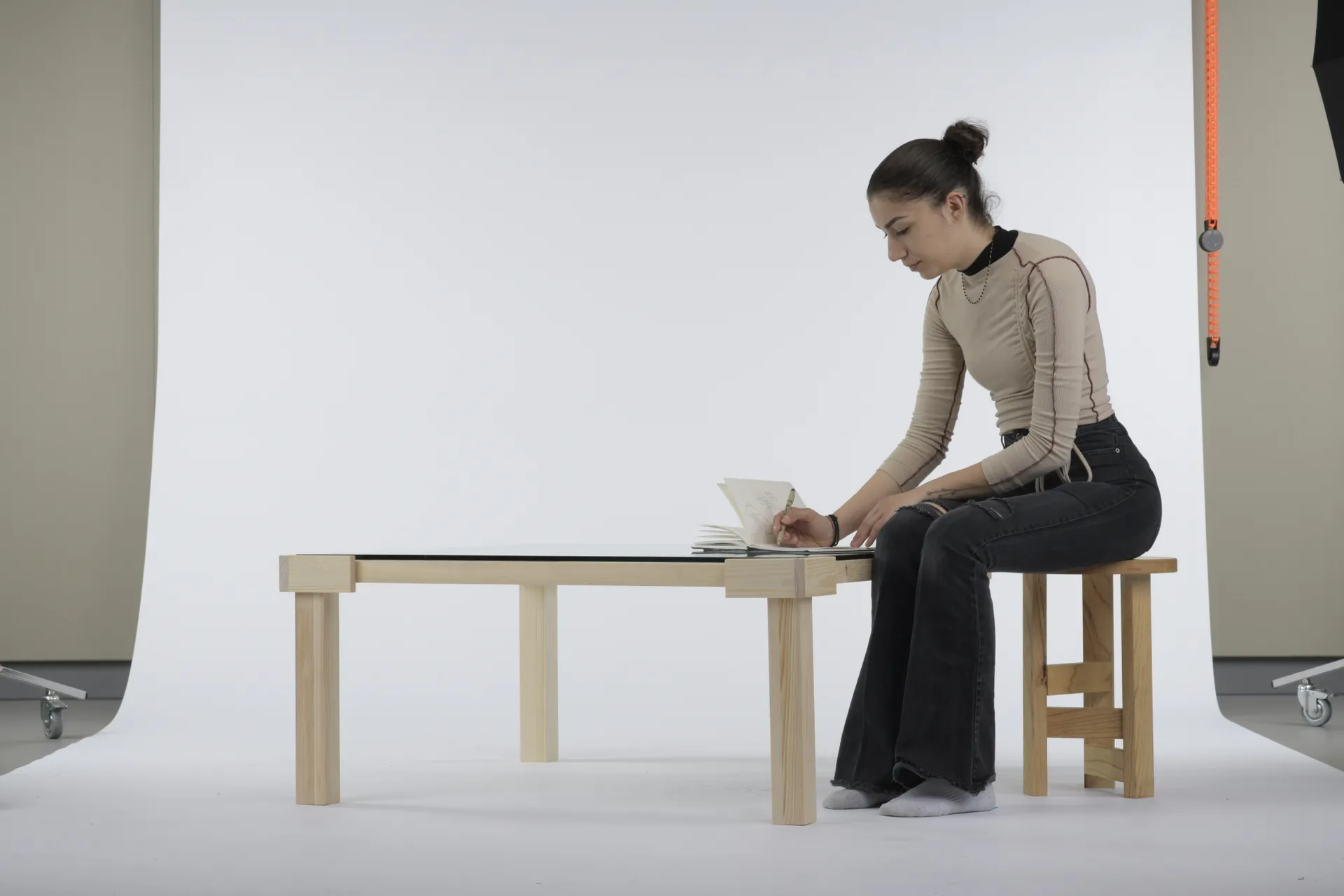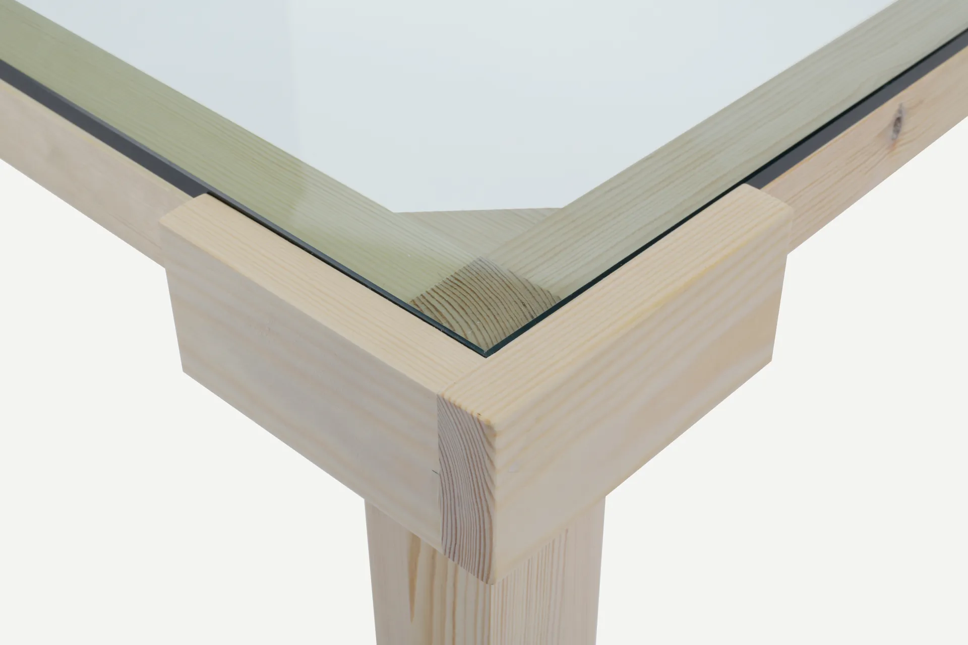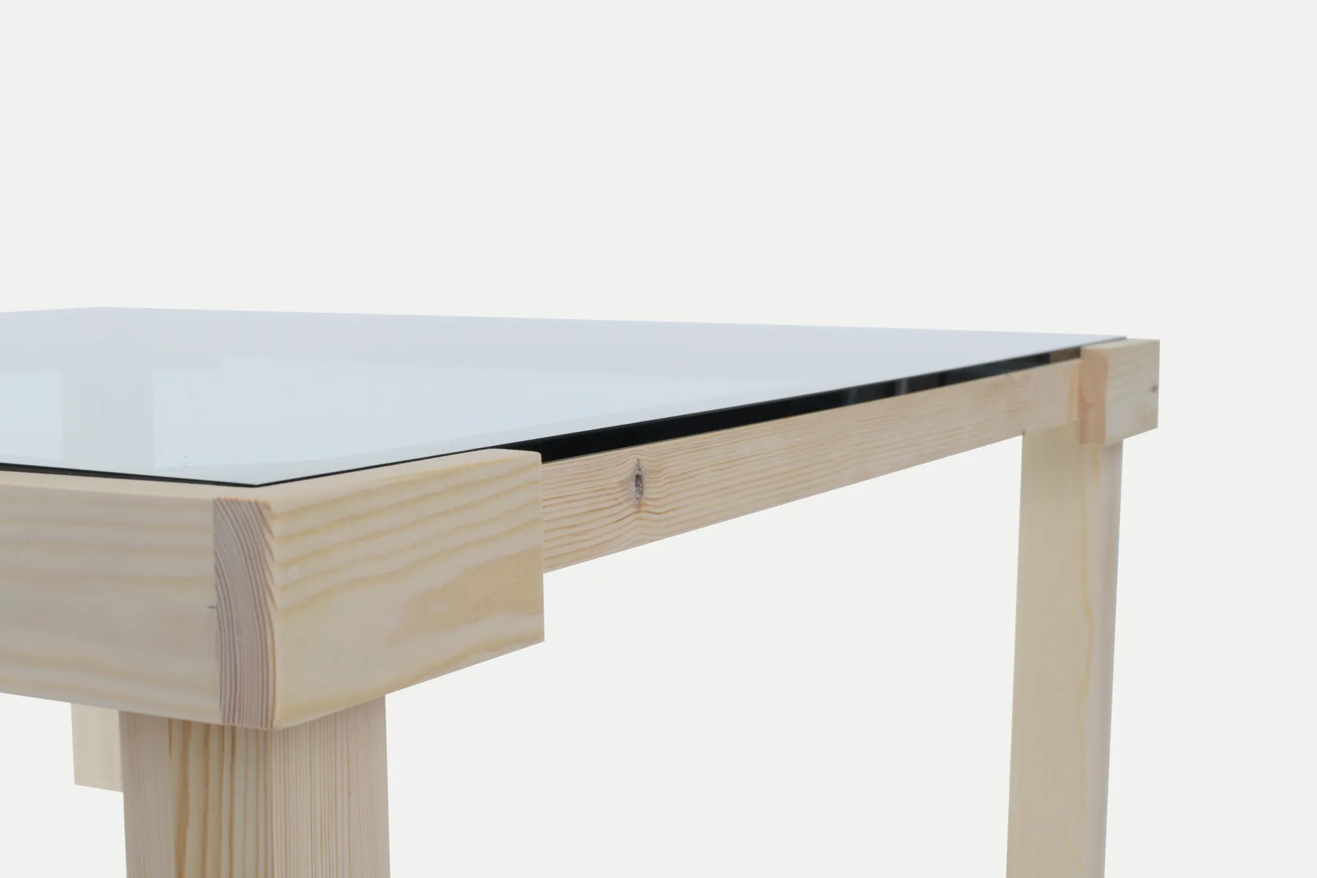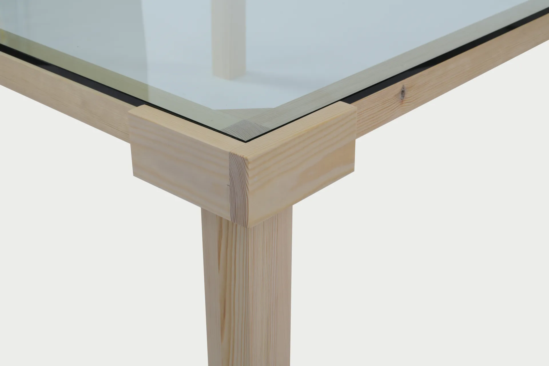A furniture project born through material exploration into woodwork and joinery. The Shoulder Table was developed using thinking through making, constructed with joints inspired by traditional woodworking methods to create a simple yet very strong joint. Whilst also being resourceful and efficient with materials using stock section timber for the entire construction. The glass top of the table is used to reveal and celebrate the design of the joint, instead of concealing it.
