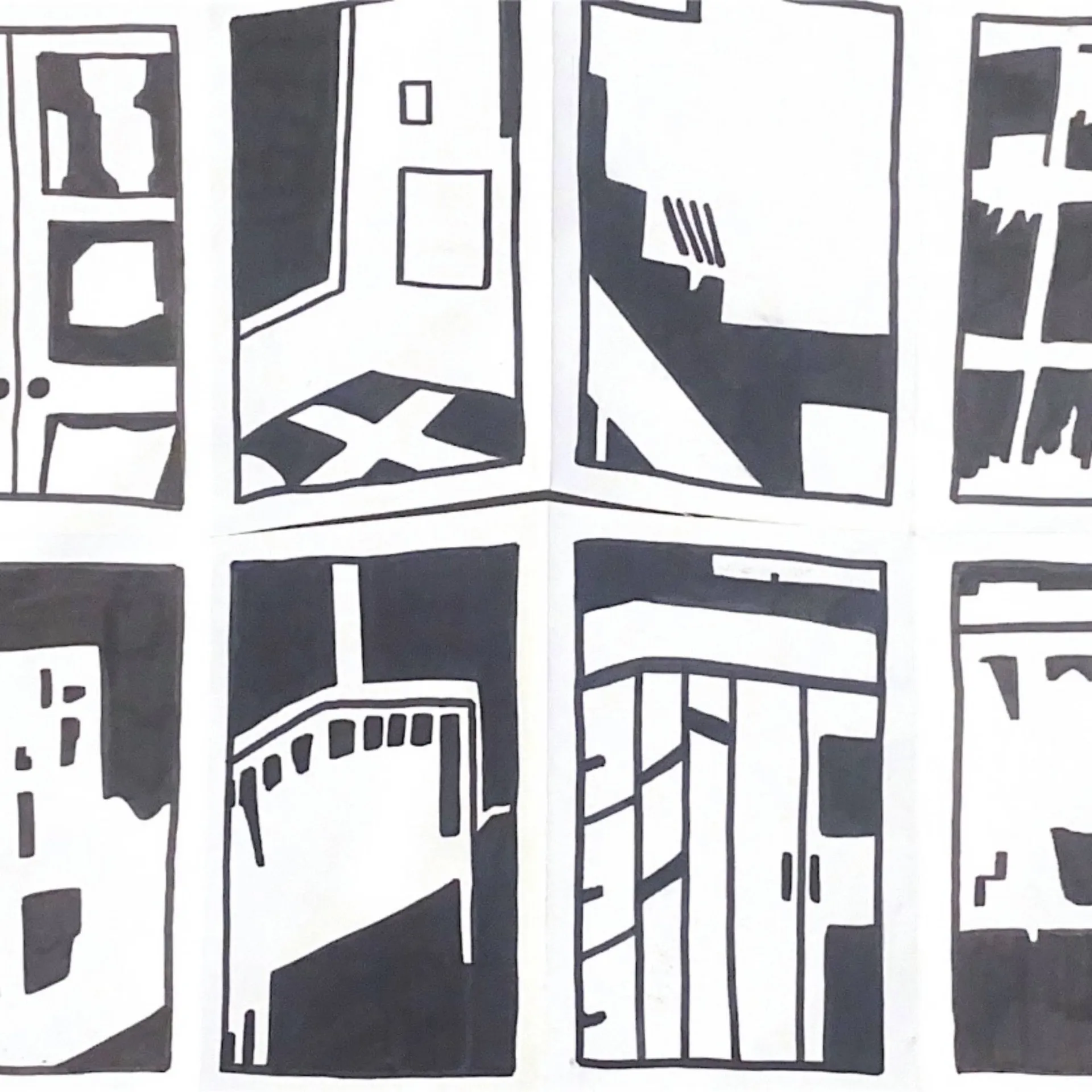 Displayed are a series of visual tests that allowed me to explore the idea of character and construction of spaces, ultimately leading me to focus on the idea of privacy and the desire to know how other people live.