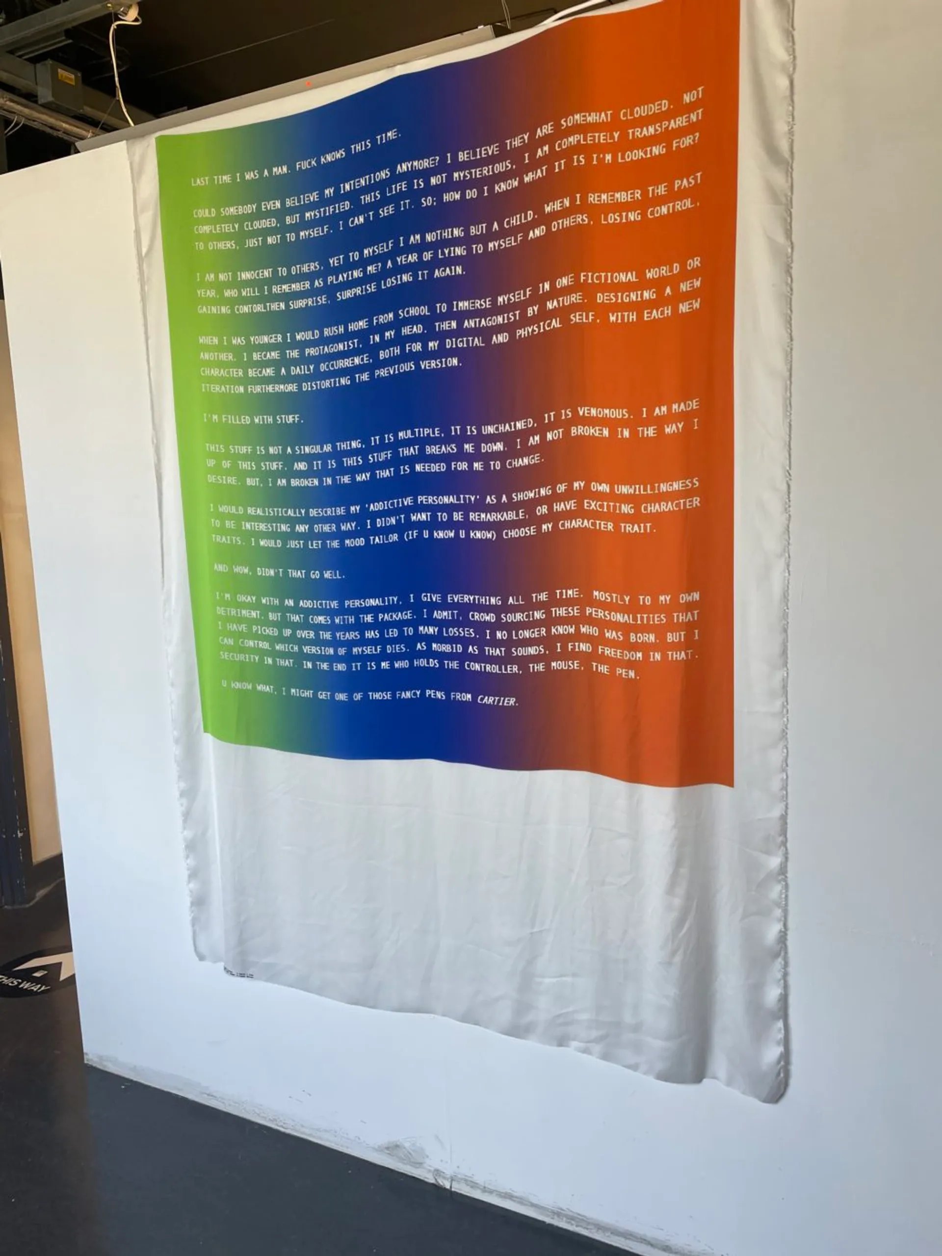 Throughout the past few months my practise has become predominantly research based. Focusing on themes of queerness, digital selfdom and, most recently, the archive and its collection of information. Due to my practise becoming more research based, writing has become my main medium. The writing itself has manifested in various forms such as poetry, abstracted writing pieces and essays. As the writing of my dissertation was happening alongside my practise, I decided that I would merge the two areas as both share the same themes of queer futurity. The overarching theme of my work is always about looking forward, using the writings and work of different writers, theorists and artists to inform the way I do so. However, for this work I decided I wanted to look backwards into the past and explore what it means to ‘archive’. To do this, installation felt like the most suitable medium. As installation somewhat acts as a collection of multiple mediums and processes, this mimics the idea of an archive perfectly.