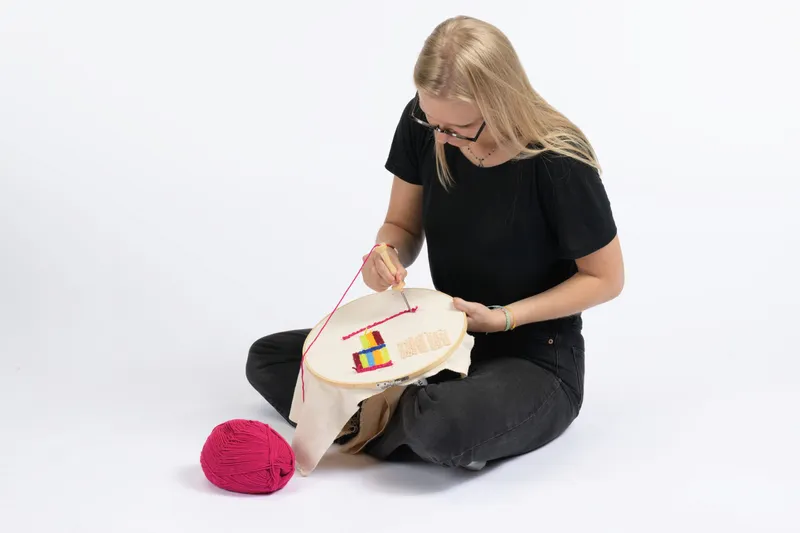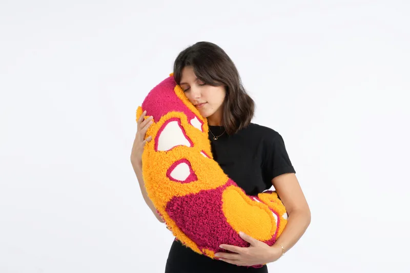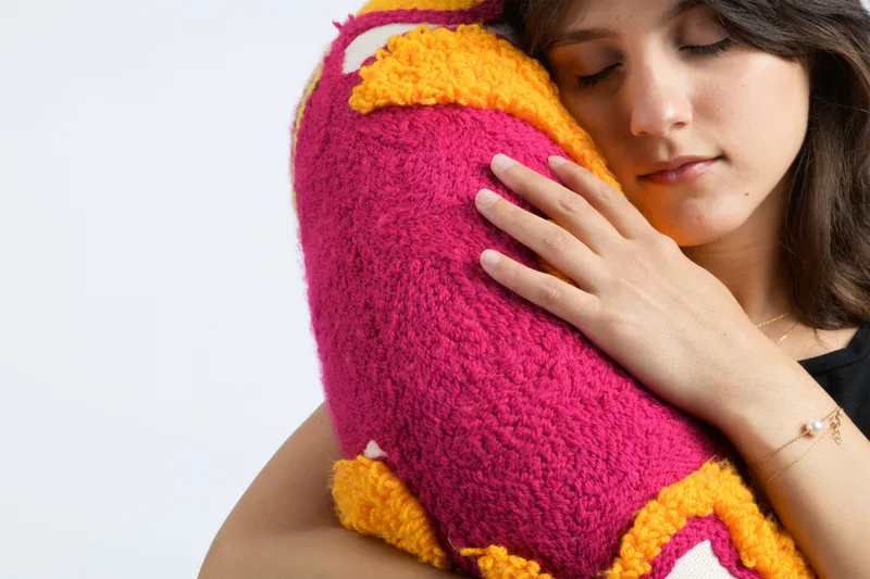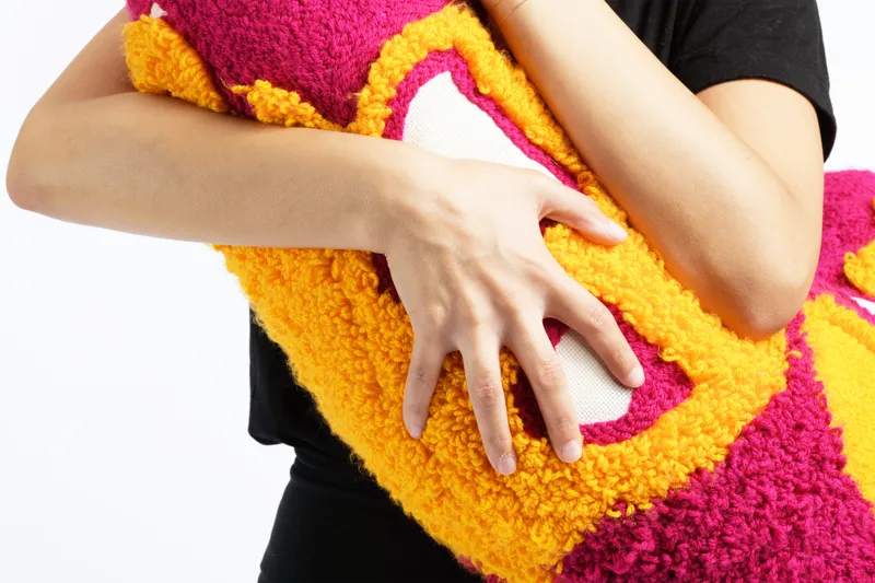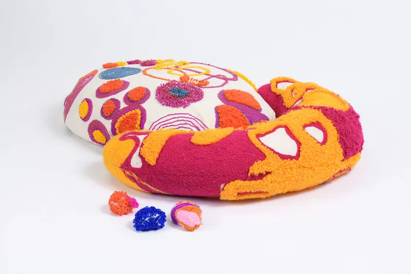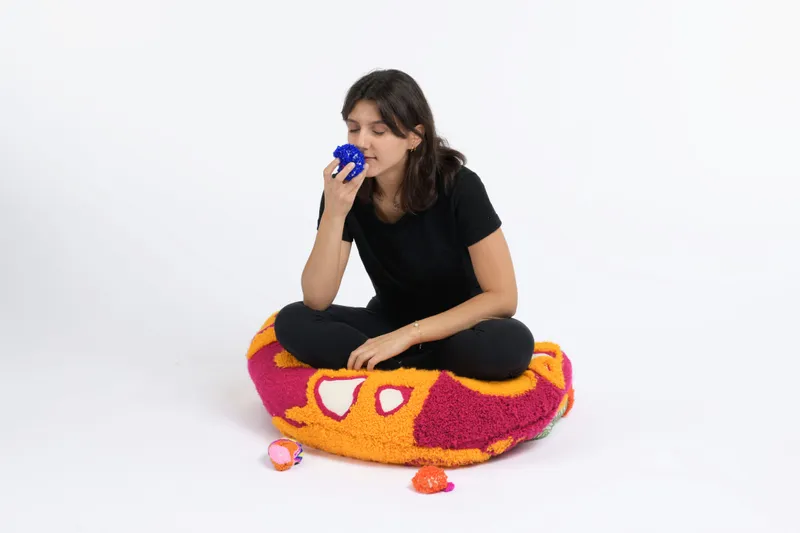 The collection includes handmade tufted cushions in different sizes and shapes, each prompting your senses. Each object is made using a punch needle and yarn. This technique is used to create different patterns and textures that the user can explore.