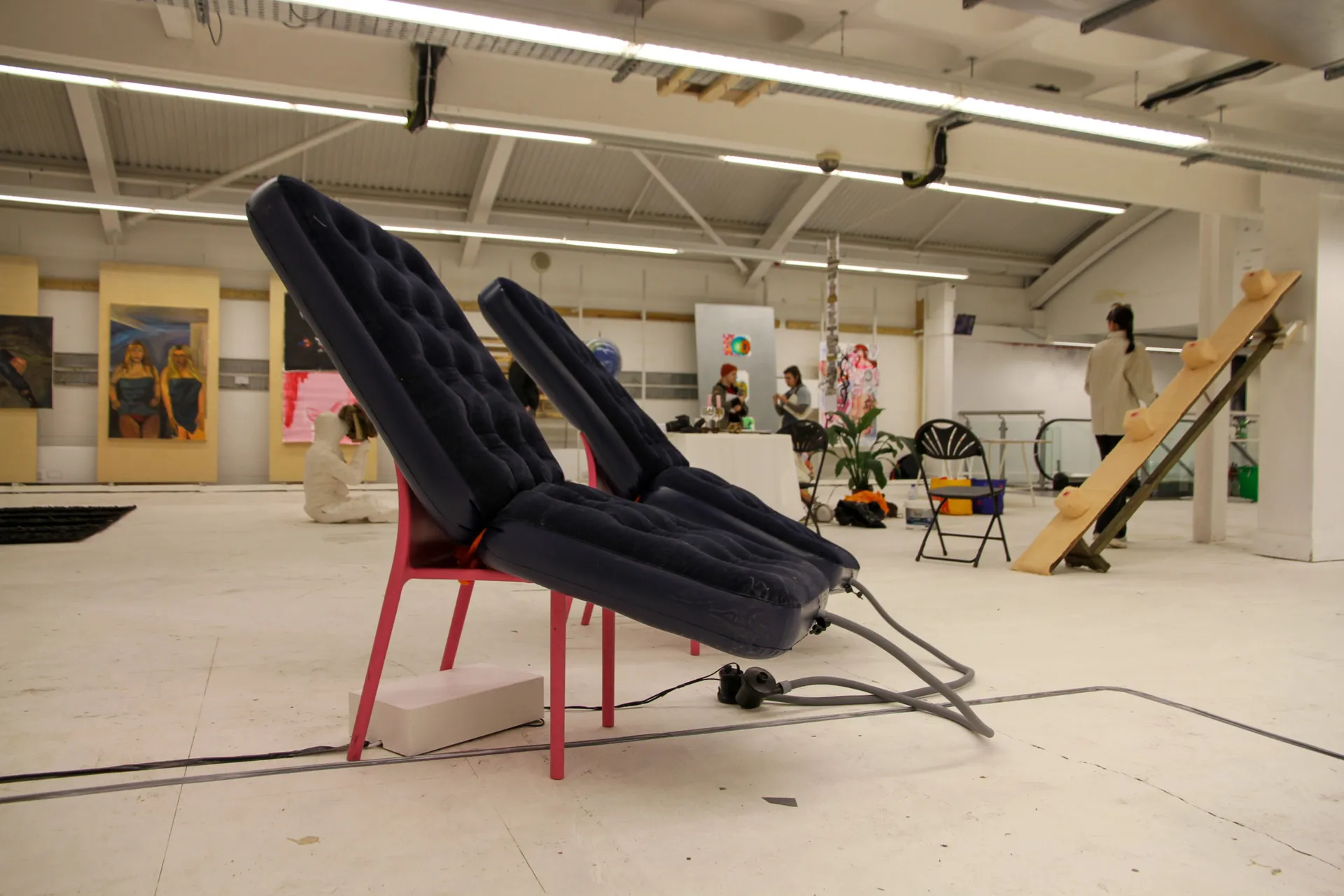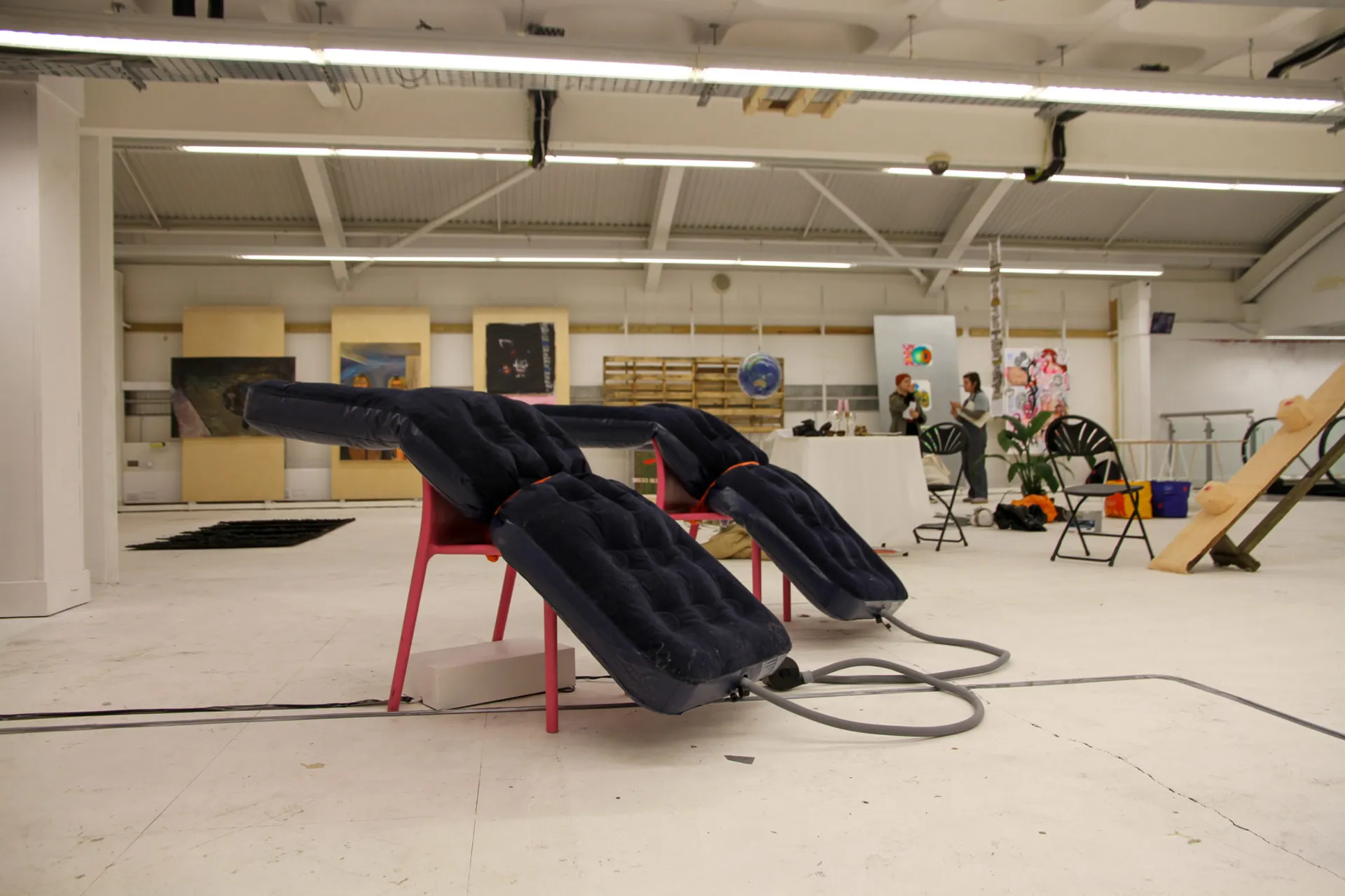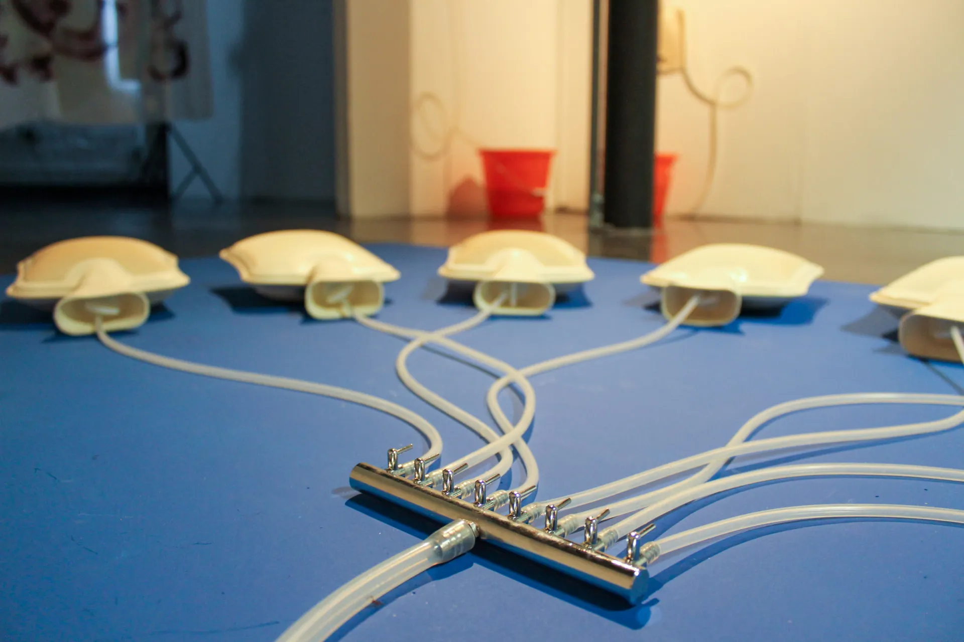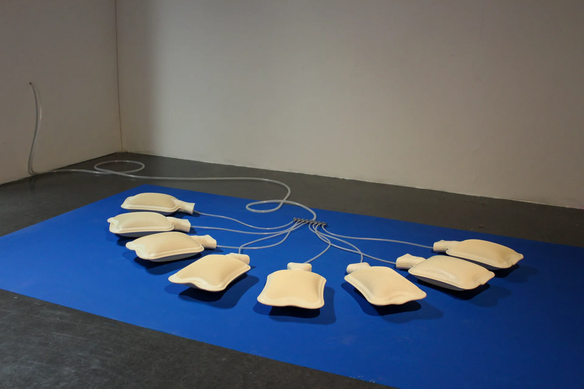 Kelly is a London-based multi-disciplinary artist, who specialises in sculpture. The objects or materials manipulated in the artist’s practice are often discarded or overlooked in the everyday. Her recents works investigates the notion of anthropomorphism, using machines as a surrogate for the human form. Thus, Sleep exploration alters the object’s normal cultural references in order to articulate a new language to investigate human behaviours. The performative and mechanical nature of the work means that the work is not only extended in space, but in time also. Leading to a contingent viewing or perception of the objects in the unfolding of motion or action overtime.