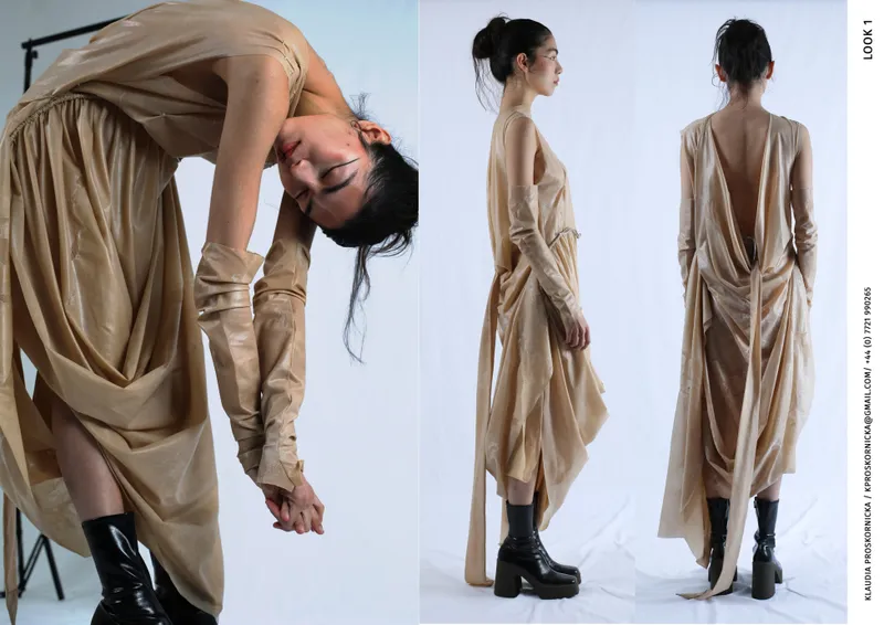 With this, I also developed textiles which reevaluate the idea of biodegradability and add meaning to the otherwise discarded materials. Using natural liquid latex; I tried smudging the lines between sculpture, art, and design. In my work, I aim to obtain an artisanal approach toward materials. With the limitations of the newly developed textiles, I designed the shapes that create a tension between the skin and the garments.