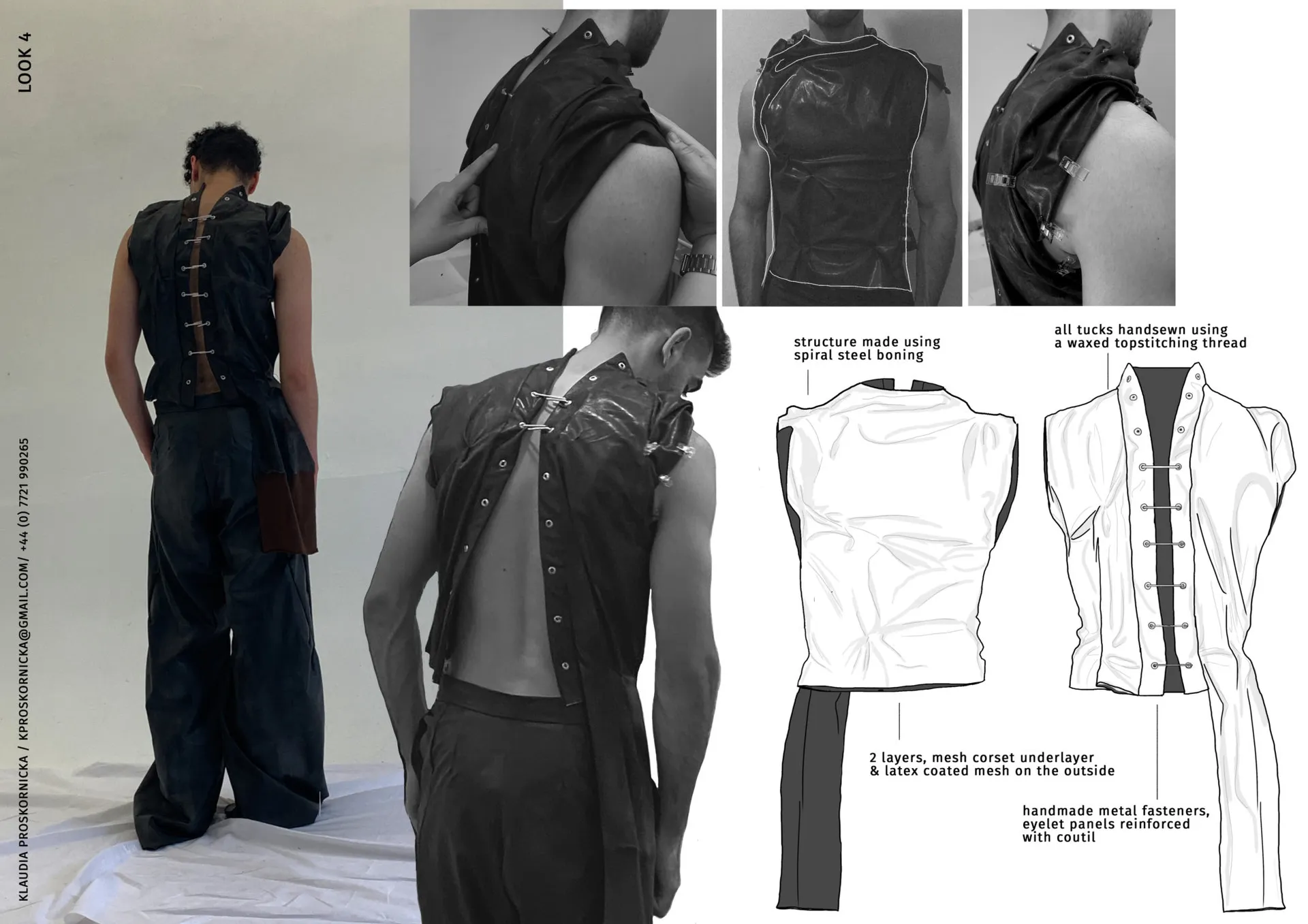 Blurring the lines between sculpture, art, and furniture, I chose to design for all, which gave me the freedom to explore the boundaries of the body without focusing on one gender. Drafting on women’s and men’s pattern blocks, I was able to adapt my design accordingly.