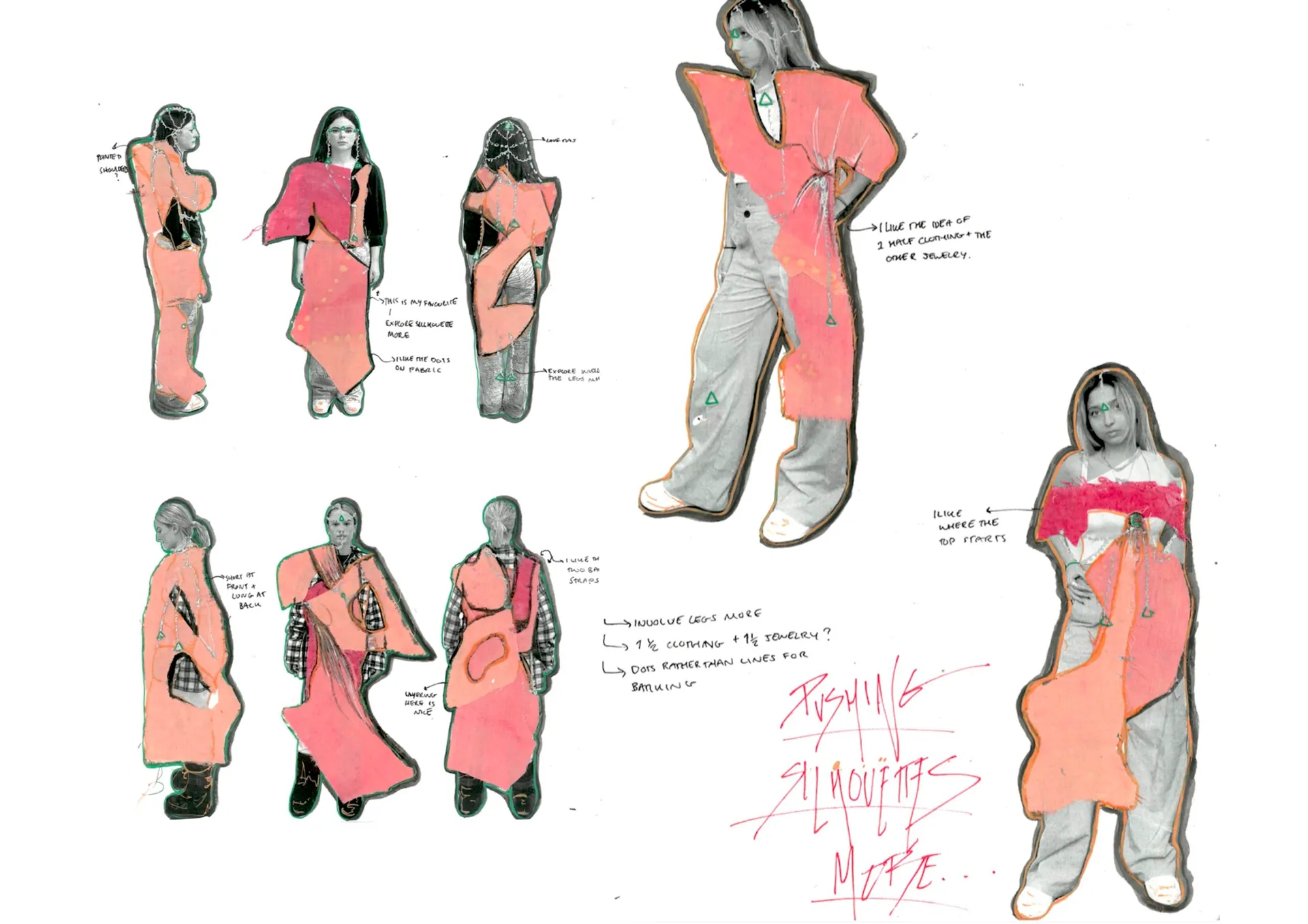 I have made a self-healing garment using natural healing techniques with a fusion of a Sri-Lankan and western aesthetic. The garment relieves one from feeling stressed and anxious by having attached jewellery in specific acupressure points, as well as sewn in lavender ‘smell pouches.’ The aim of my project was to create a garment that could help a young woman feel less anxious when out at an event, such as a party. As I am of Sri Lankan descent, I wanted this project to help me learn more about my own culture and pay homage to Sri Lanka’s craft-making, diversity and beliefs.